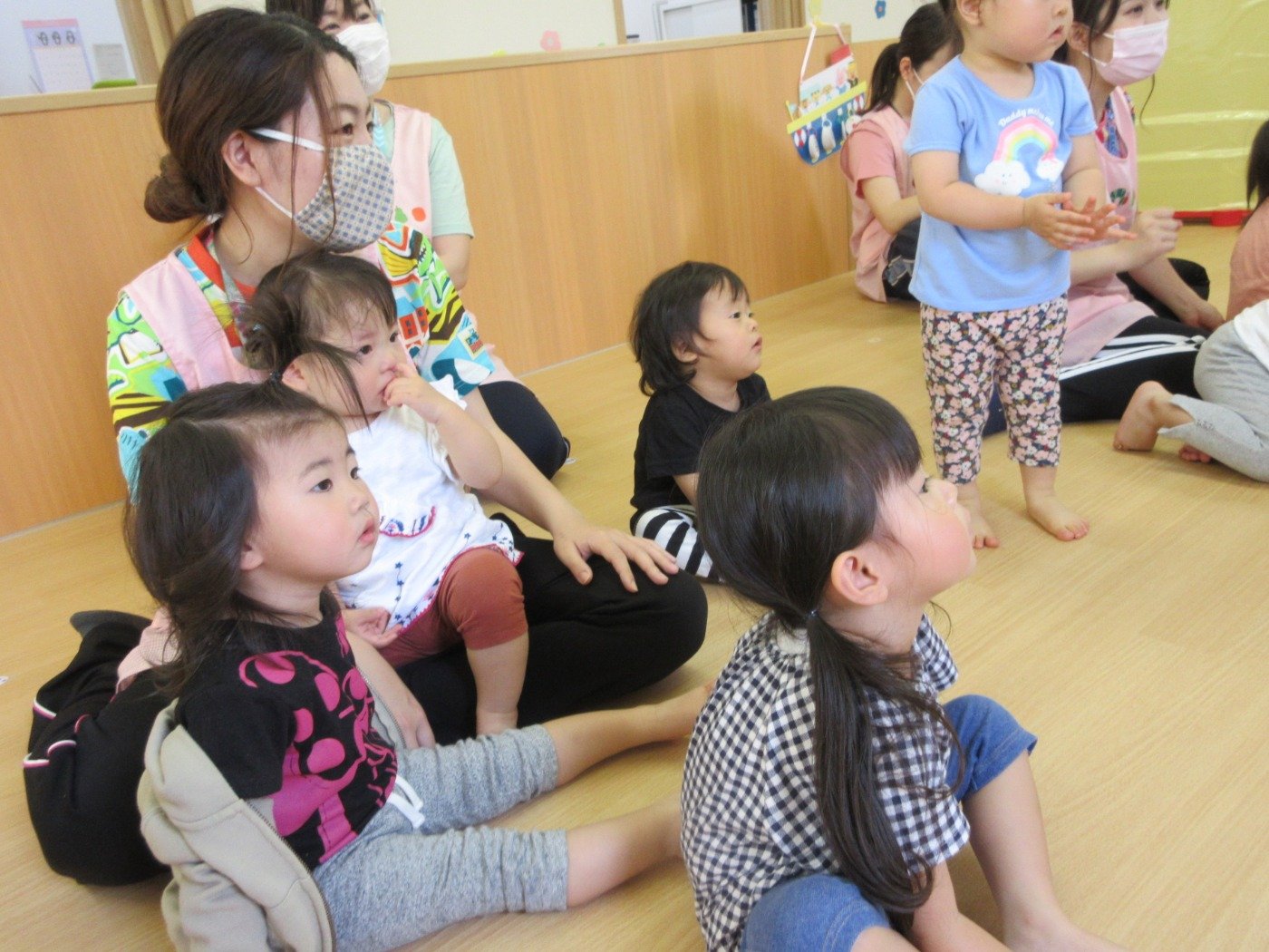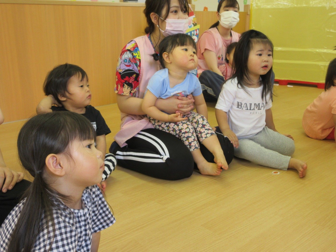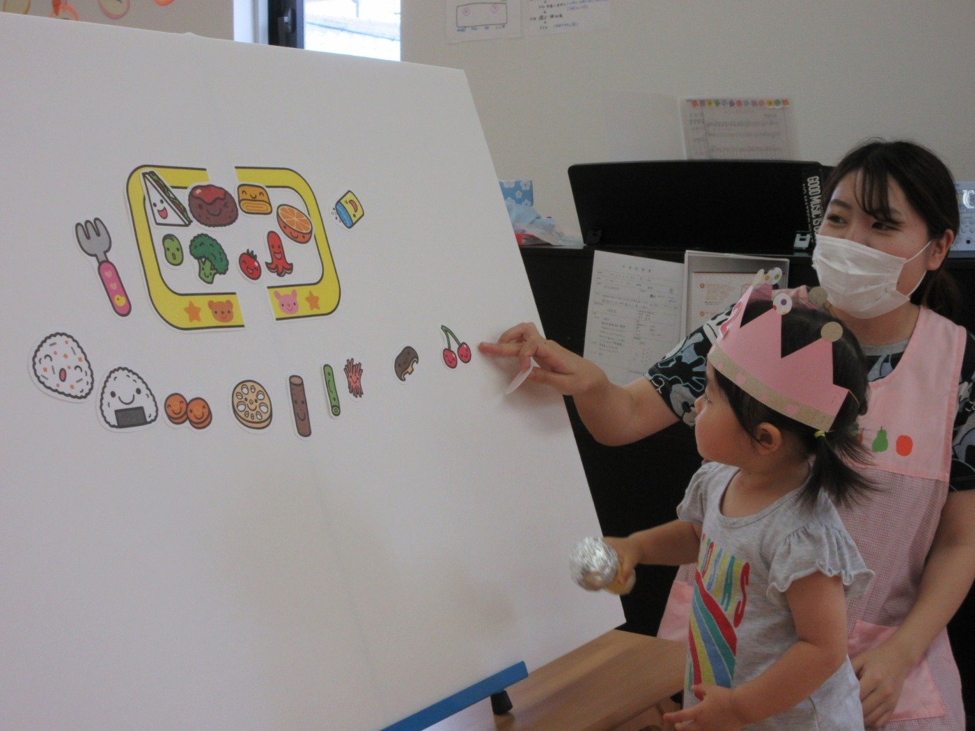 先生からは、パネルシアター「おべんとうばこ」のプレゼント♪いろいろな食べ物のオンパレードにおめめキラキラの子どもたちでした。