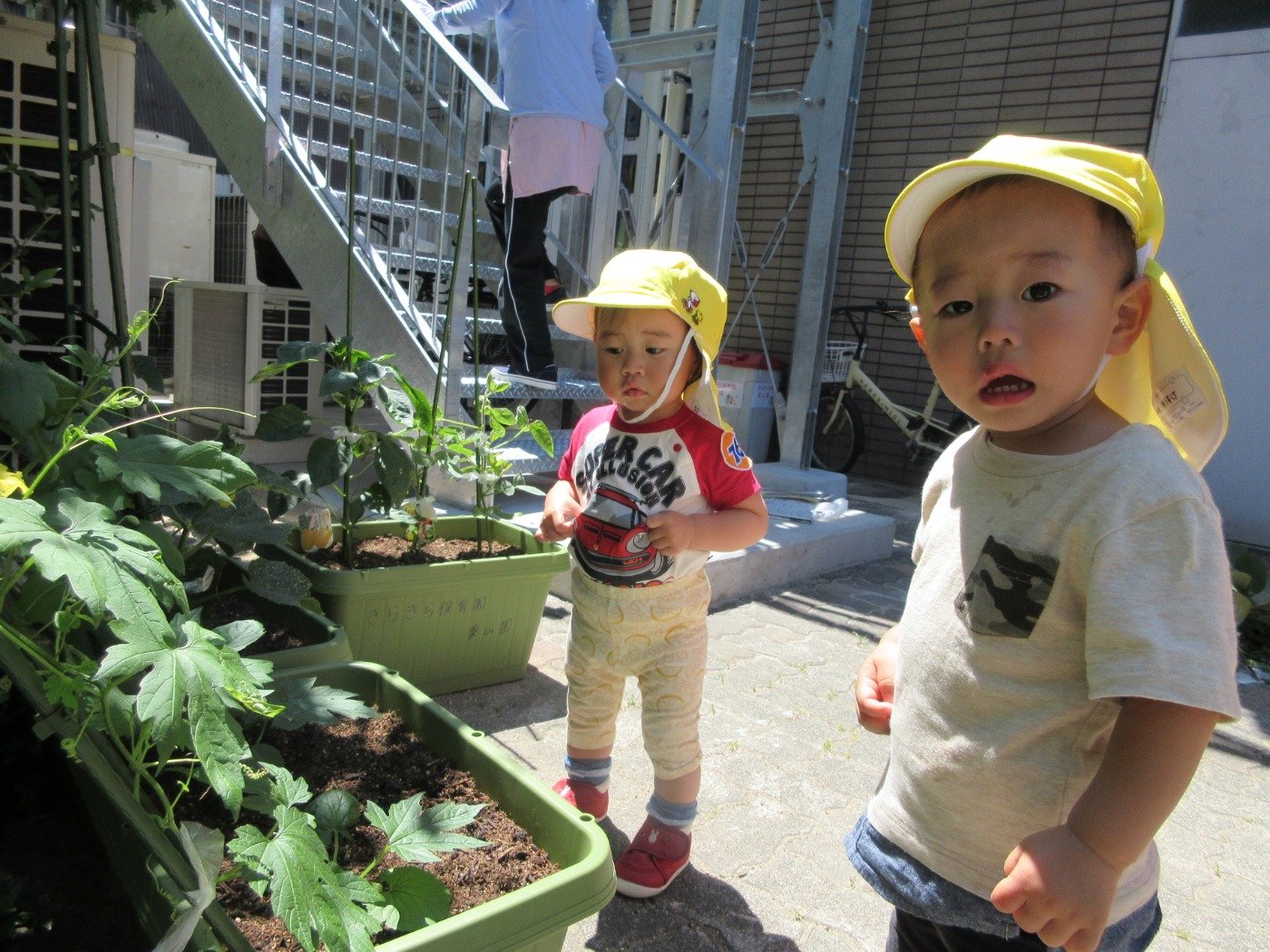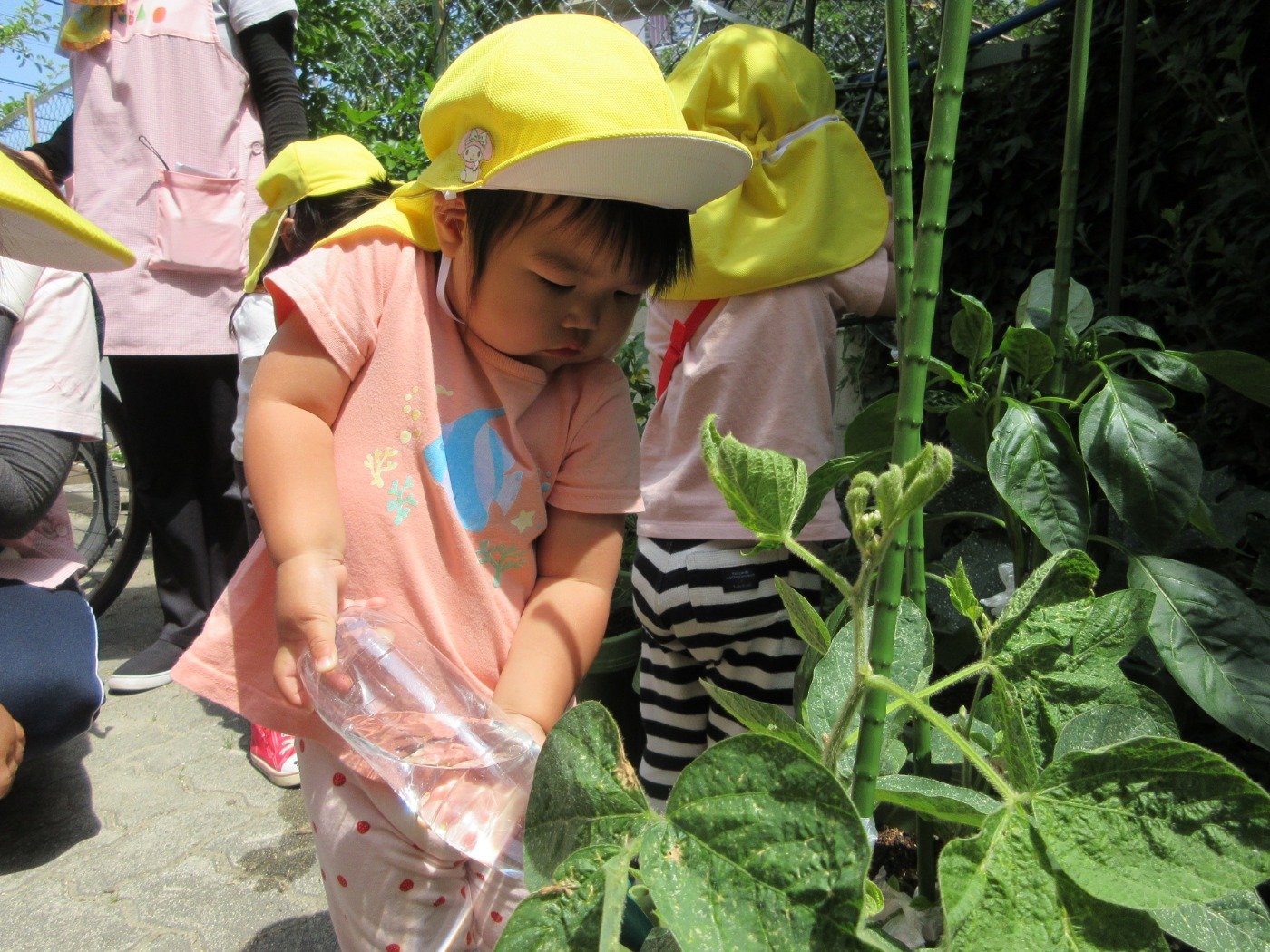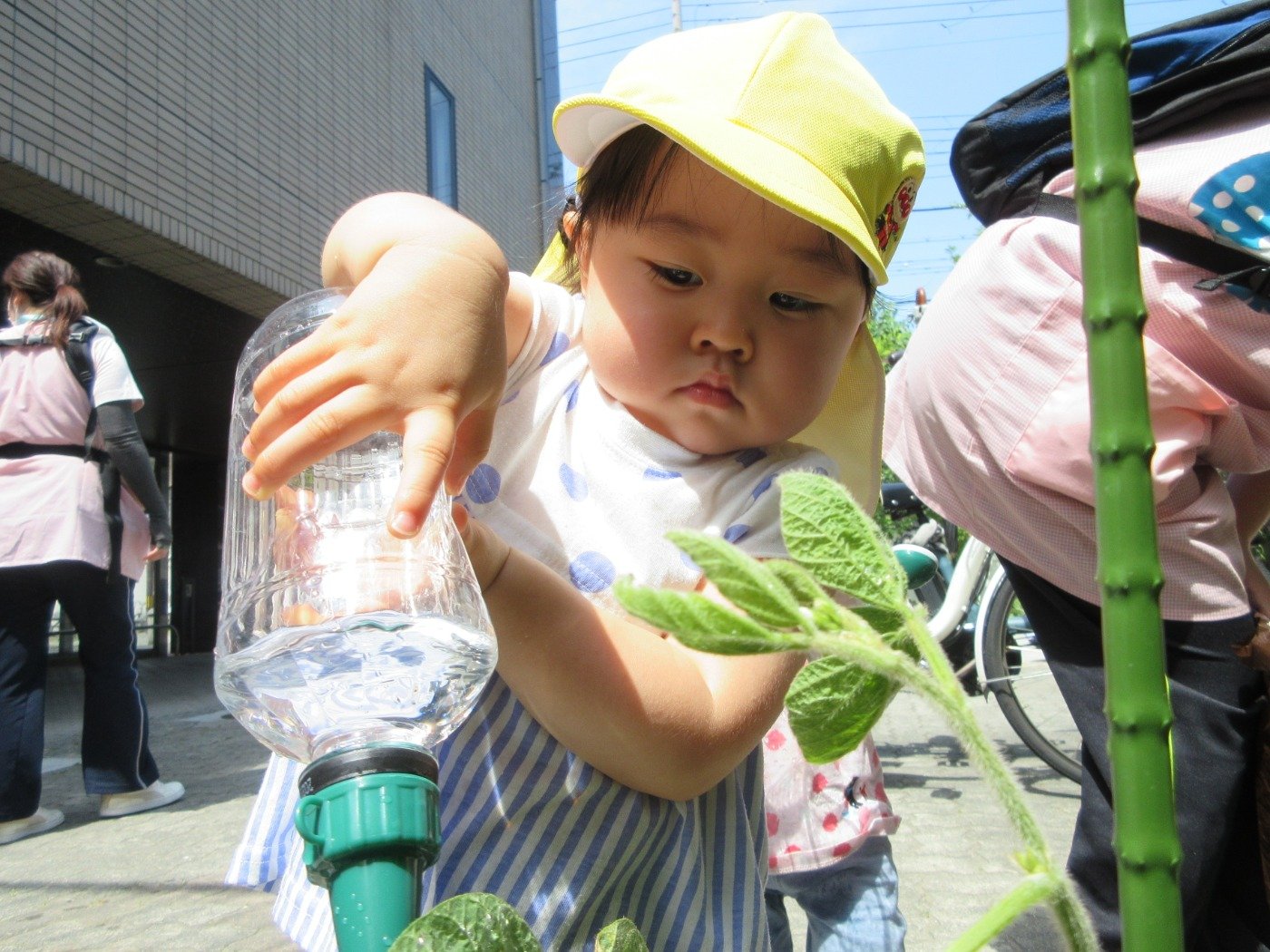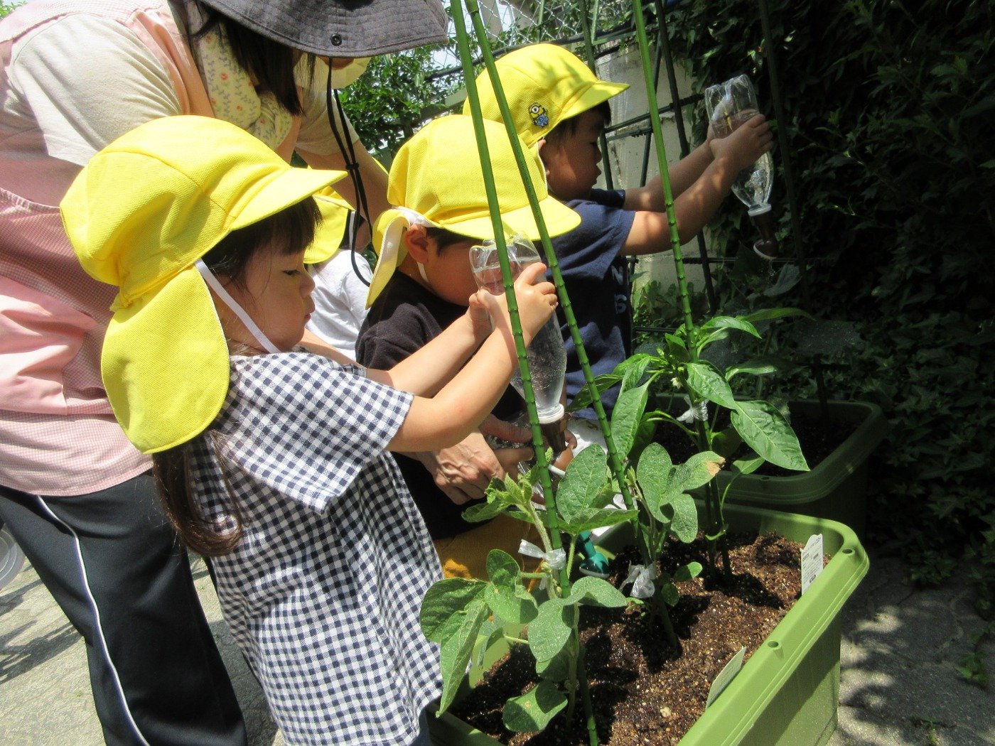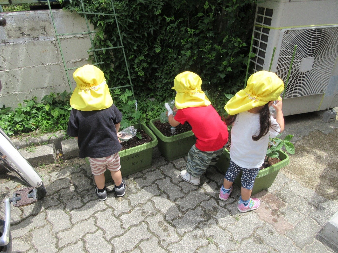 毎日どんどん成長していくお野菜たちに、お水をあげるのが子どもたちの日課♪
