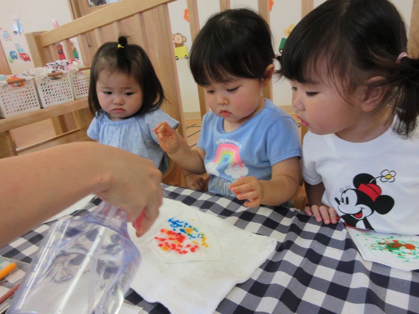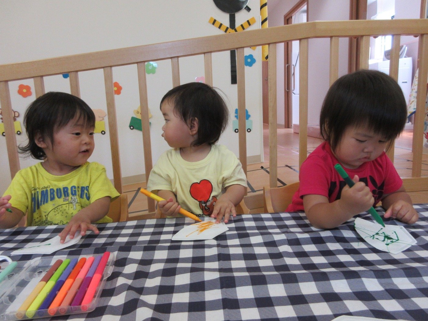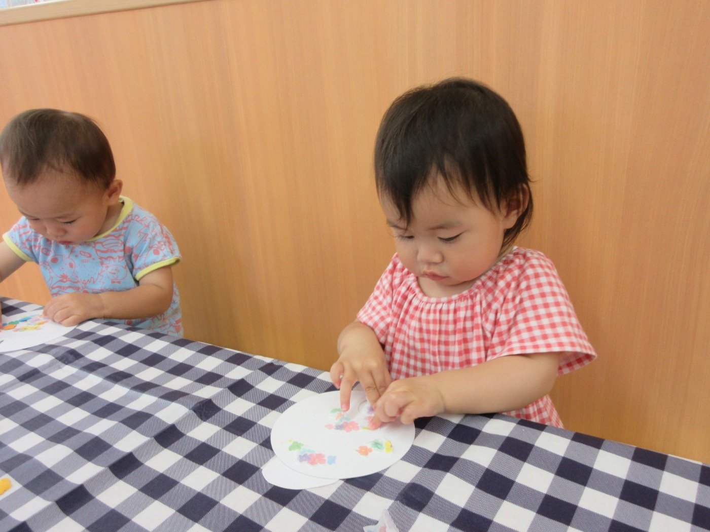 絵の具を使ってにじみ絵にしたり、のりでペタペタ丸型や星型をつなげたり…