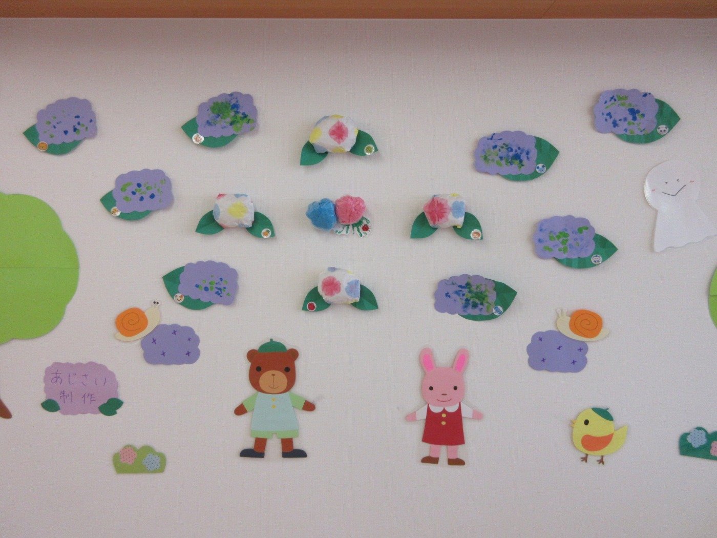 お部屋の壁面もアジサイのお花でいっぱいになり、6月らしくなりました!
