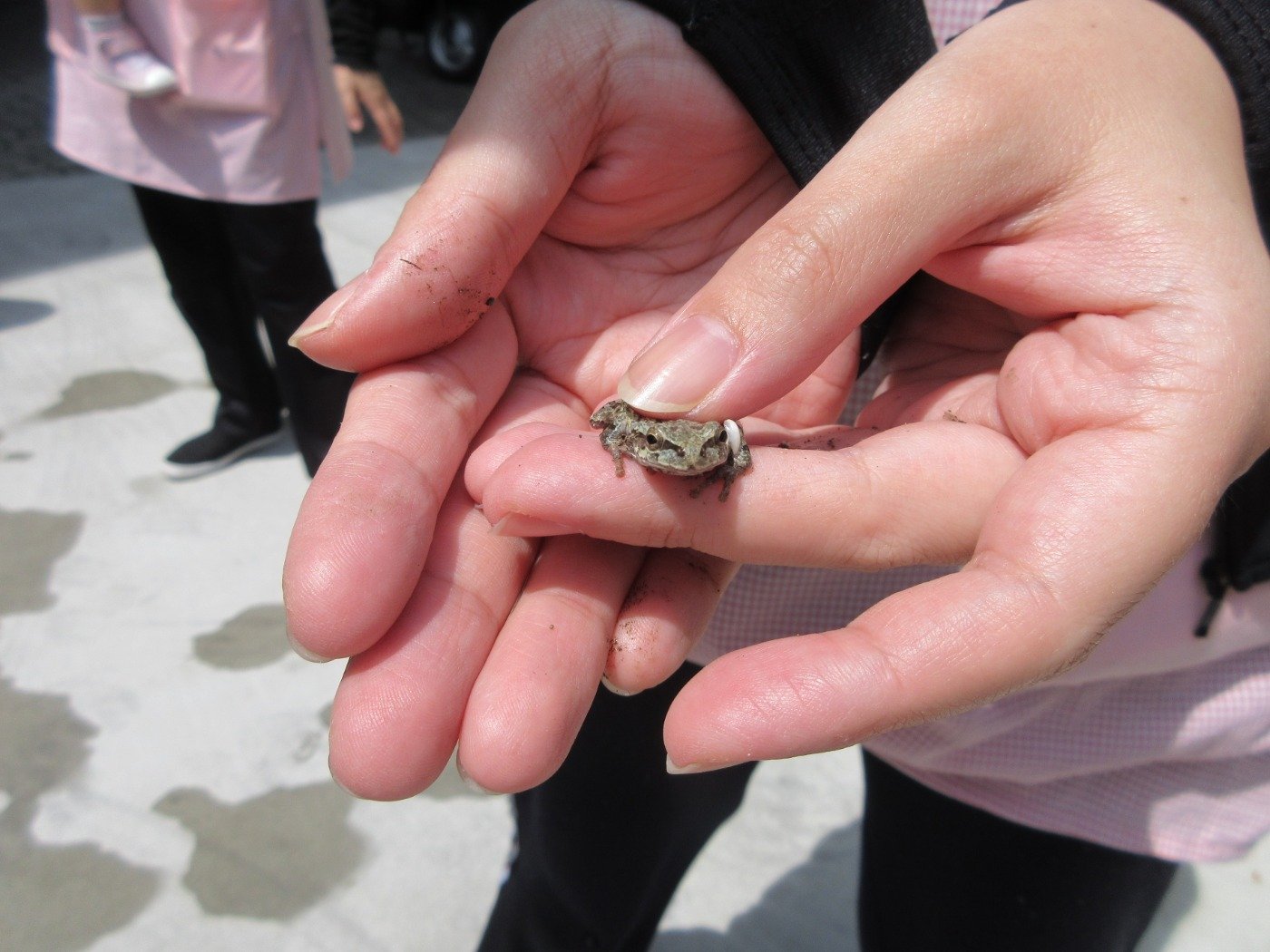 思わぬ訪問者のカエルさんにも興味津々です☆
