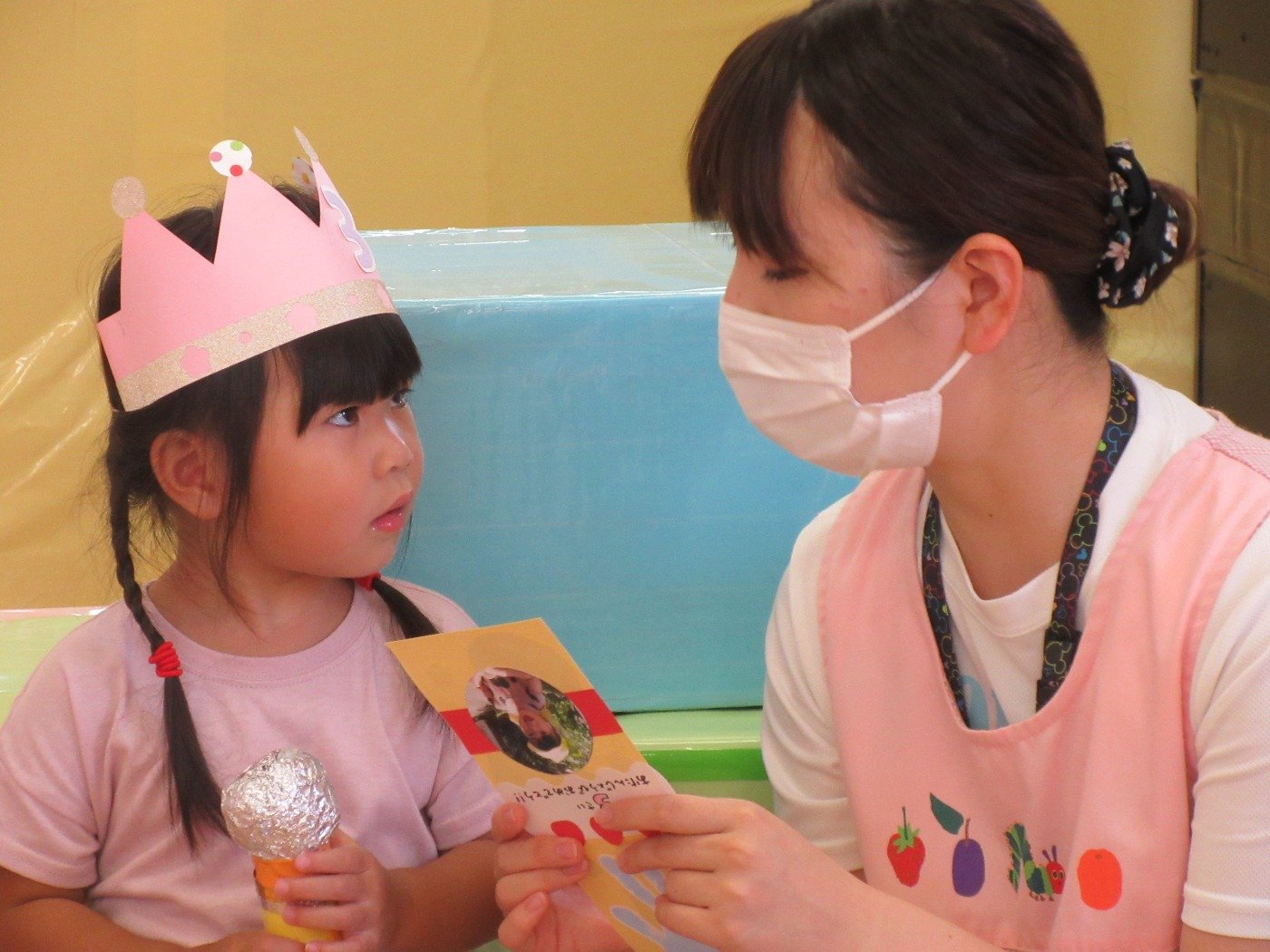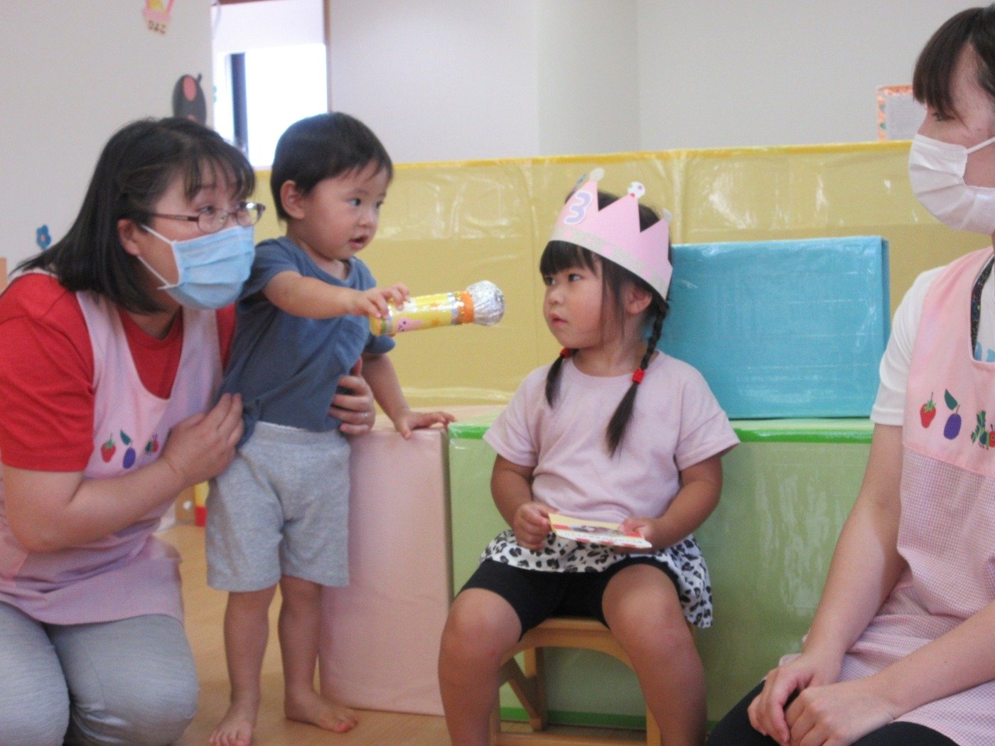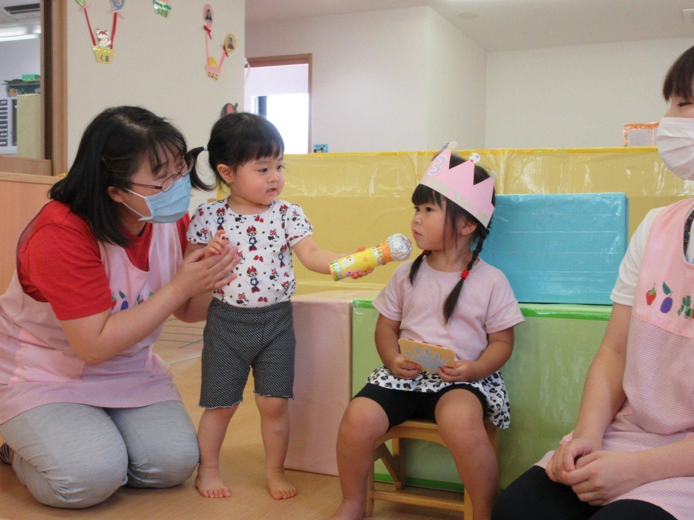 お誕生日会では、お友達がインタビュアーになるのが恒例になりつつあります。