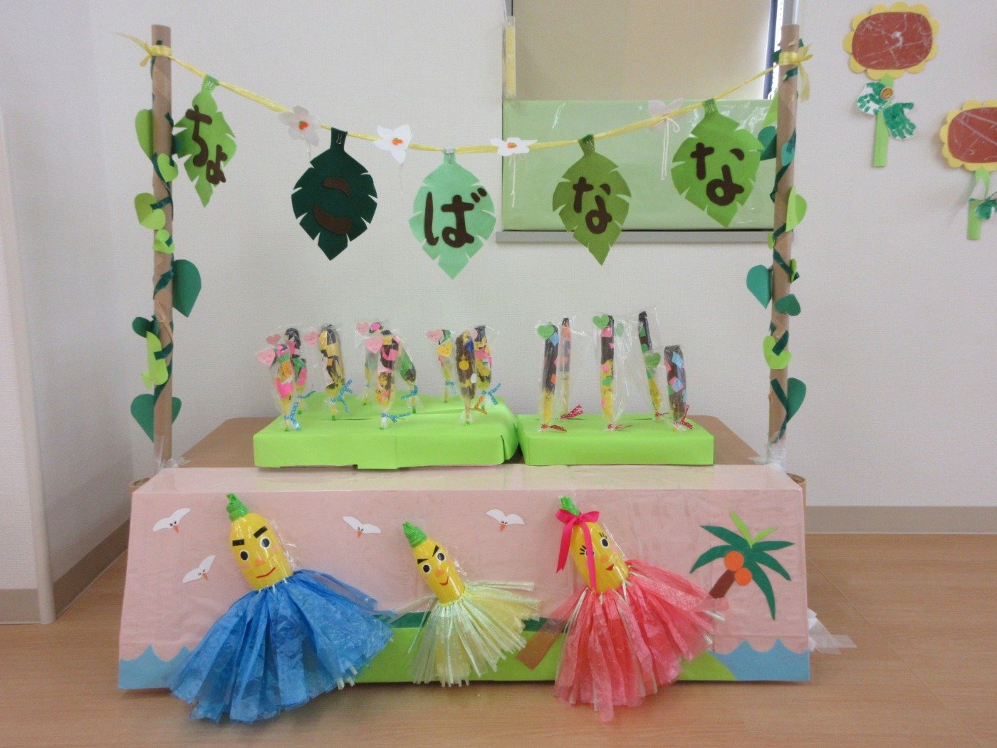 入り口前にチョコバナナの屋台を置いて、お迎えの時に一緒にお買い物をして