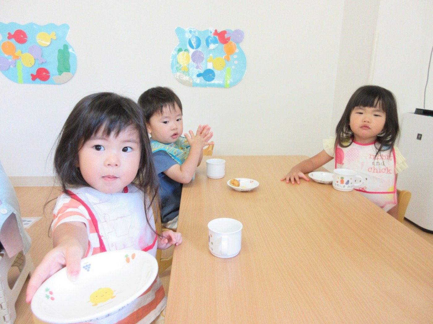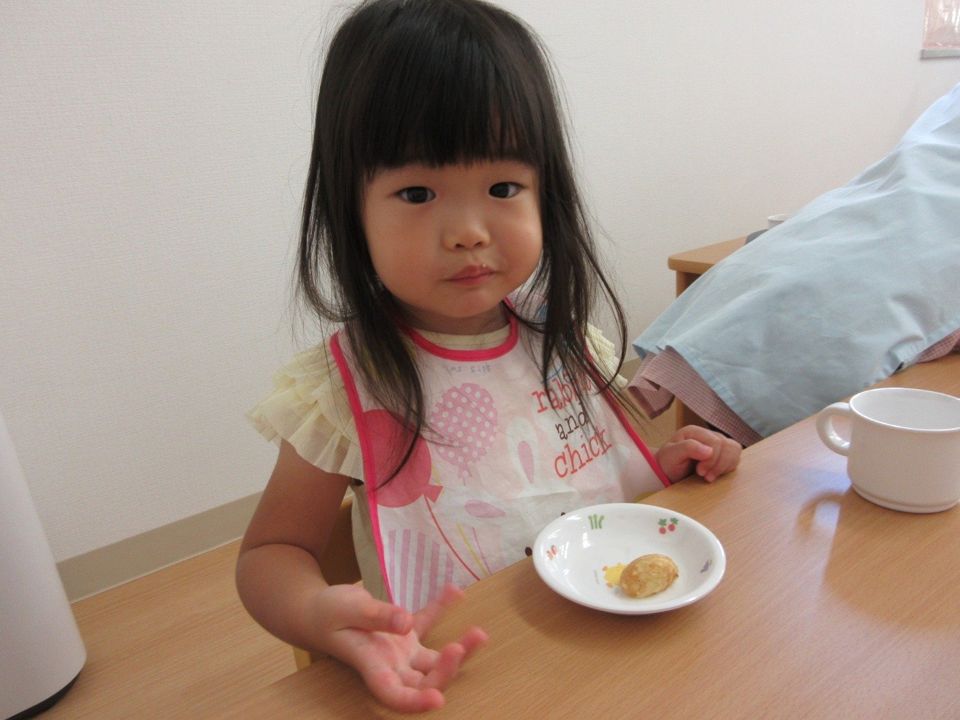 3時のおやつは、大好きなお調理の先生が、「お祭りらしいでしょ」ってベビーカステラを作ってくれましたよ。