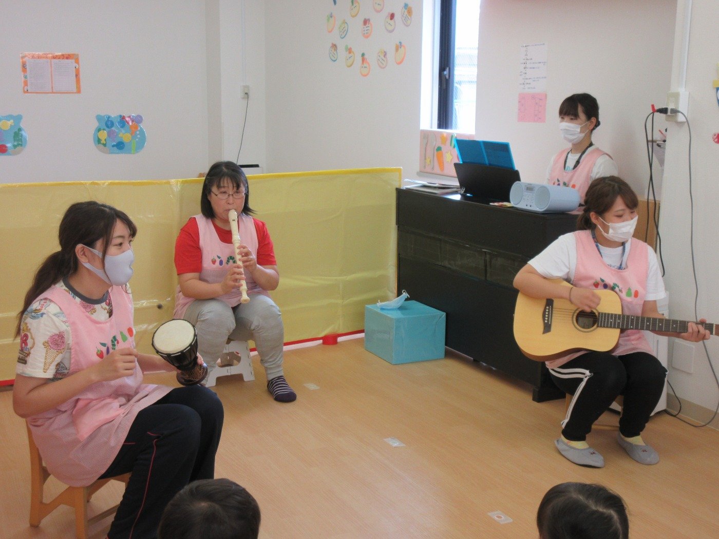 お誕生日会のしめくくりは、先生たちの演奏会♪