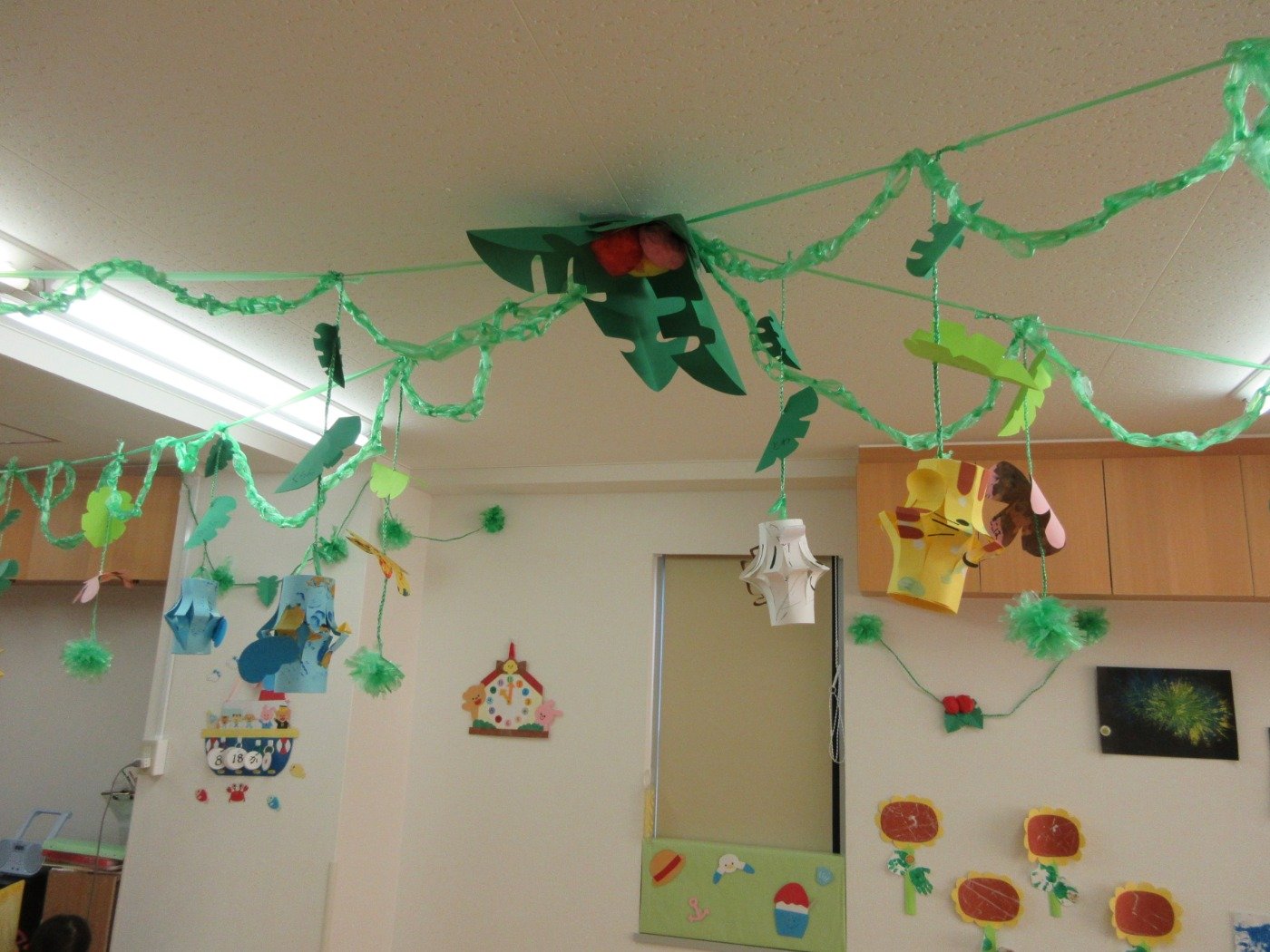 大好きな動物さんをモチーフにした子どもたち手作りの提灯をお部屋に飾り、
