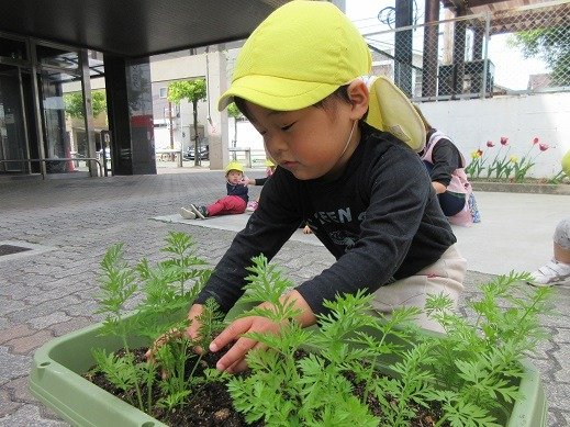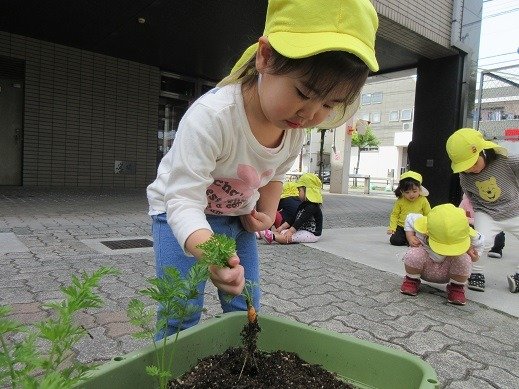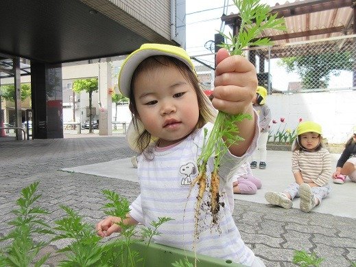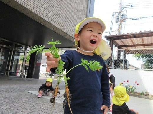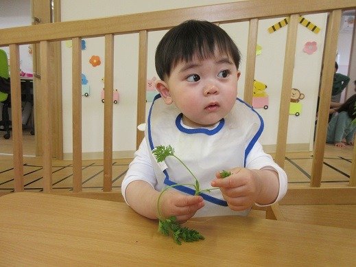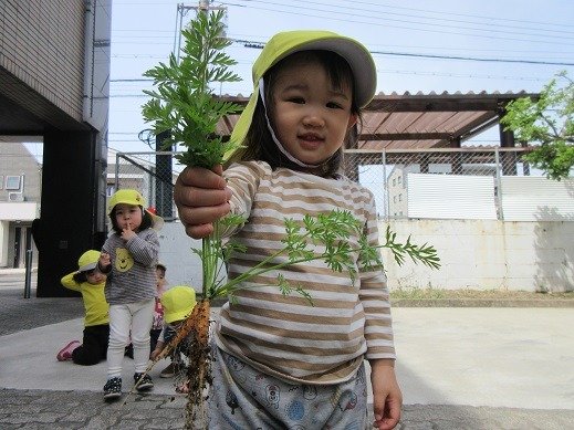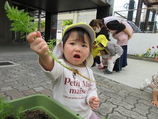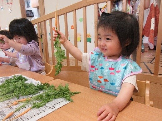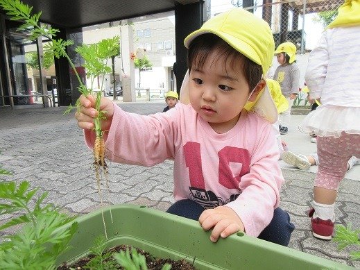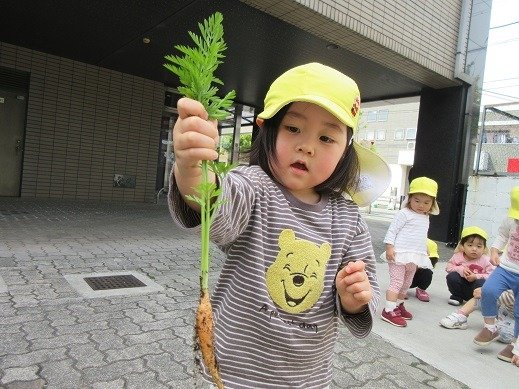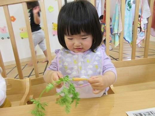 とっても小さいけど、しっかりにんじんの形をしていて興味津々です。