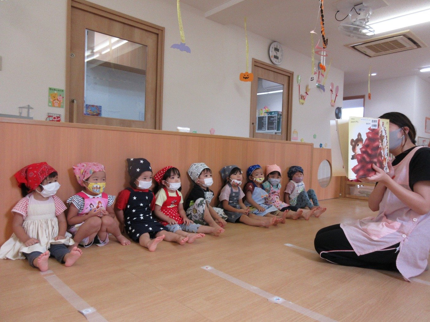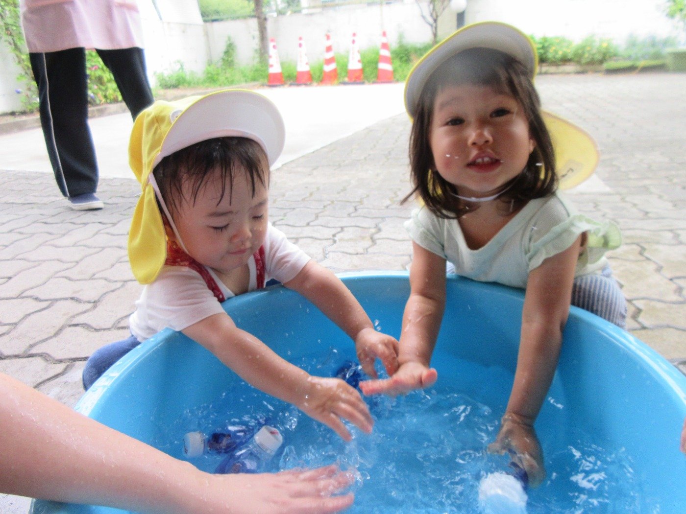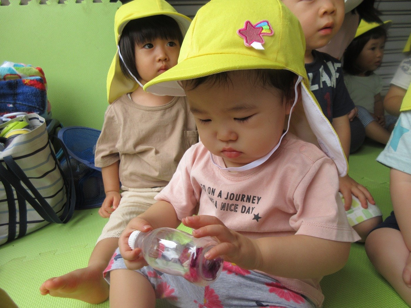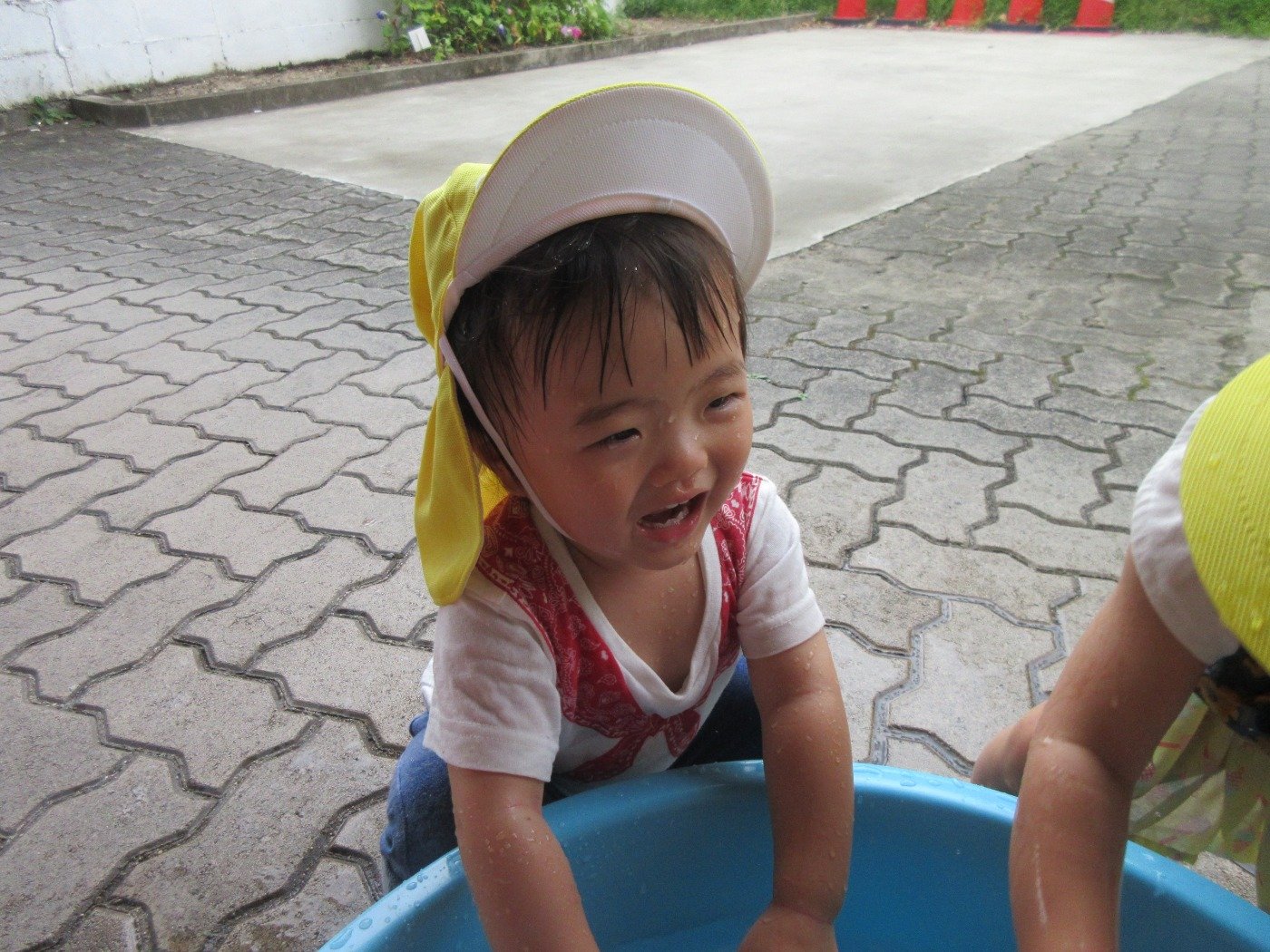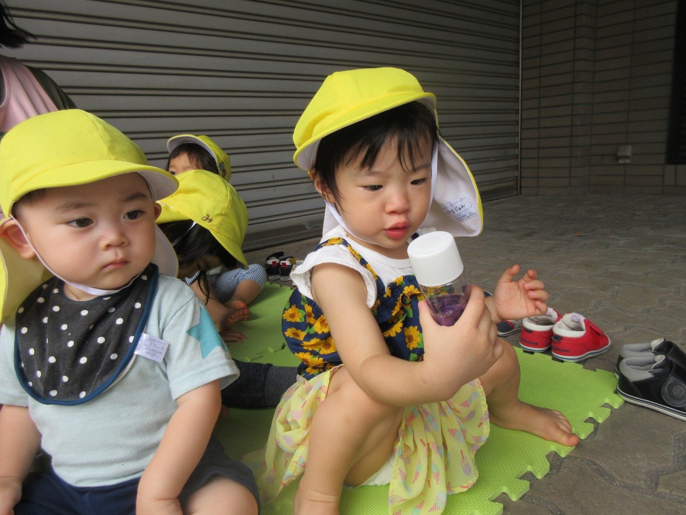 夏日だった9月の初旬、くま組さんは、お洗濯ごっこをしました。