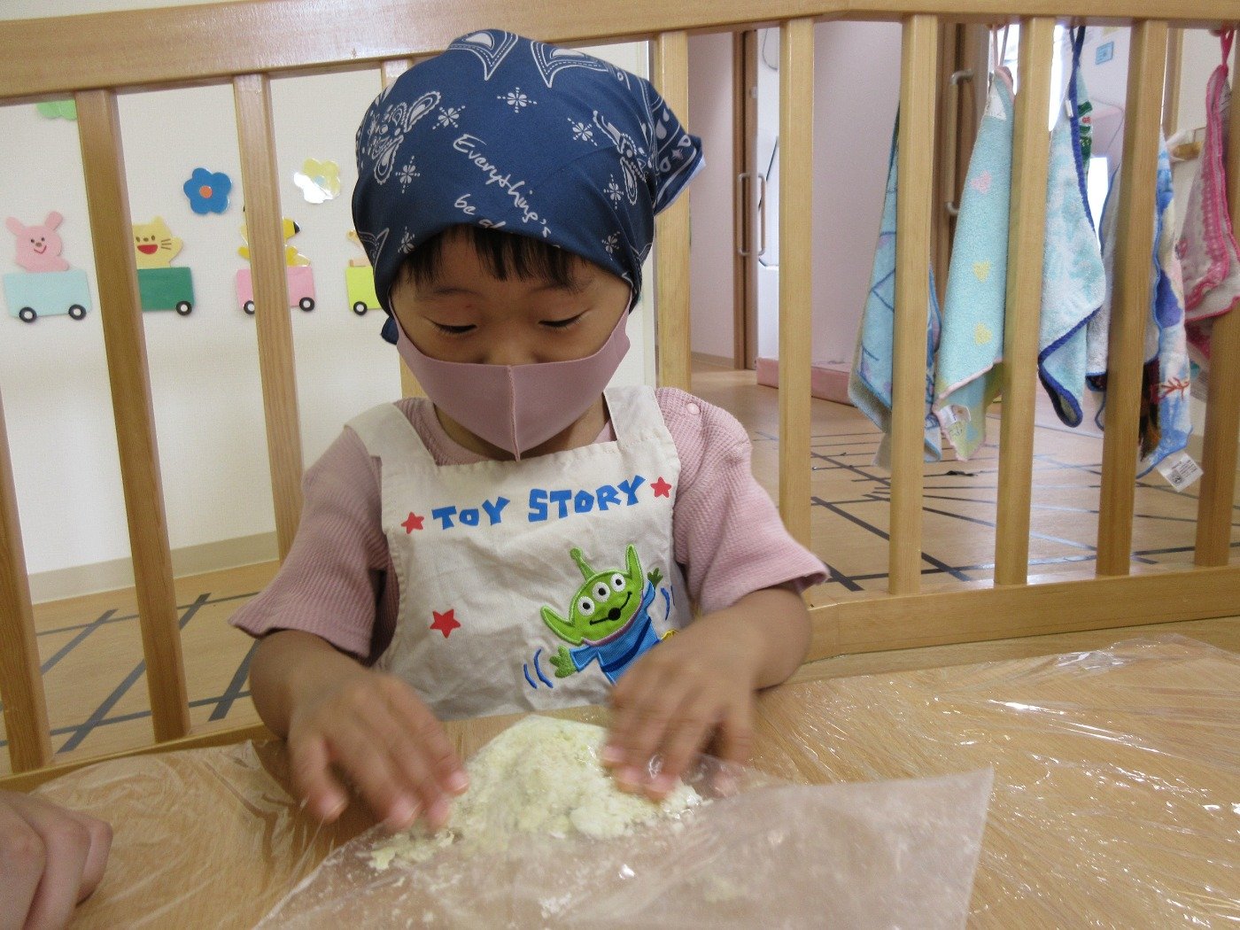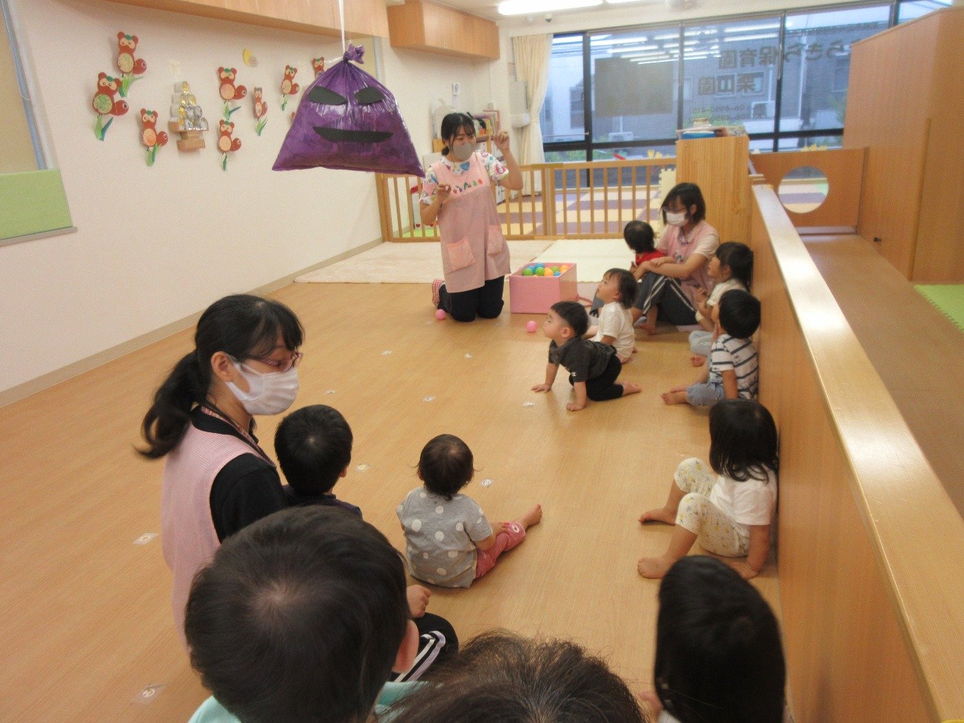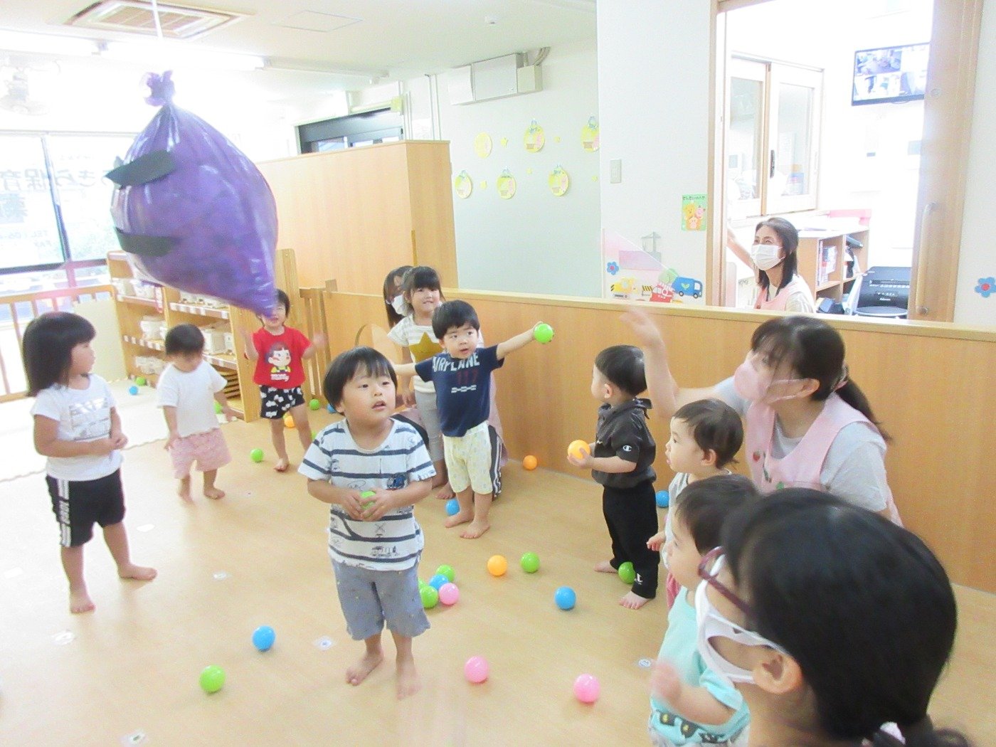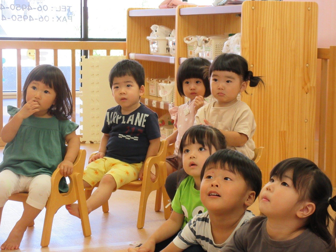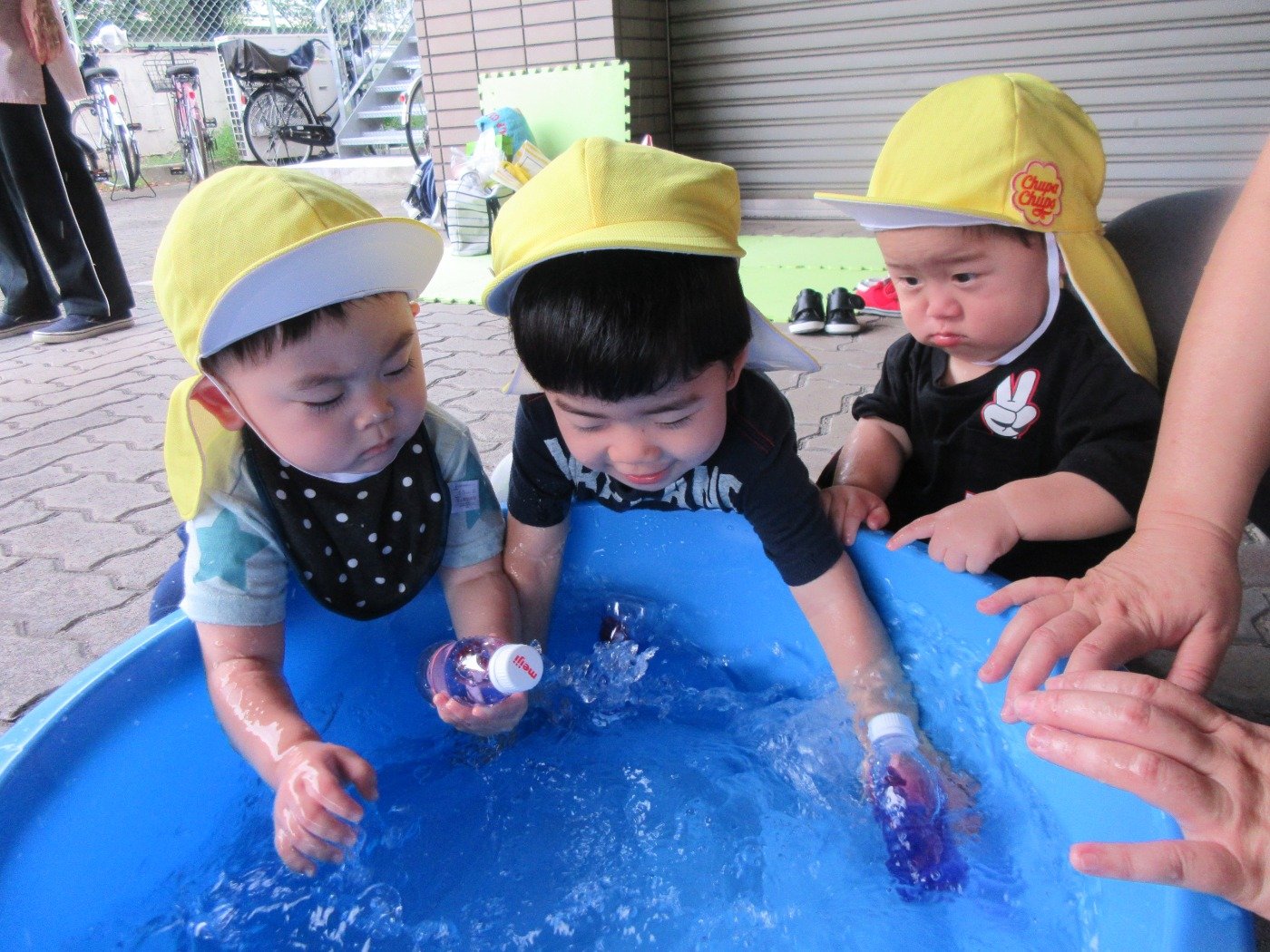 夏日だった9月の初旬、くま組さんは、お洗濯ごっこをしました。