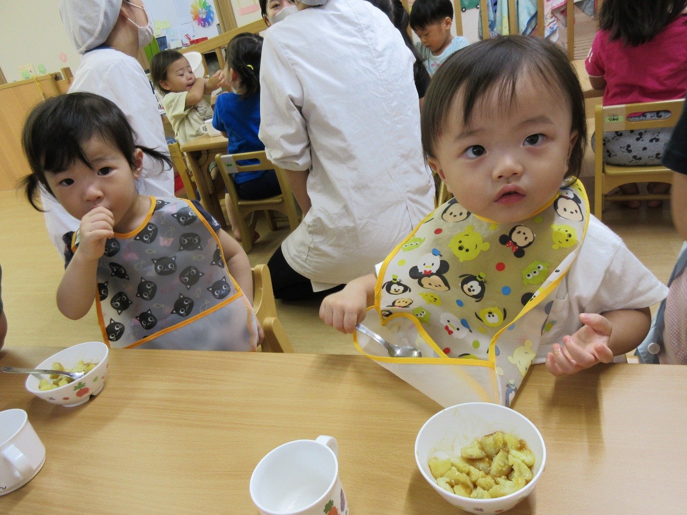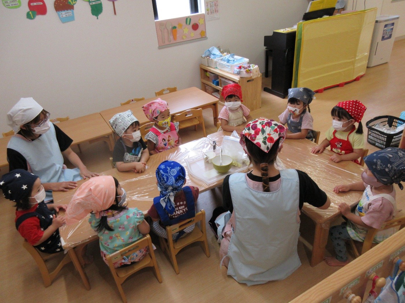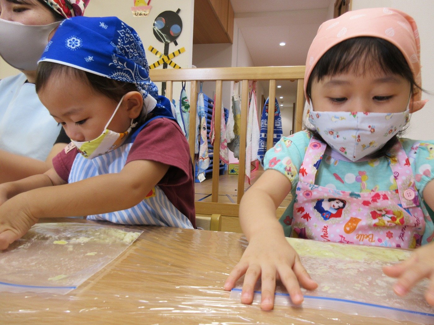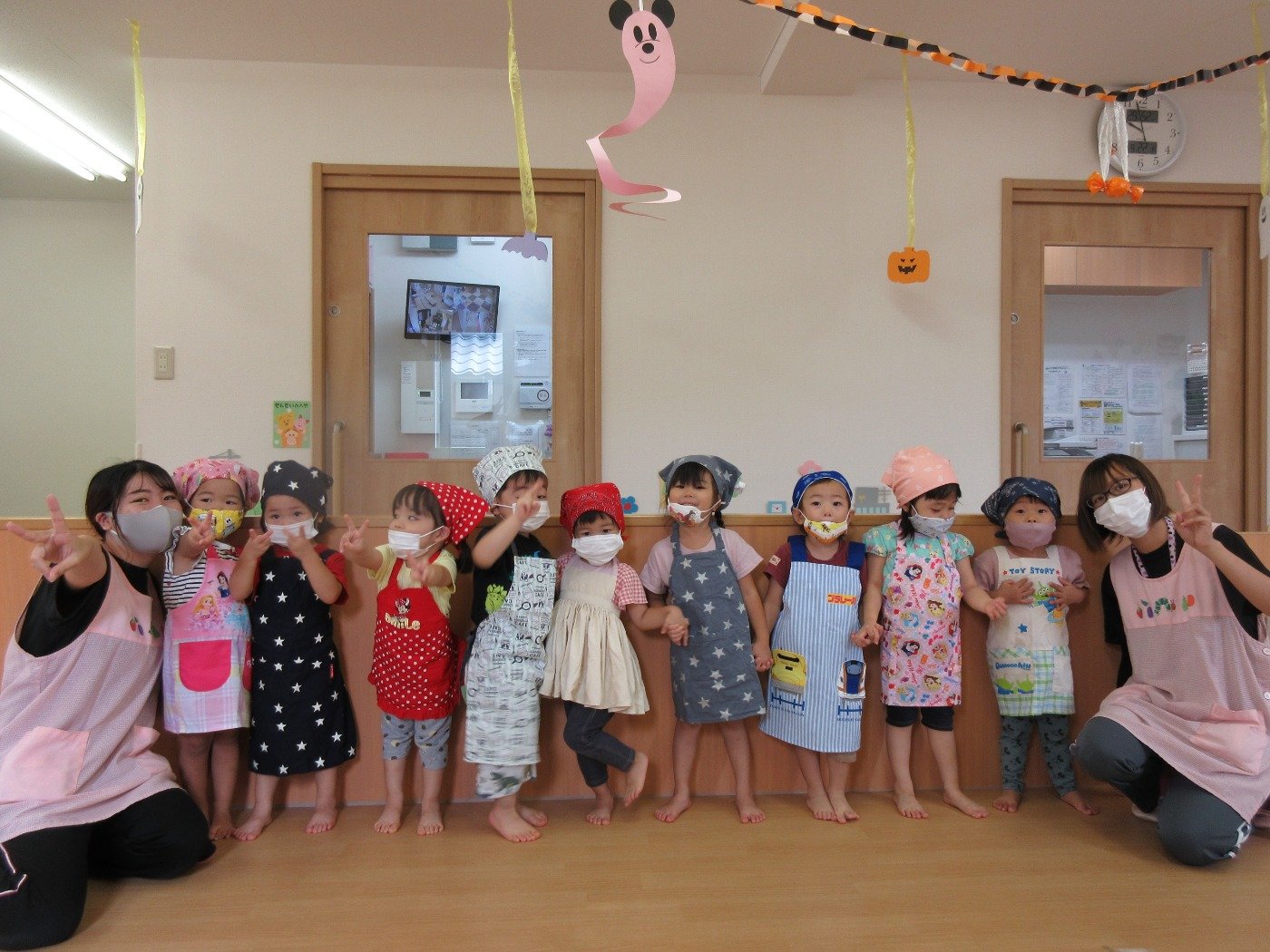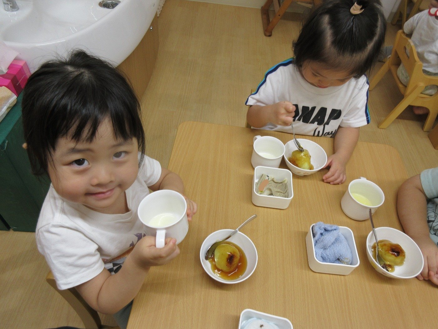 夏日だった9月の初旬、くま組さんは、お洗濯ごっこをしました。