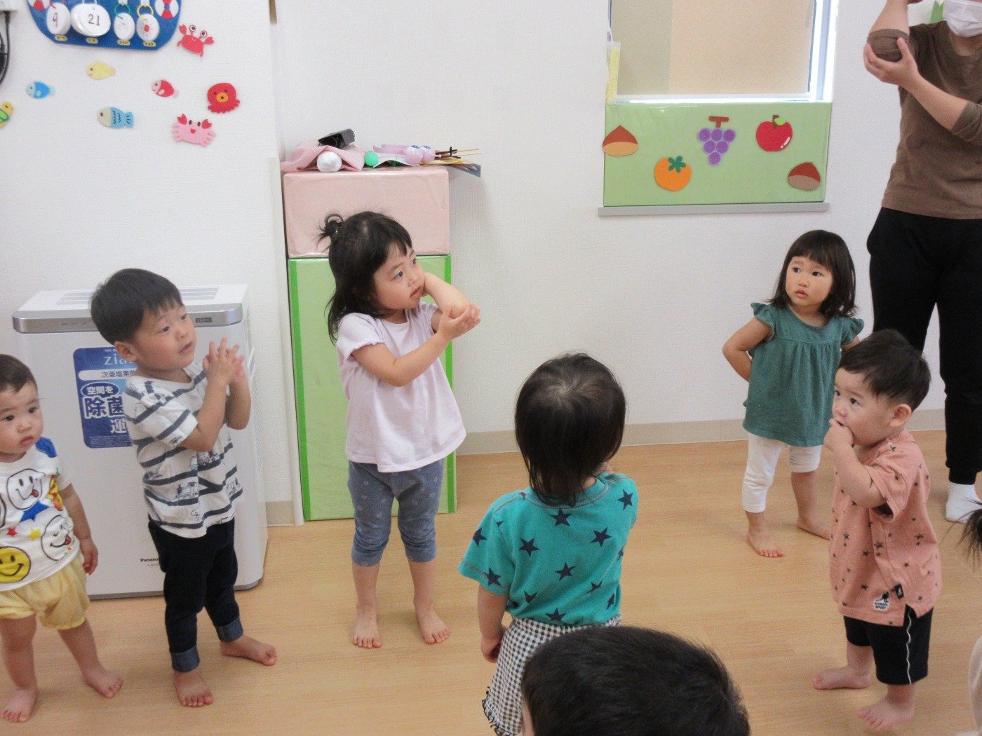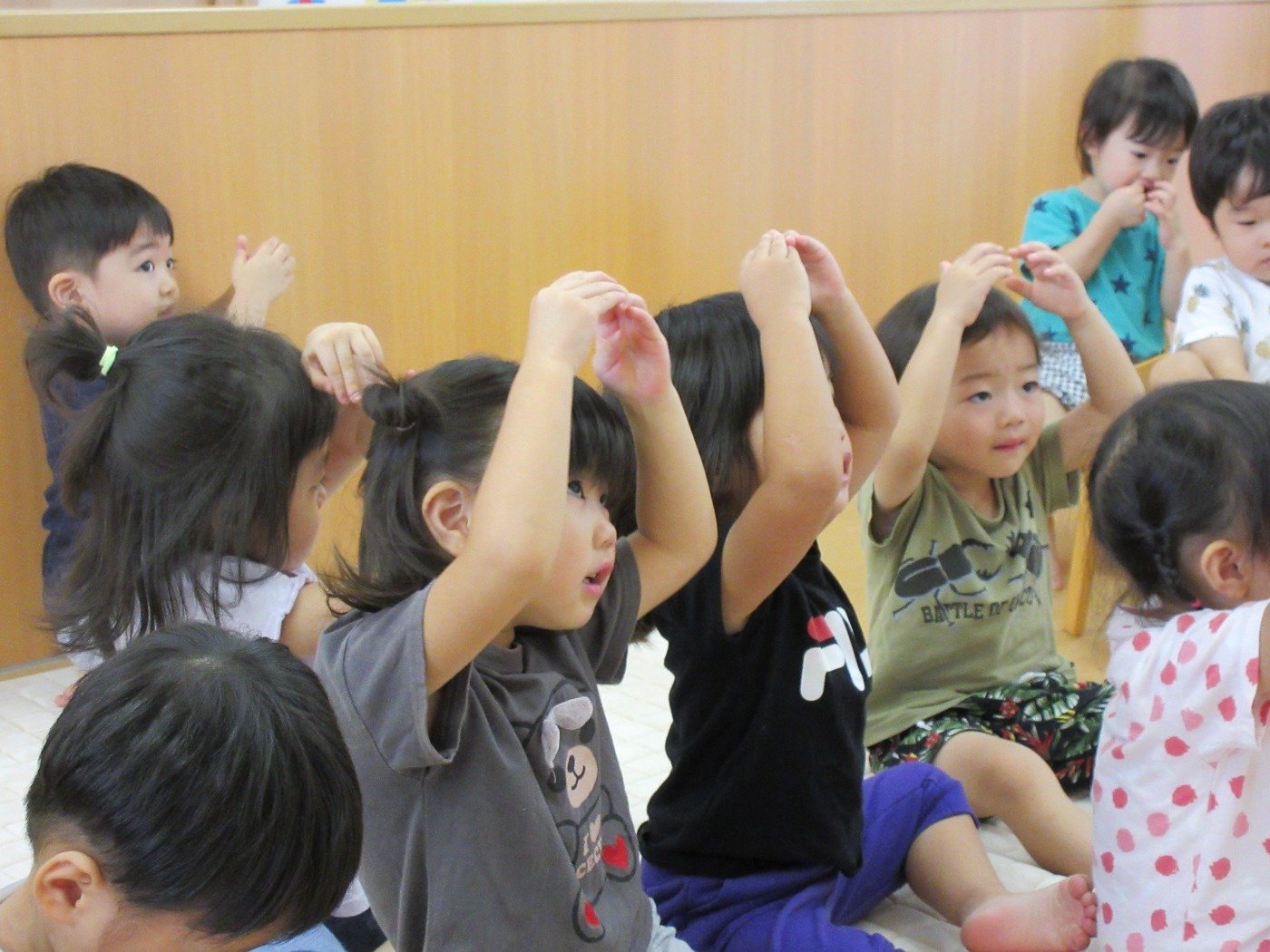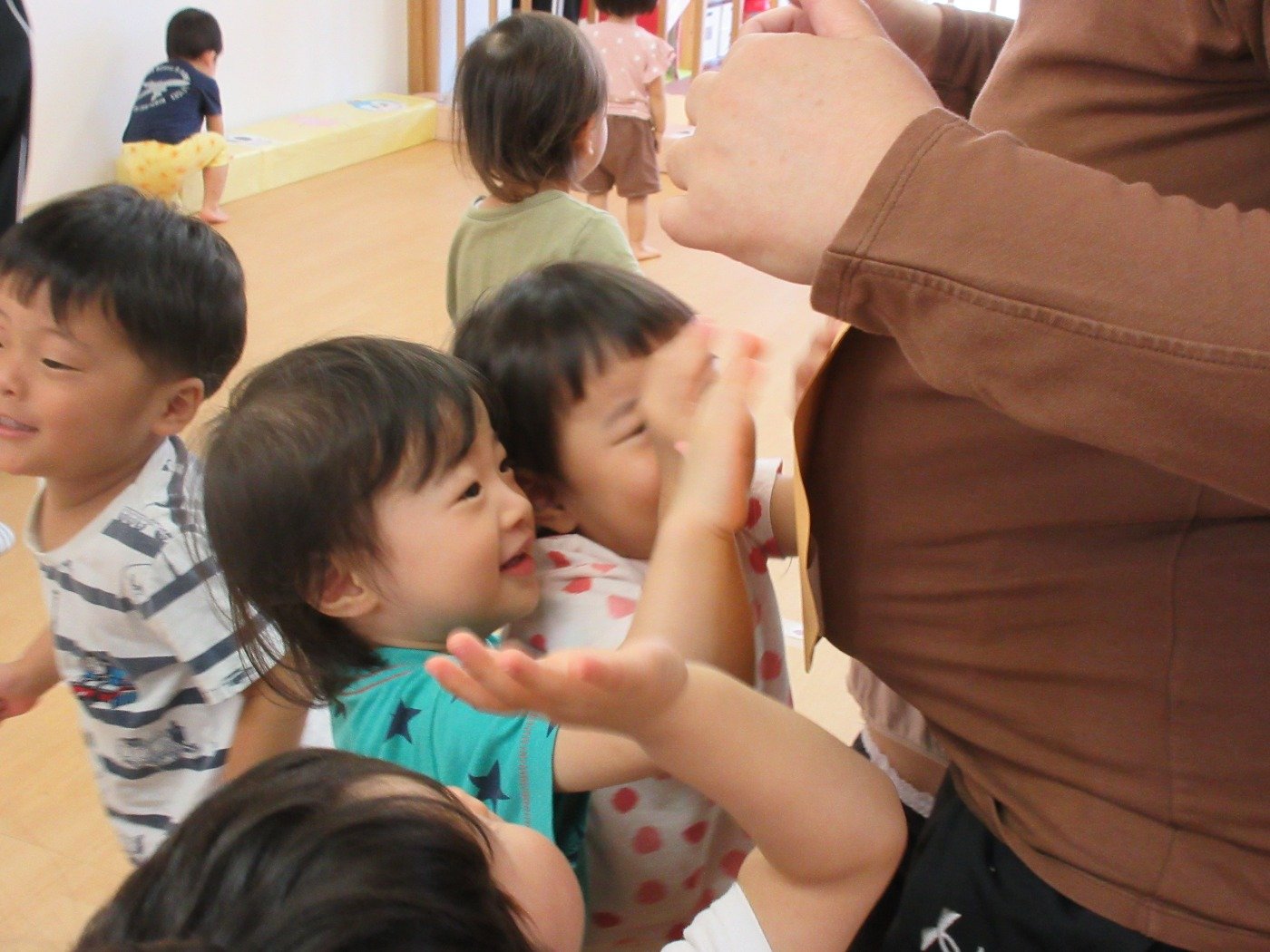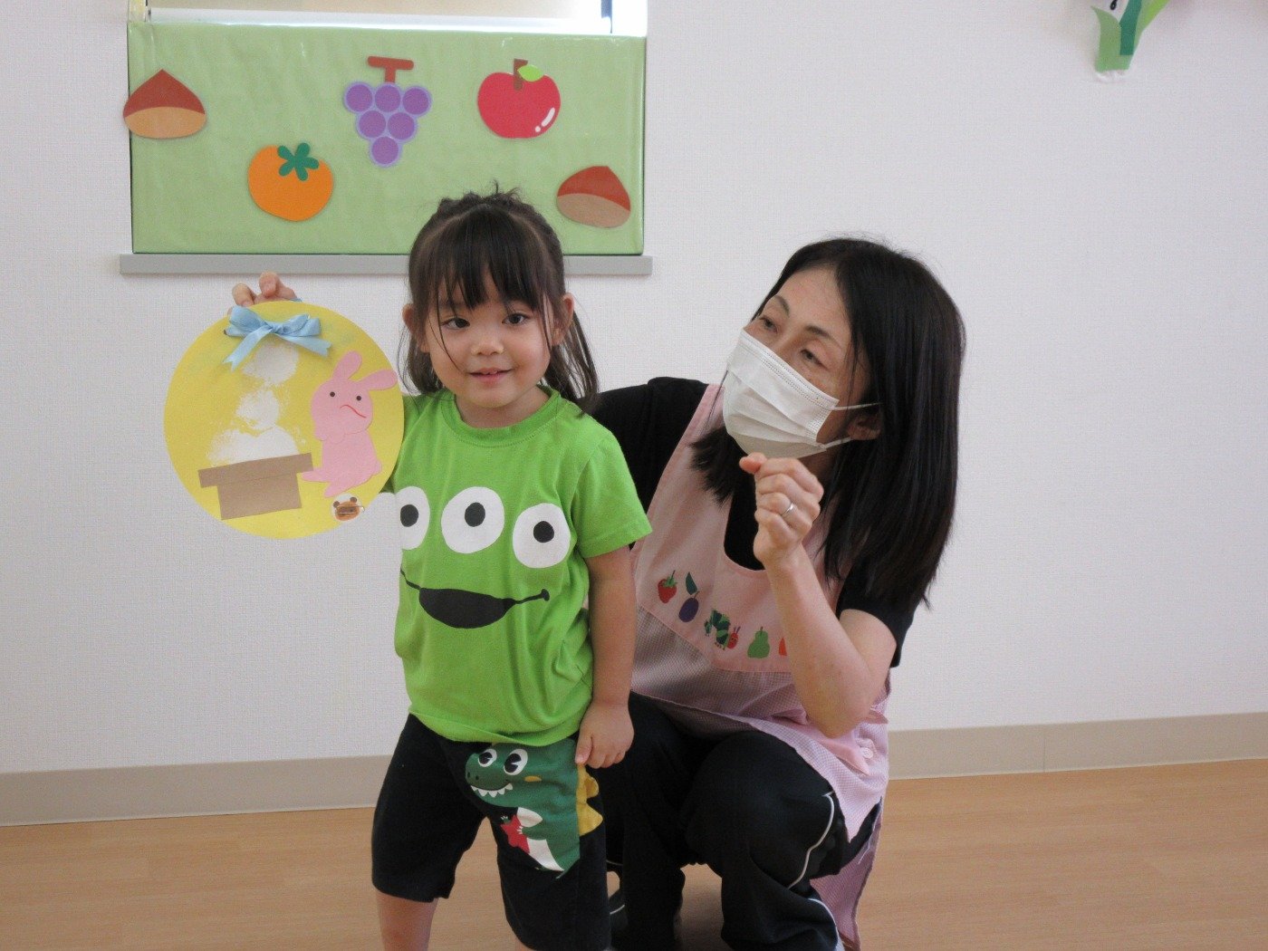 みんなで、「かたたたき」や「つき」の歌を元気よく歌った後は…