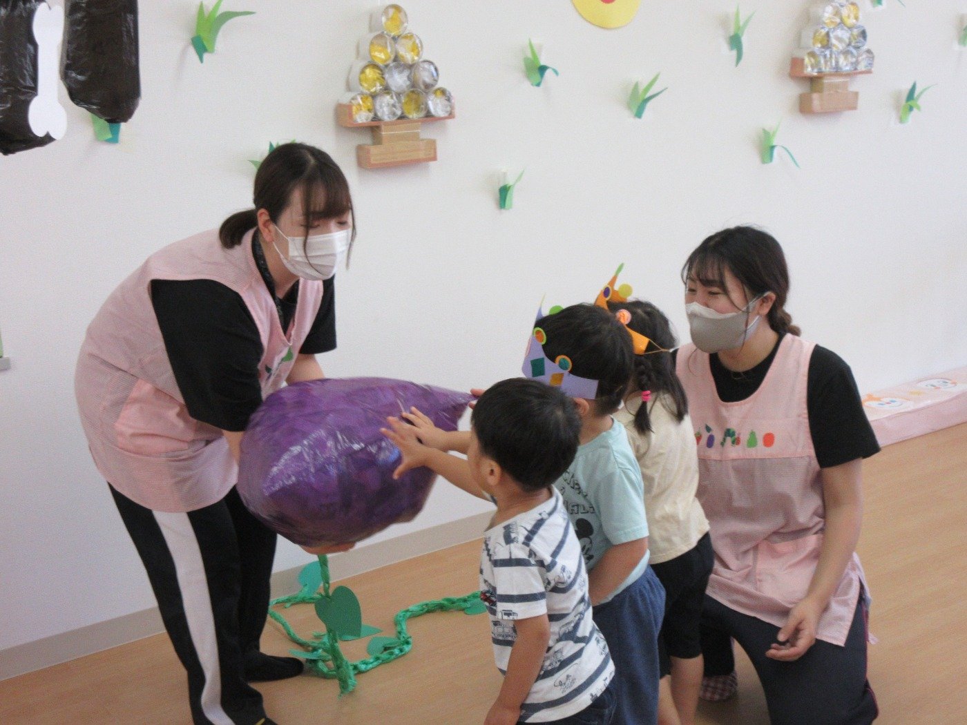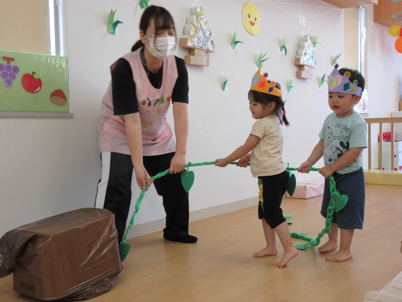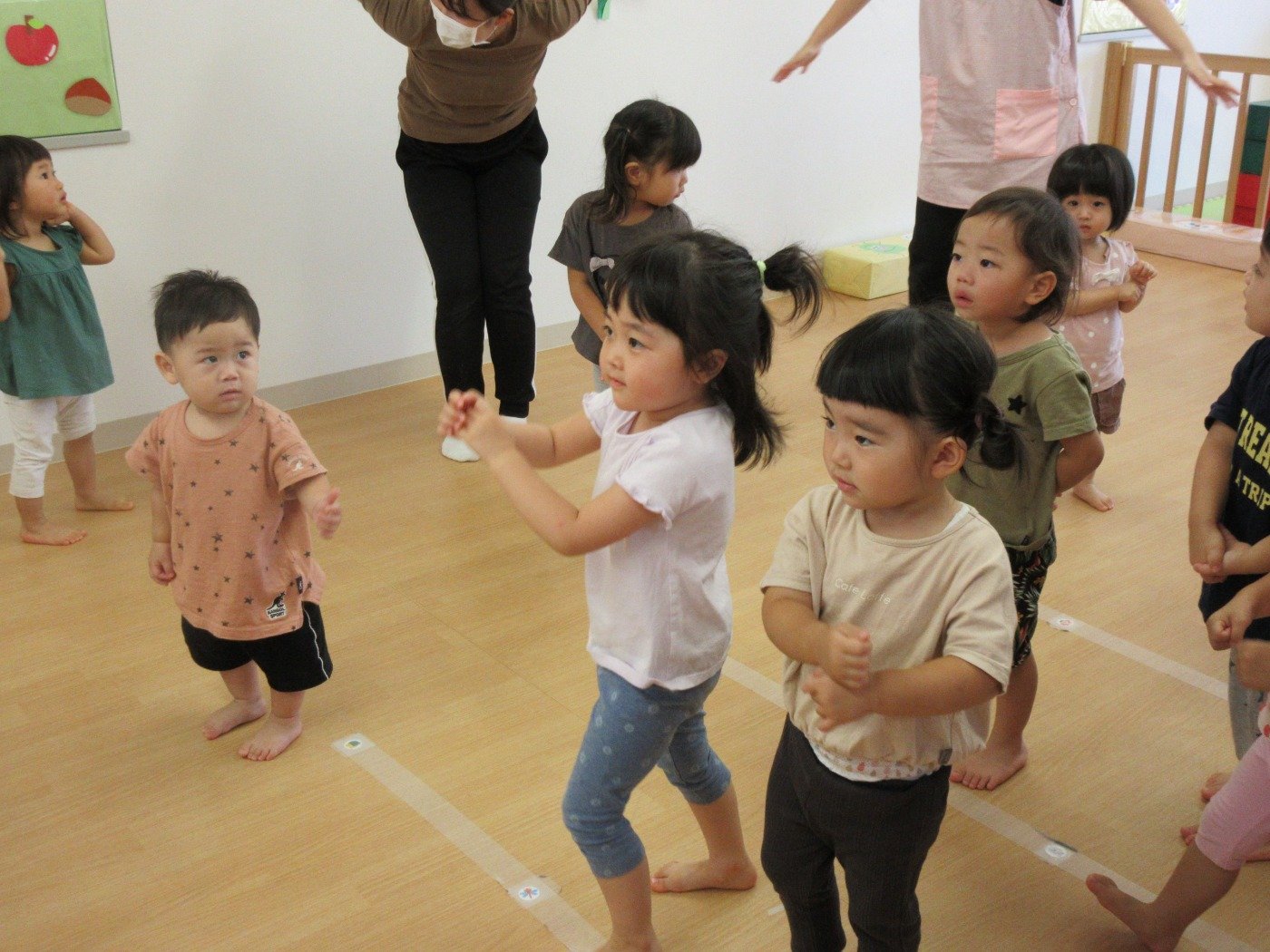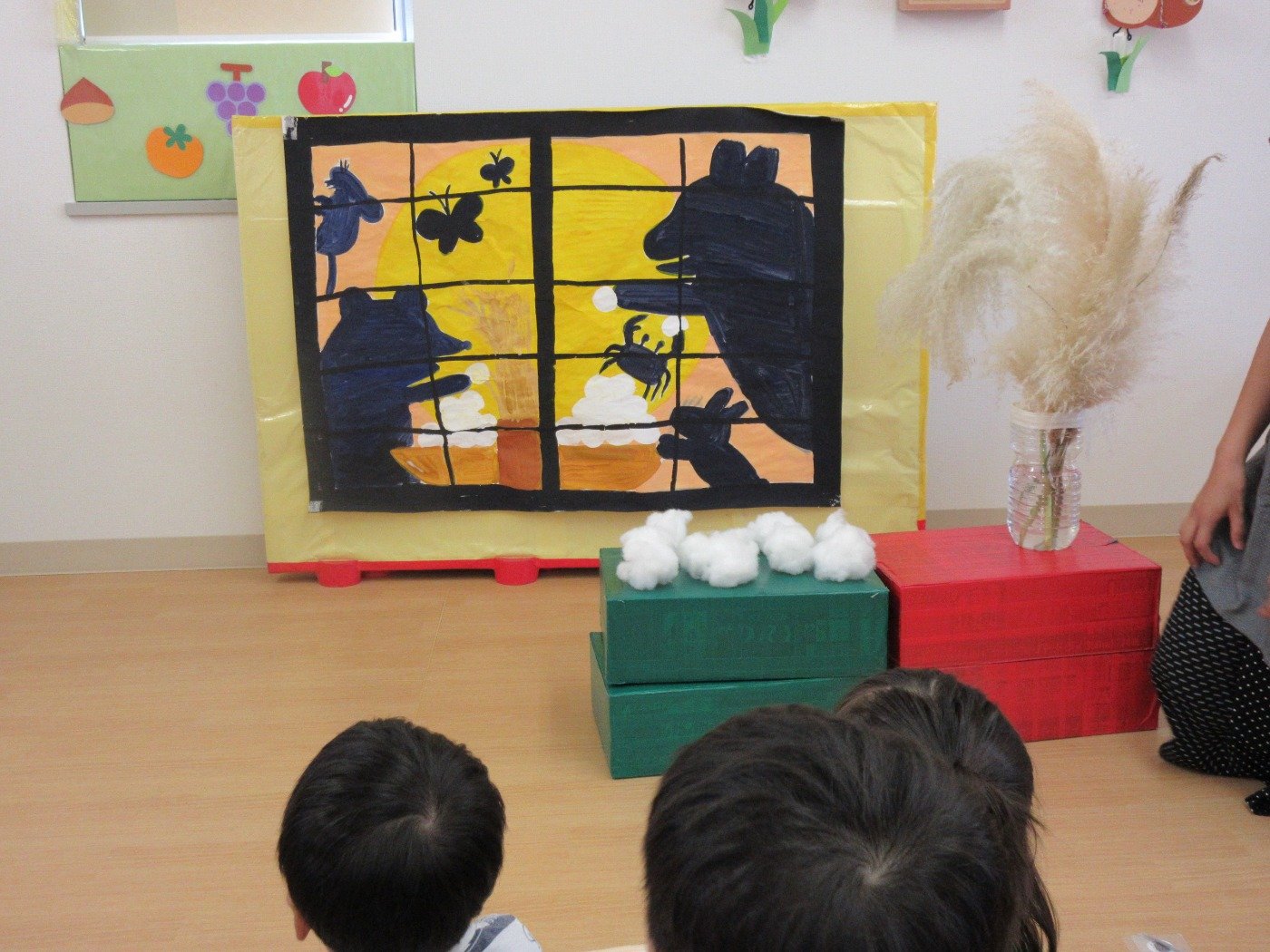 みんなで、「かたたたき」や「つき」の歌を元気よく歌った後は…