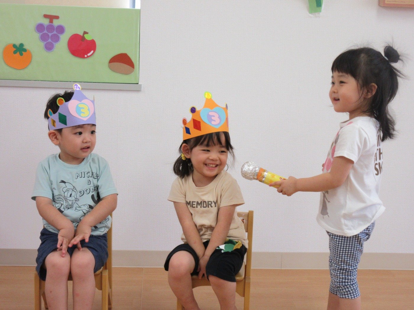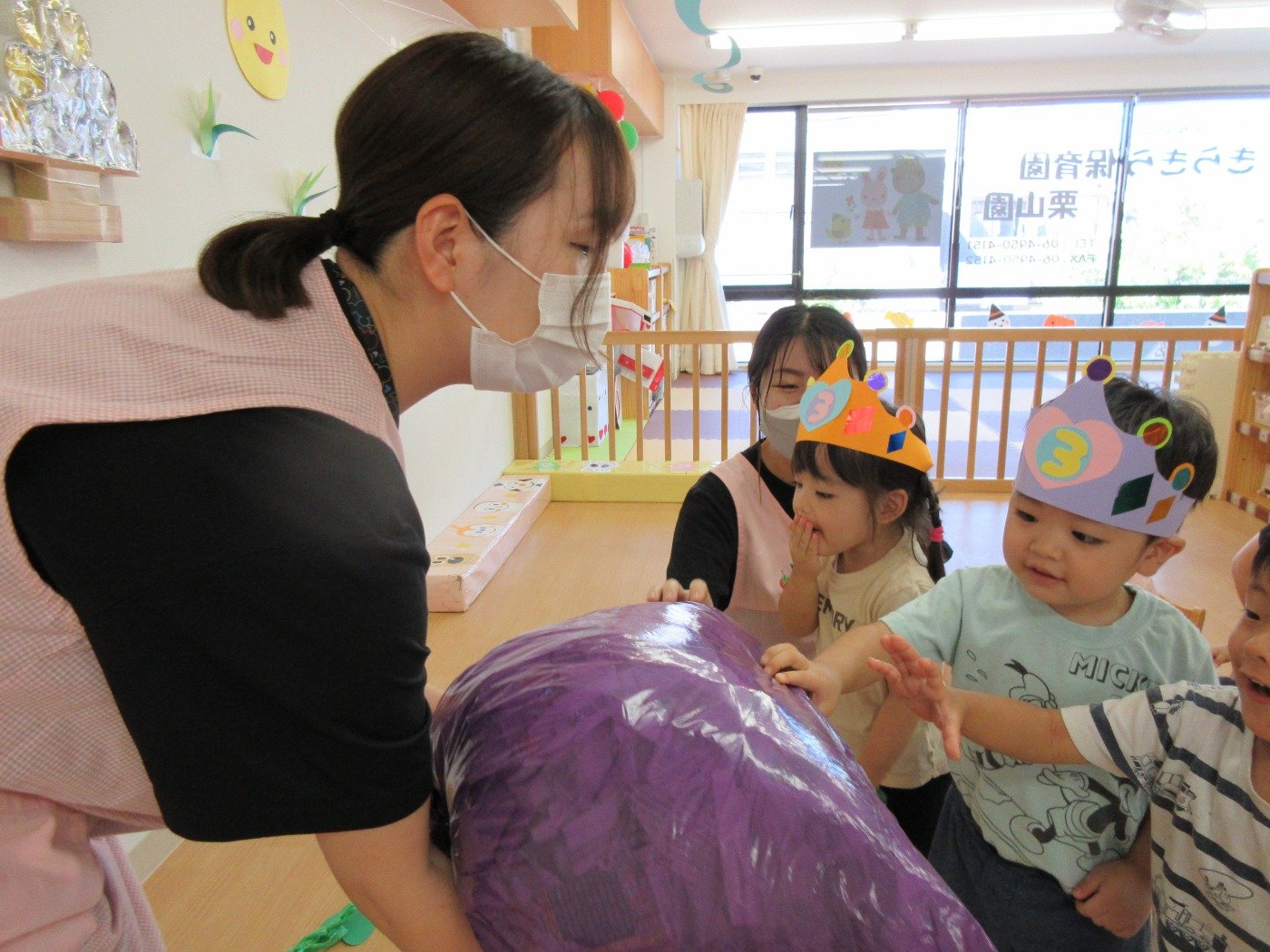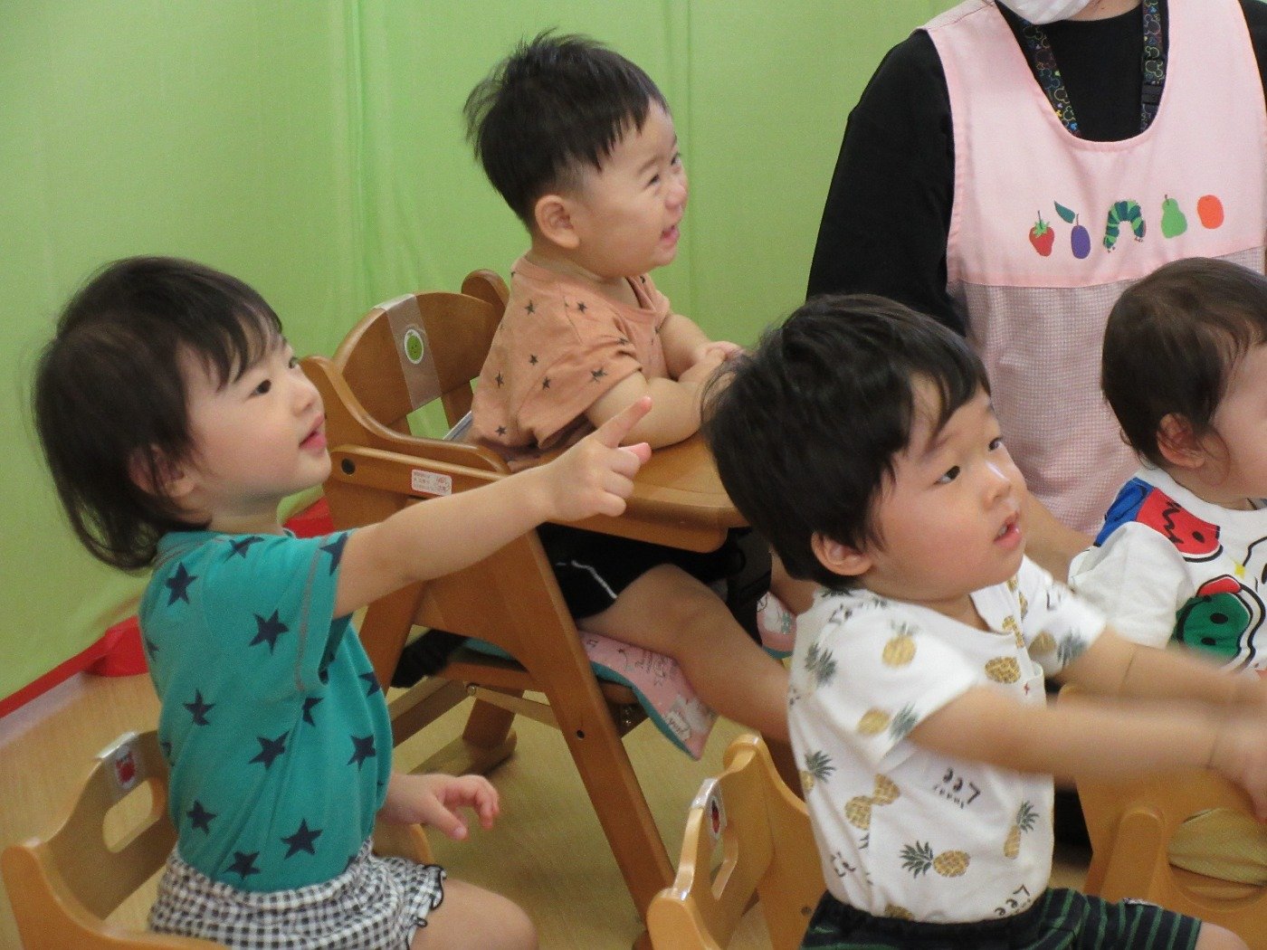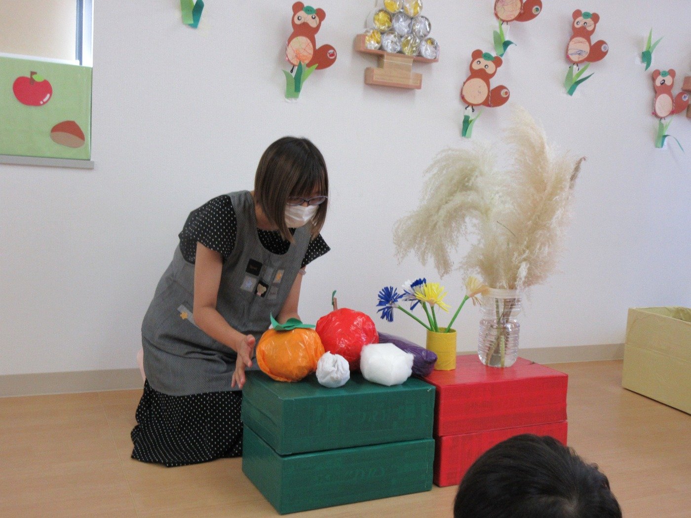 みんなで、「かたたたき」や「つき」の歌を元気よく歌った後は…