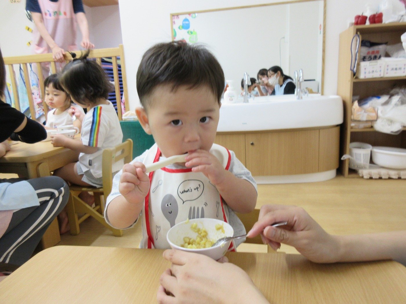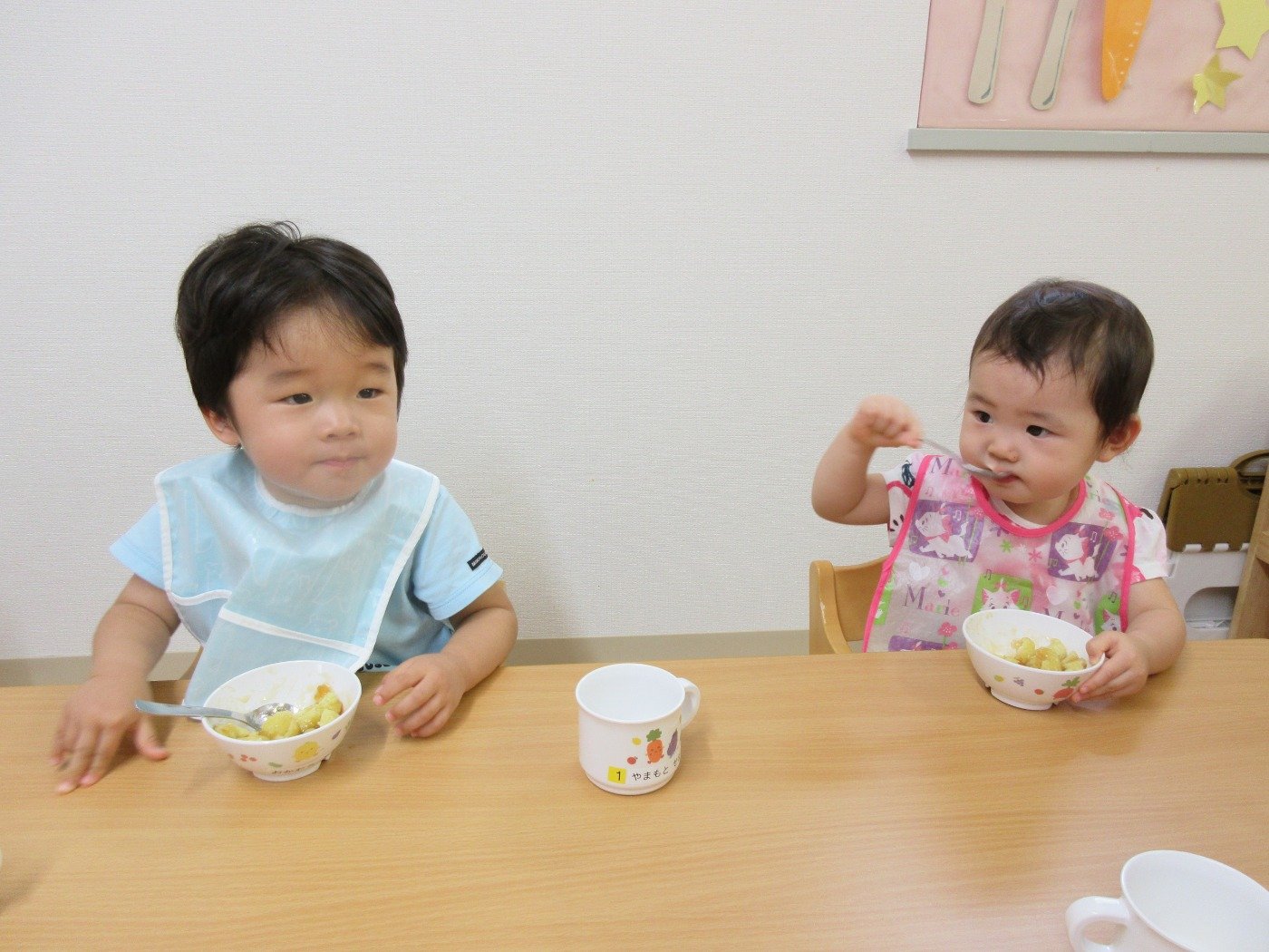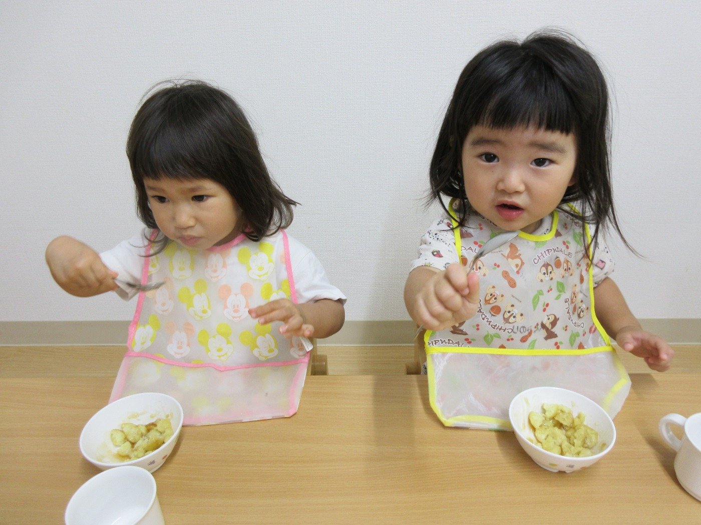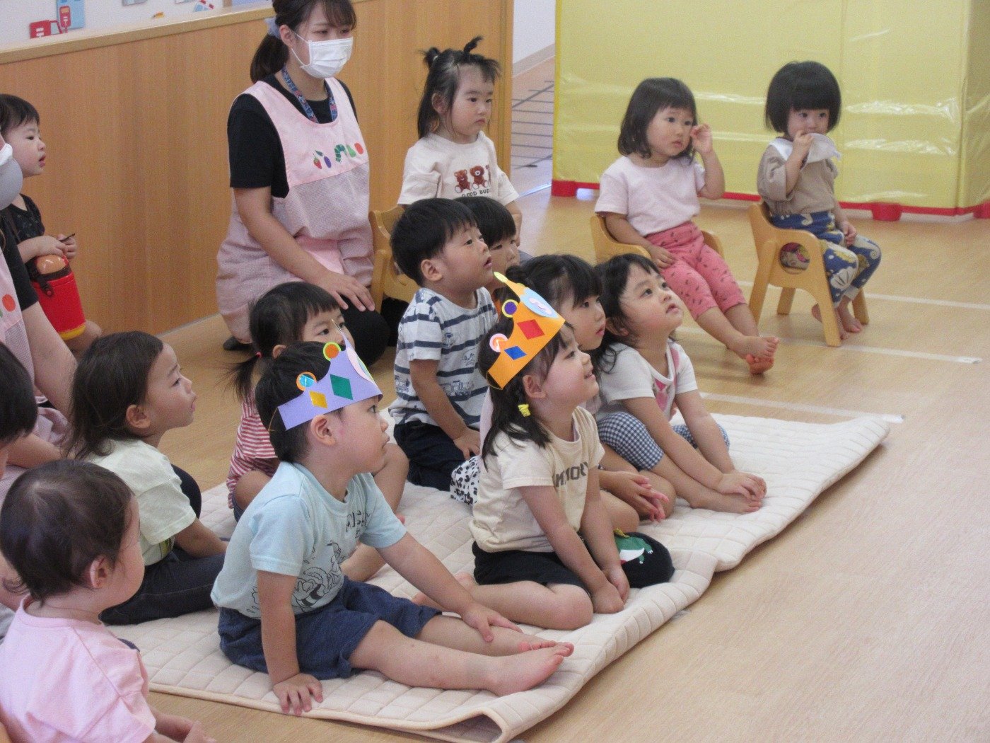 みんなで、「かたたたき」や「つき」の歌を元気よく歌った後は…