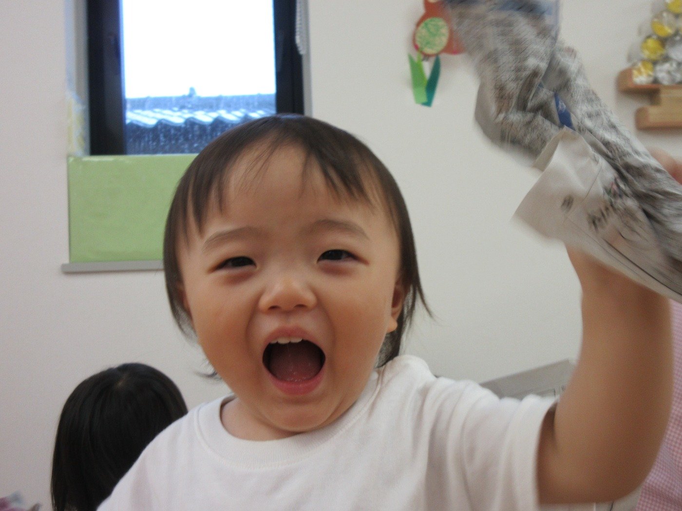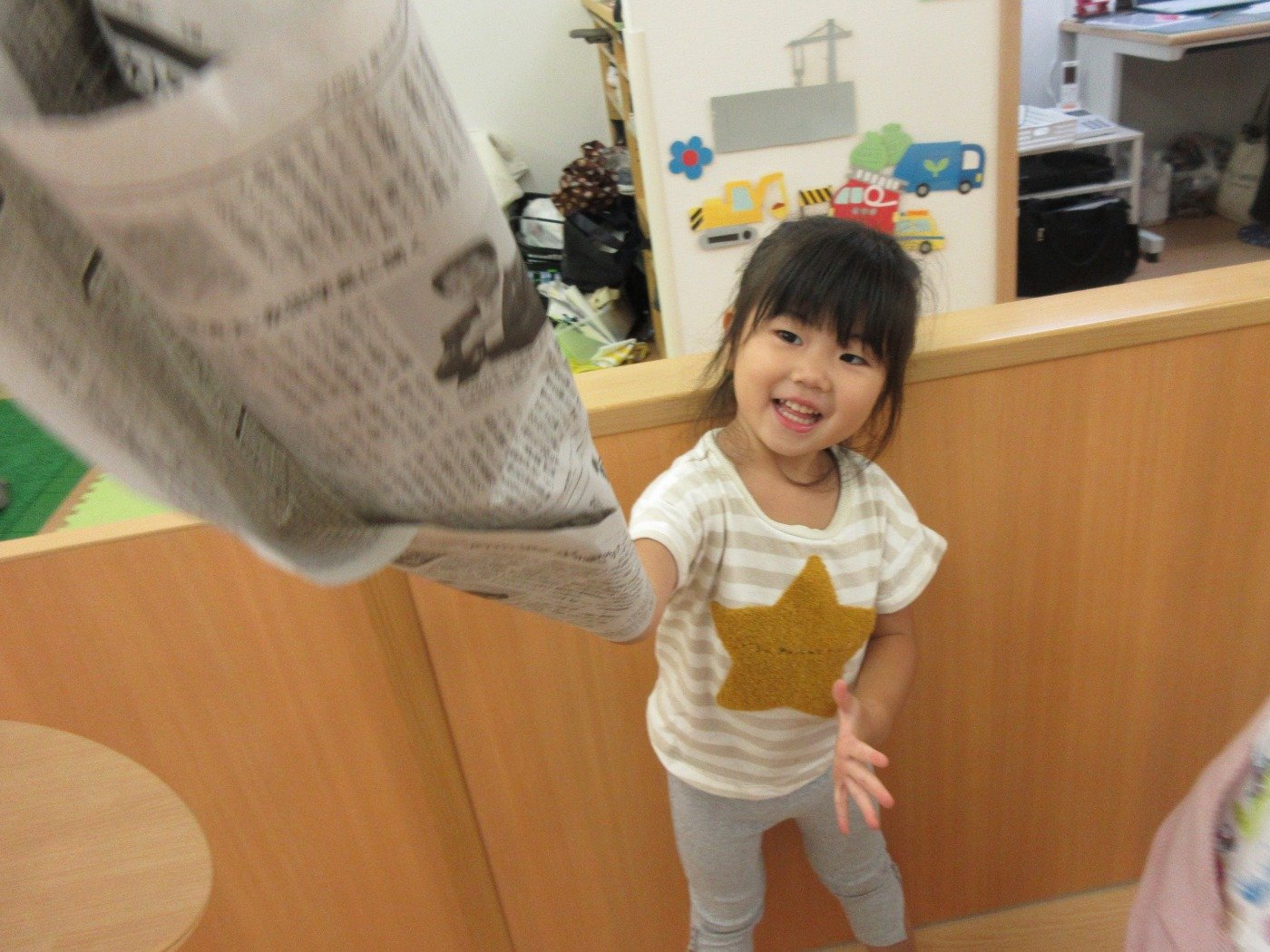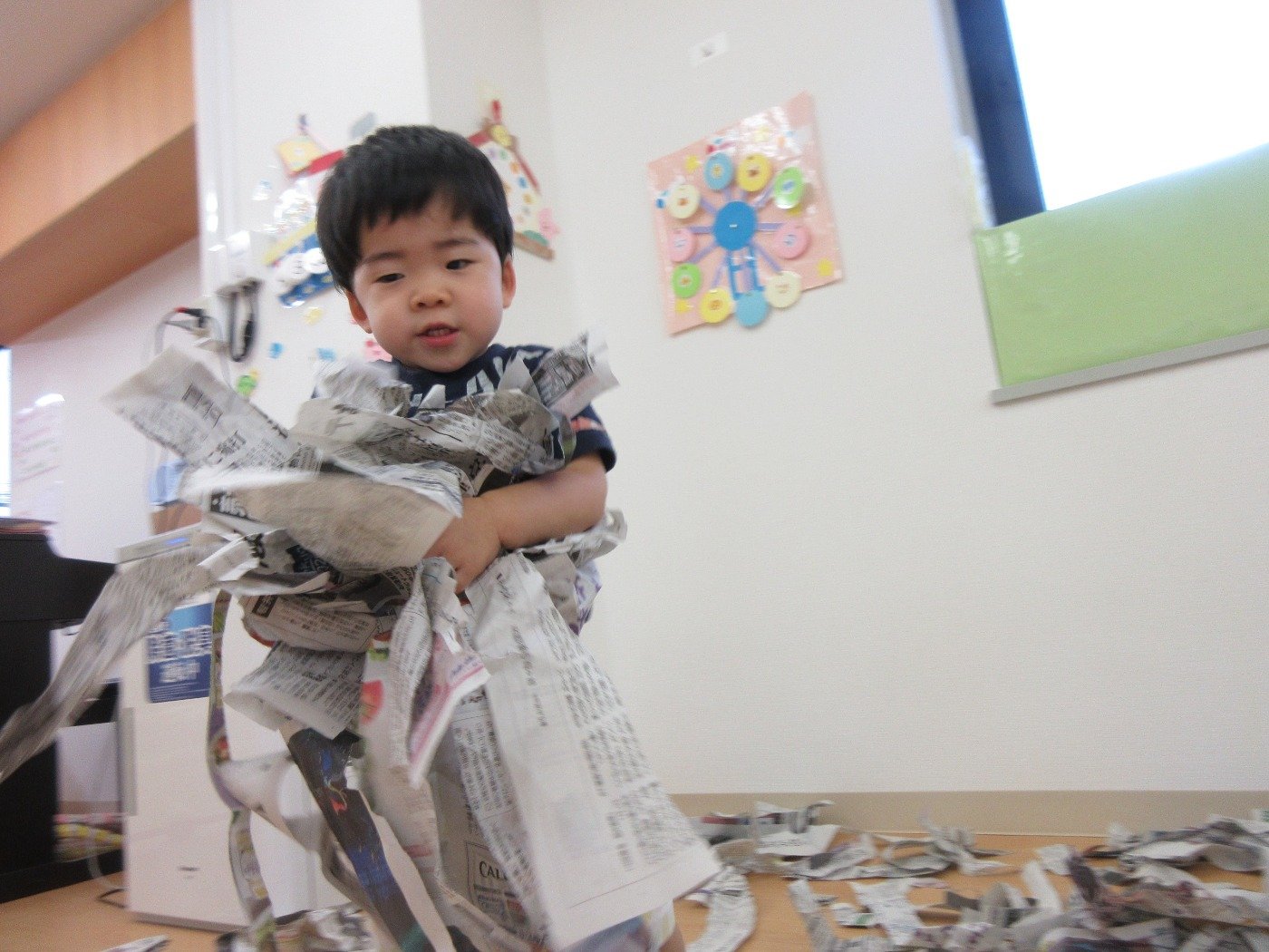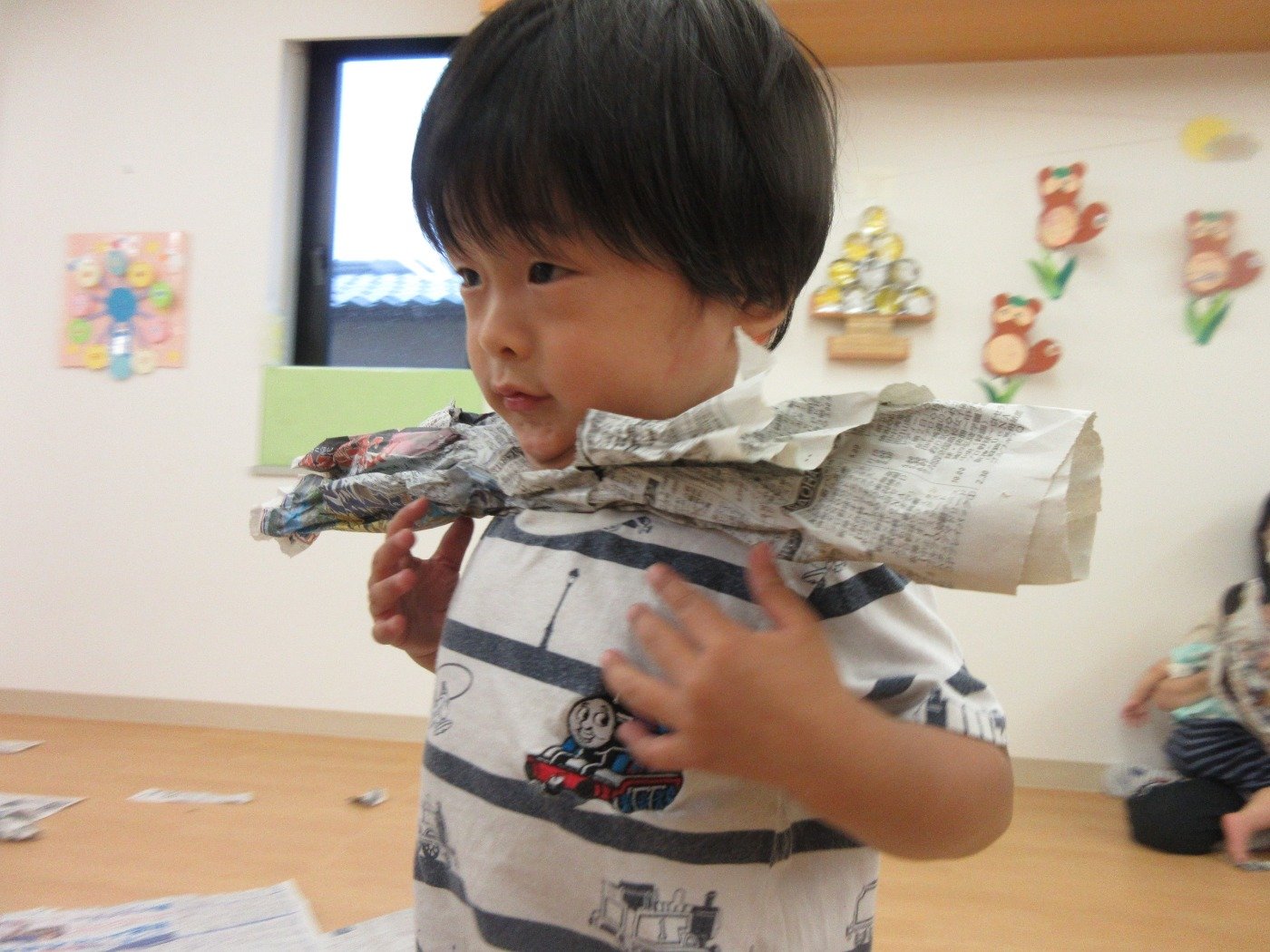 ビリビリ破いたり、クルクル丸めて「かっこいいでしょ!」と