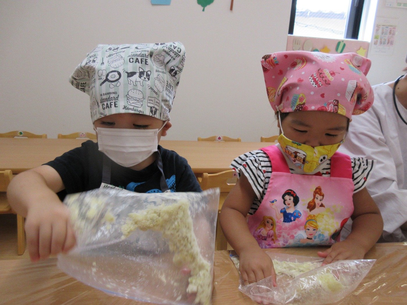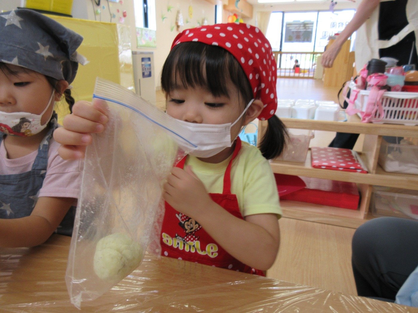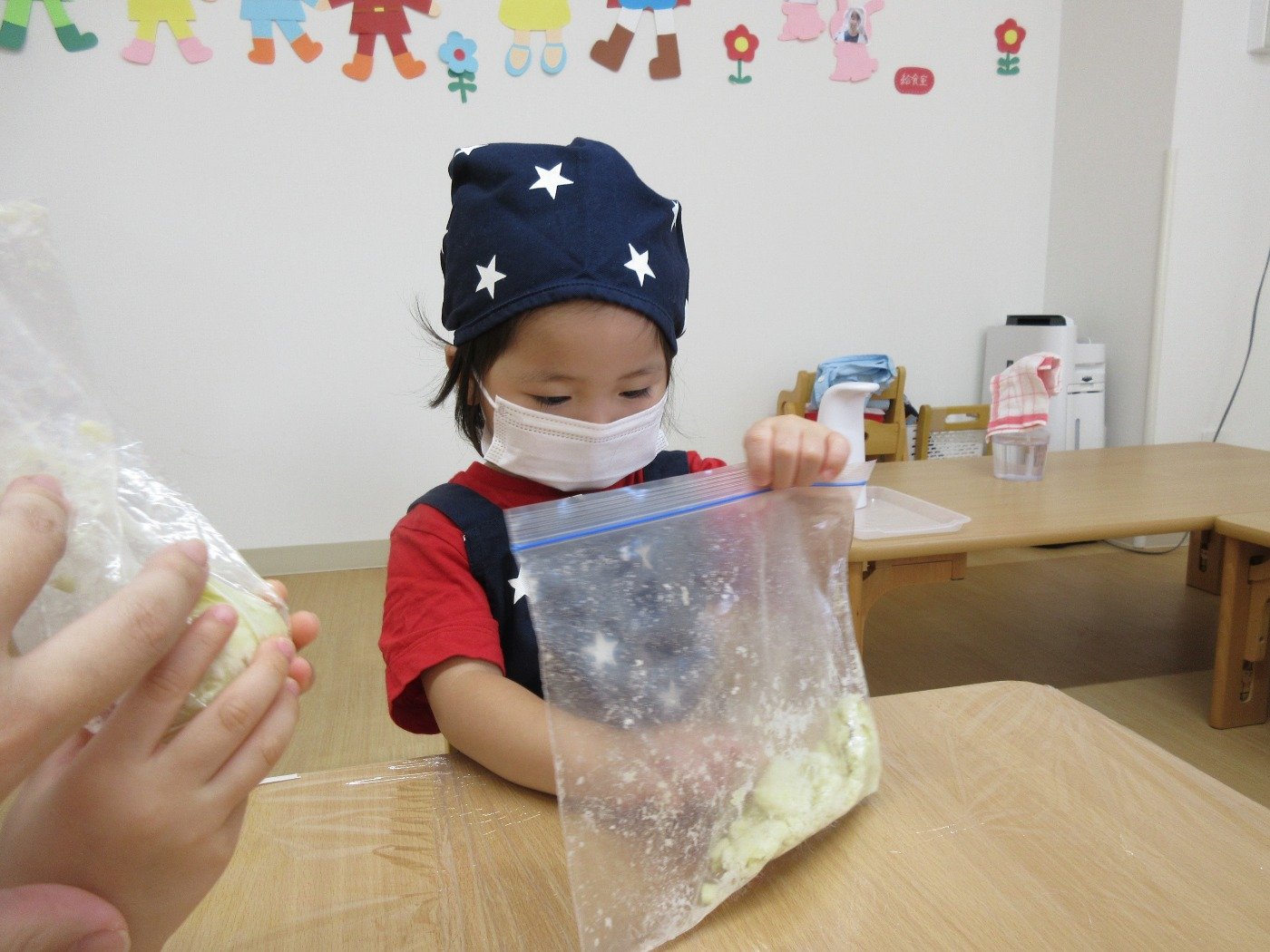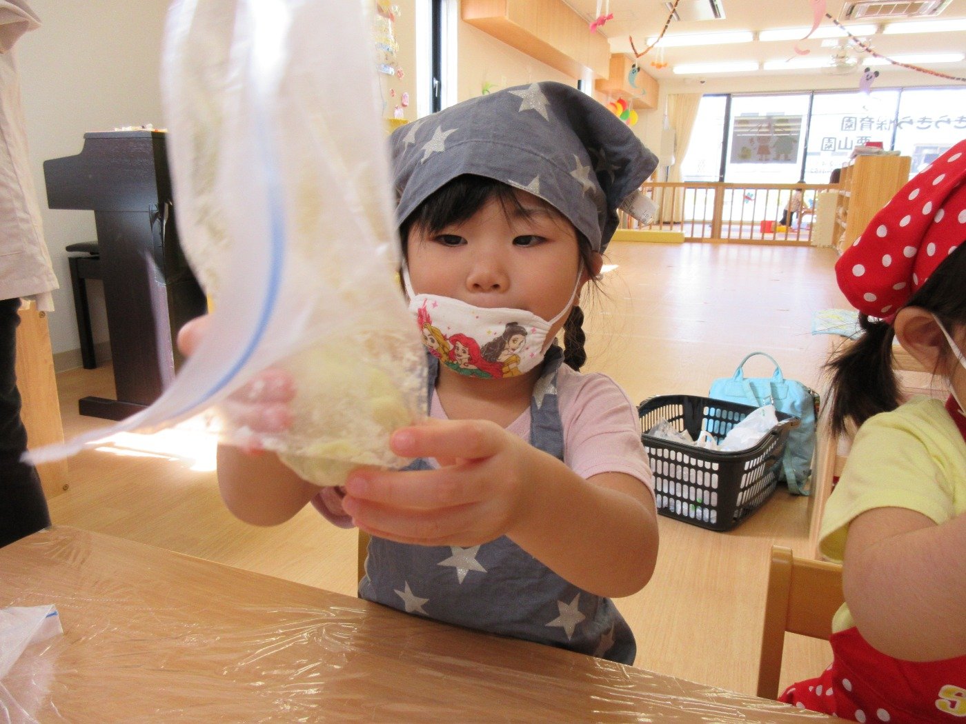 袋の中に、おいもやお砂糖などなどの材料を入れて、