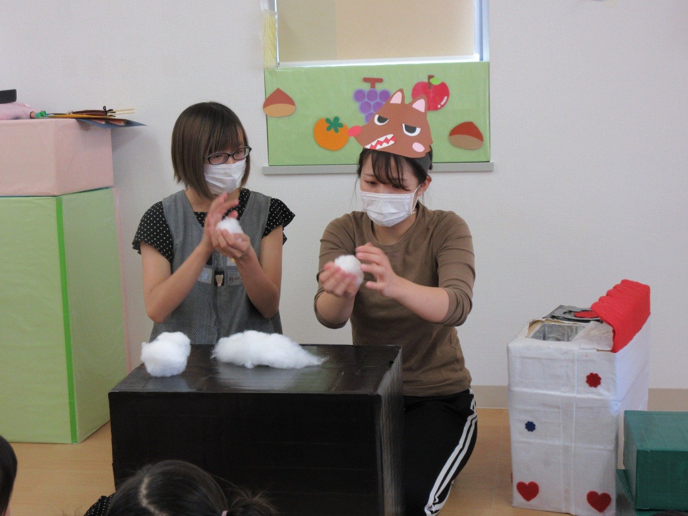 先生たちが、たぬきさんやねずみさん、オオカミさんになって登場!