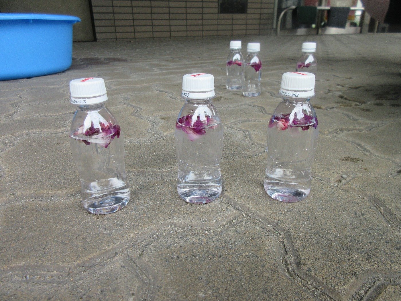 透明だったお水が、どんどん色づき、紫色になりました☆