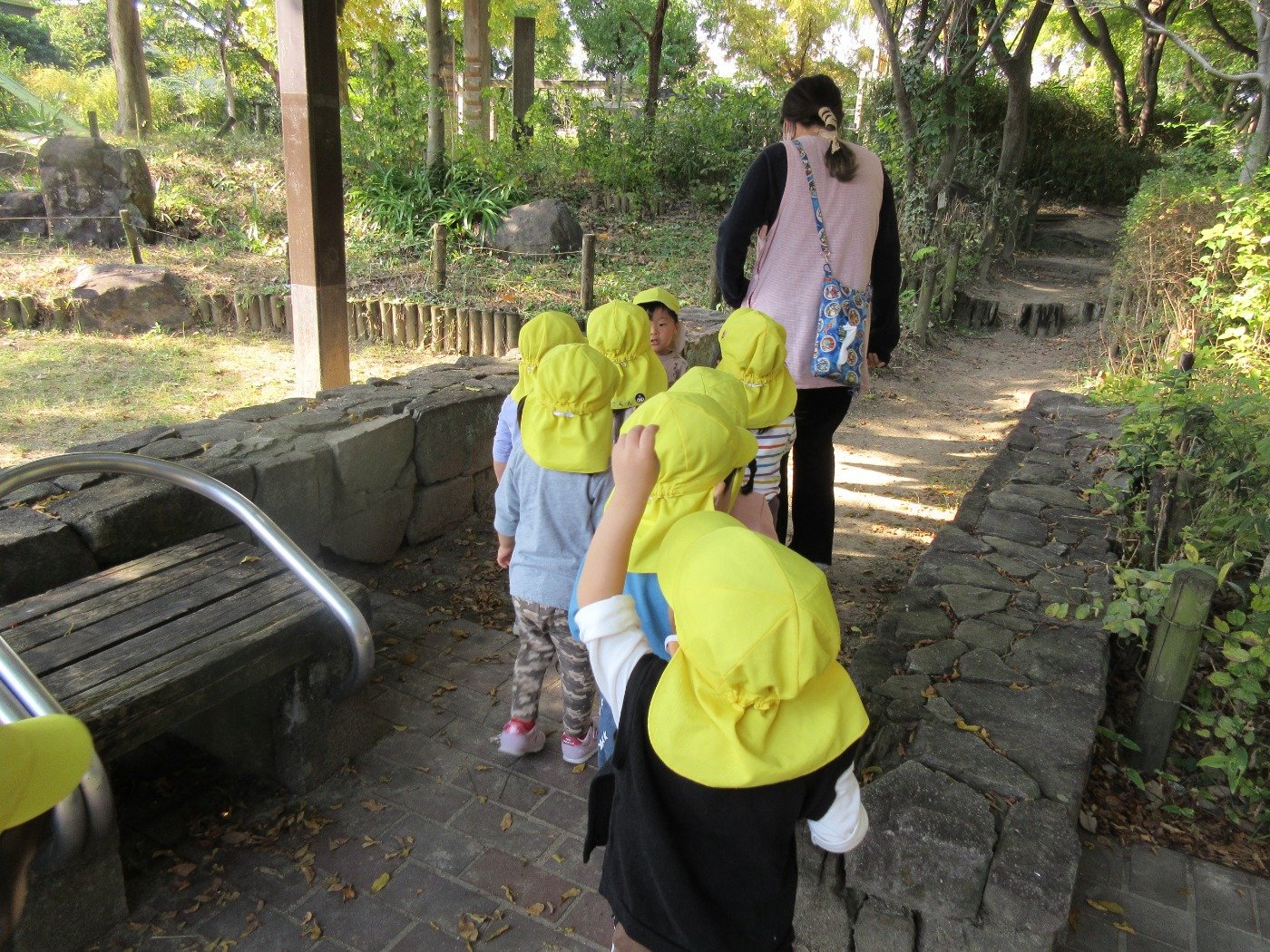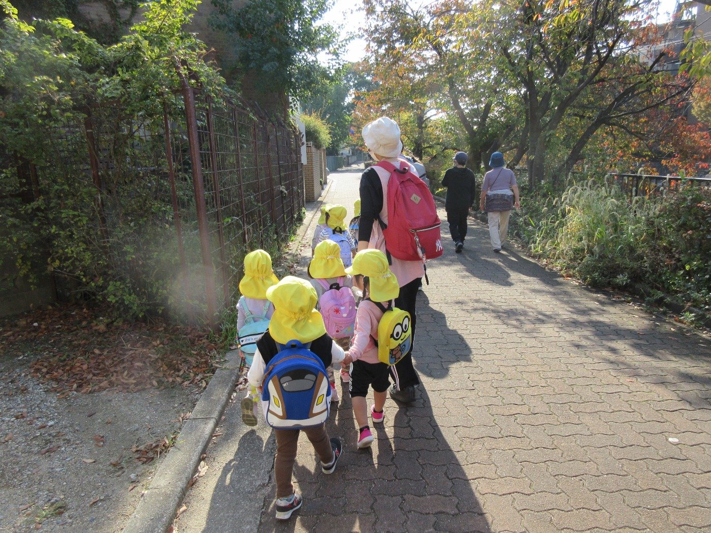 歩こう遠足に「しゅっぱーつ!」「しんこうー!」