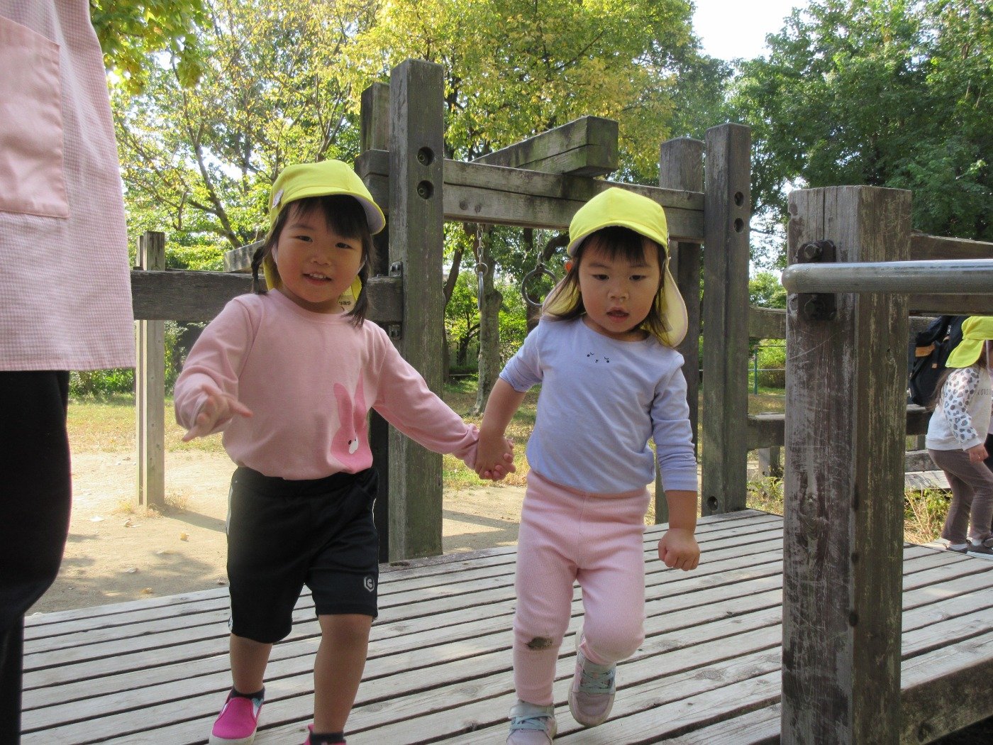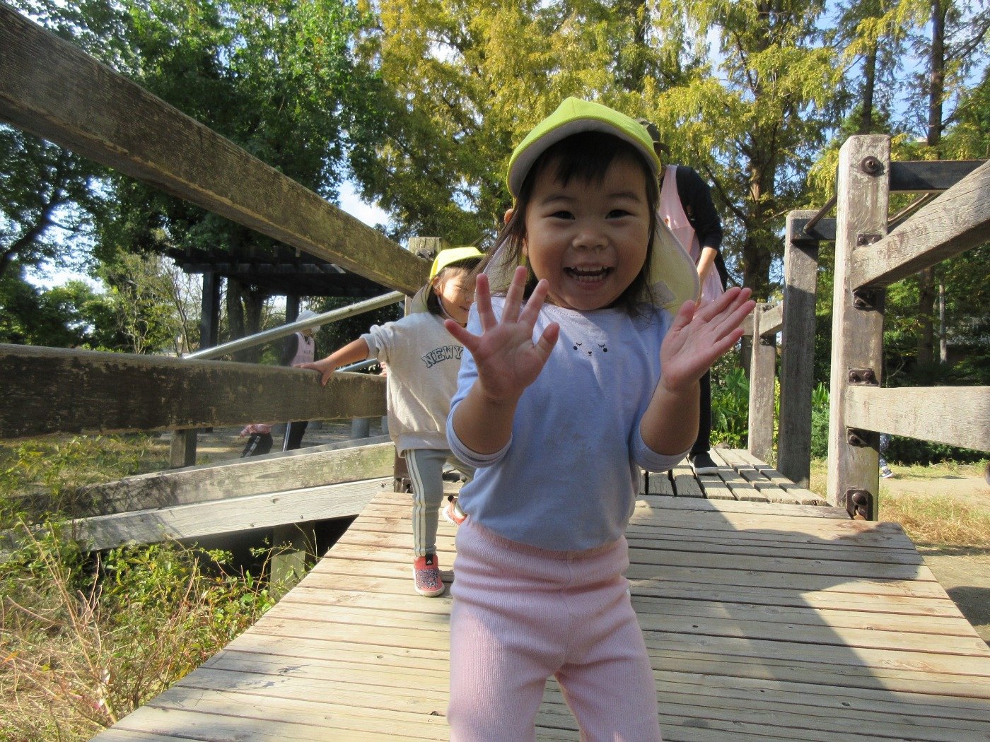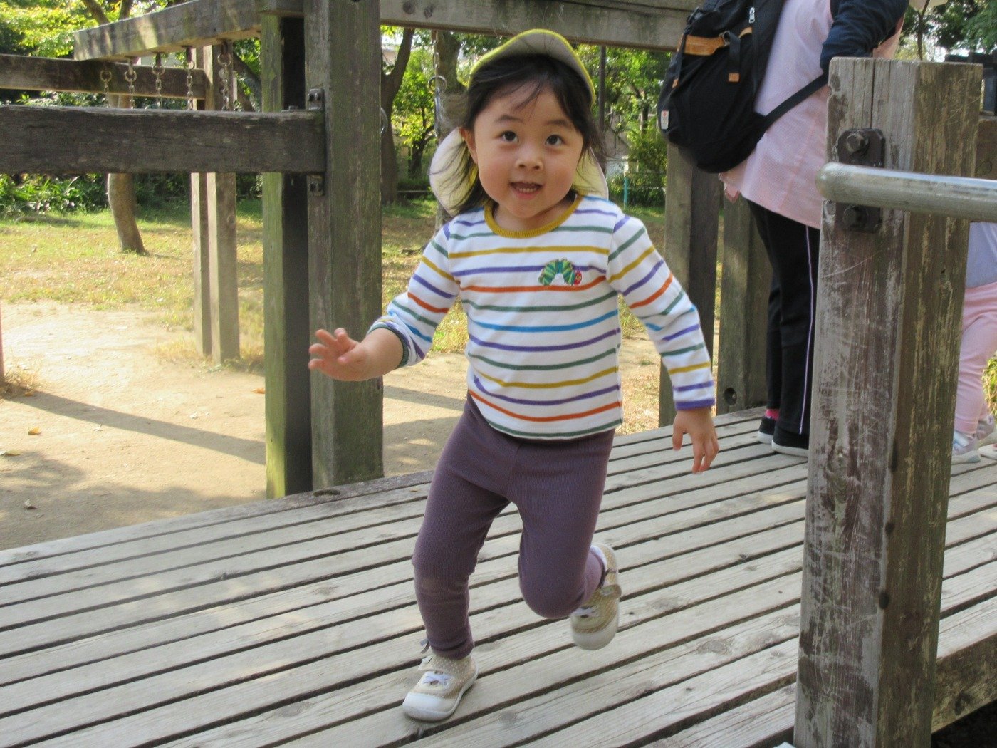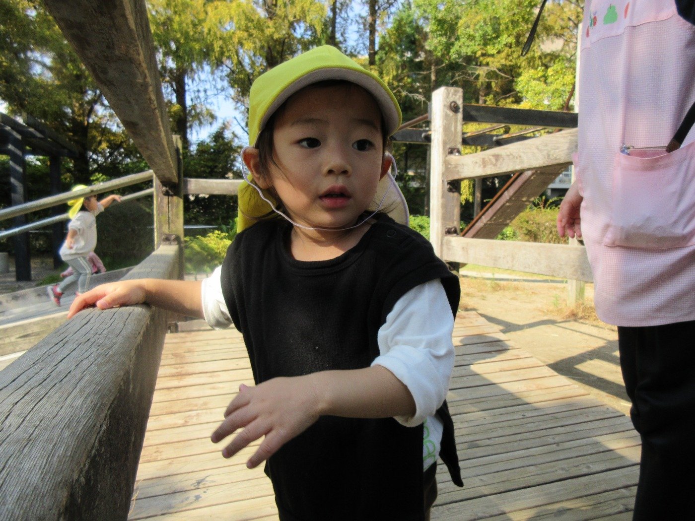 木製遊具の揺れる橋が面白かったようで、先生からのお約束