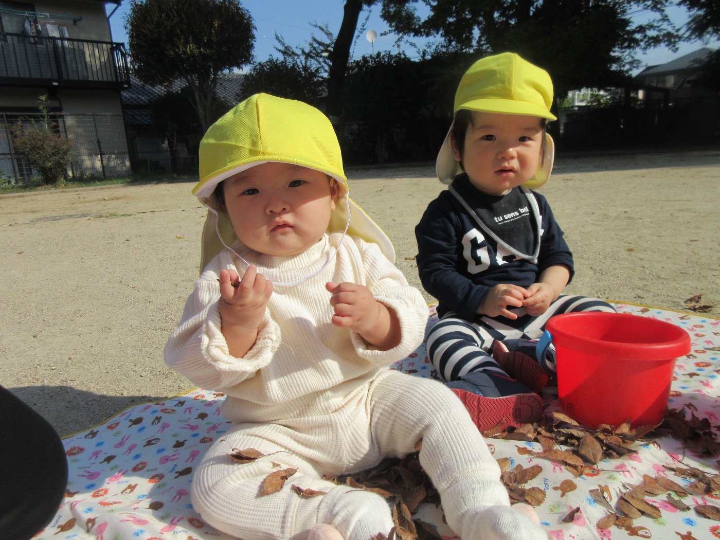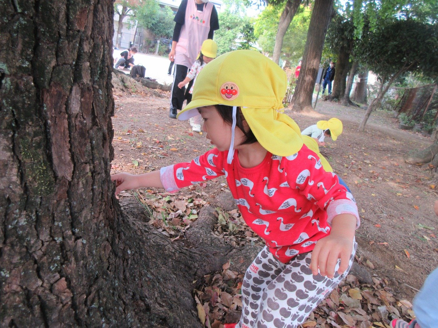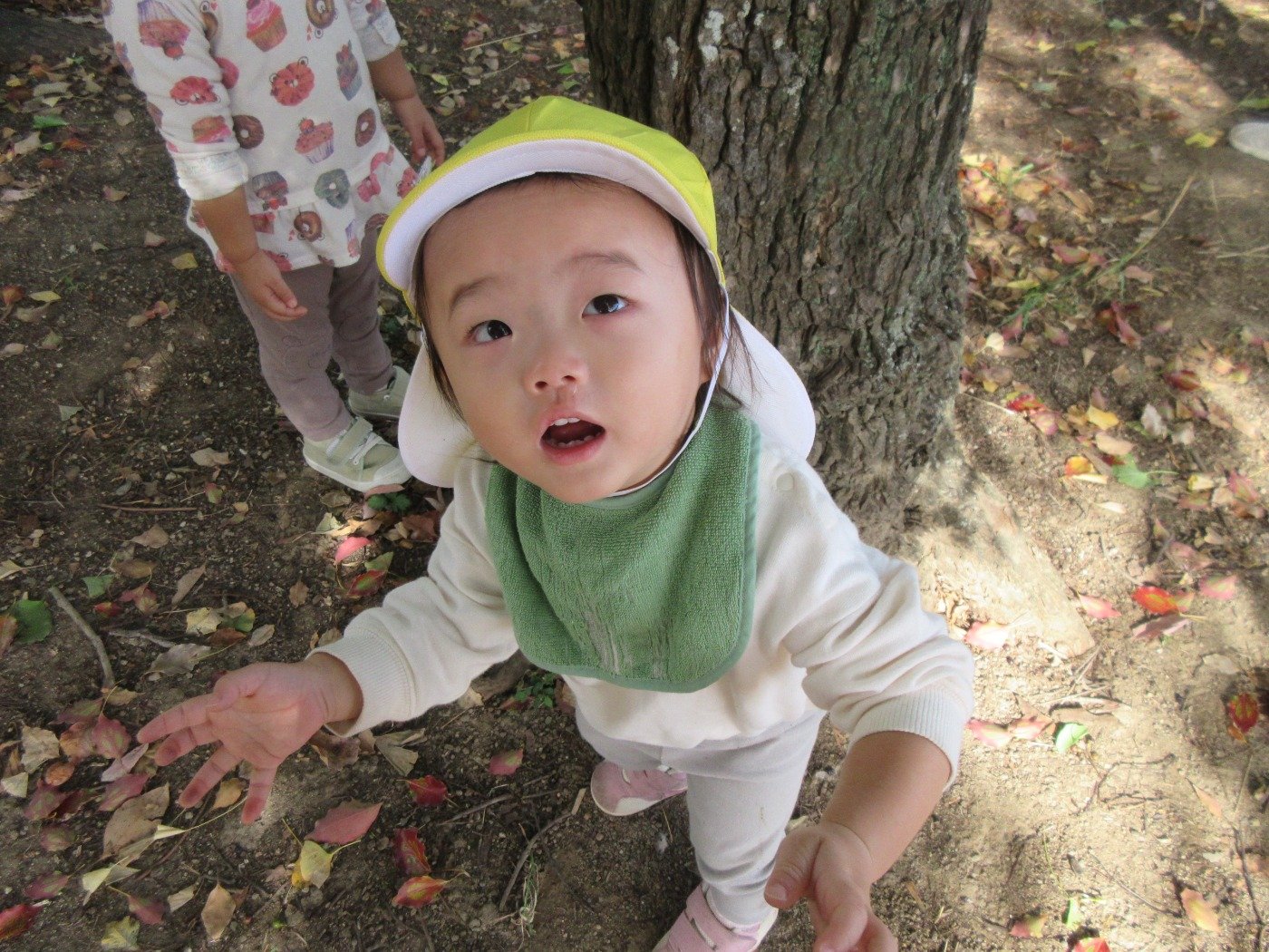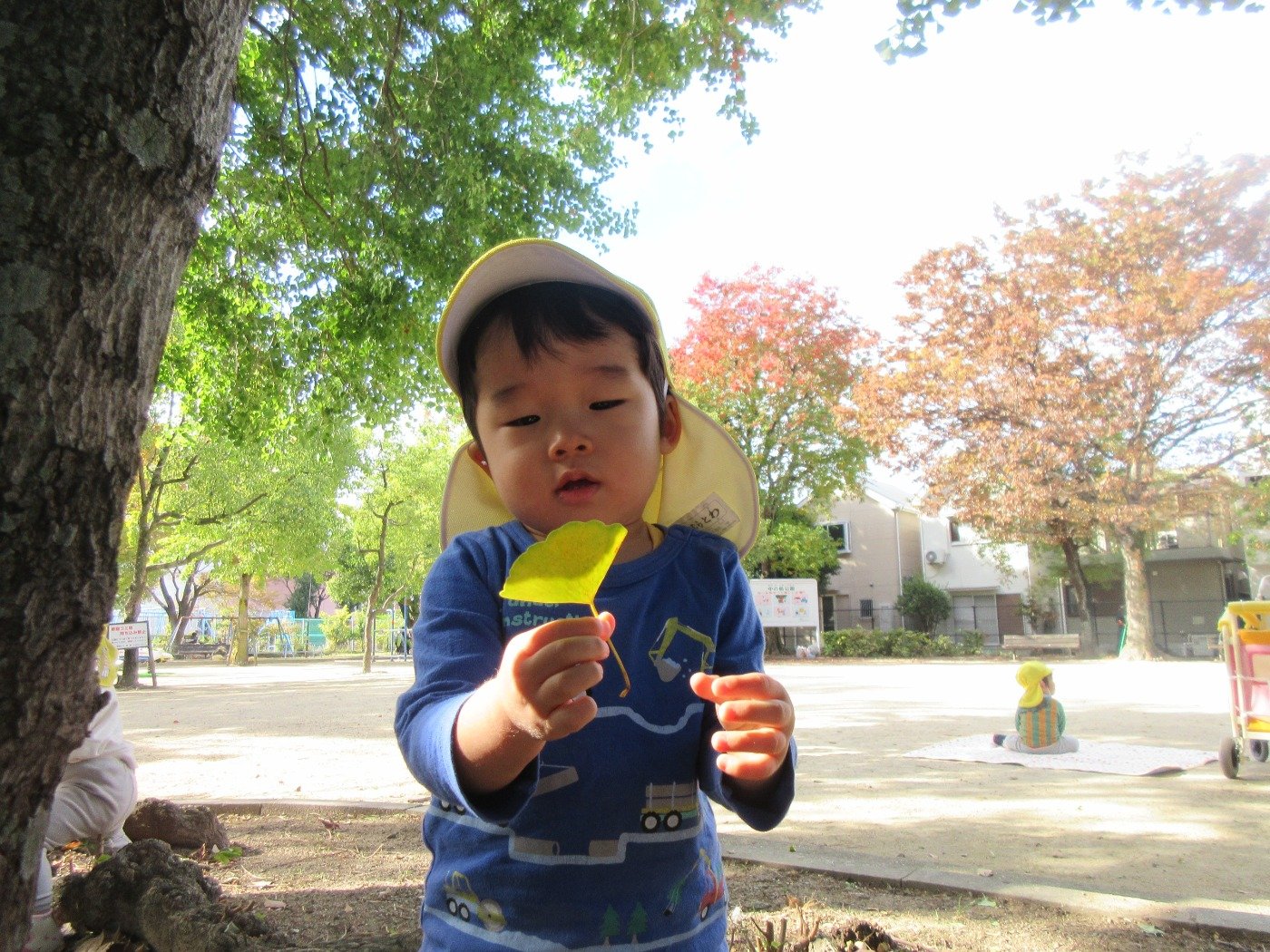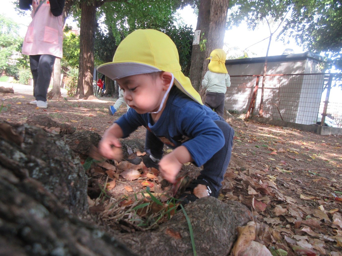 ひよこ組さんも葉っぱの感触に興味津々です。