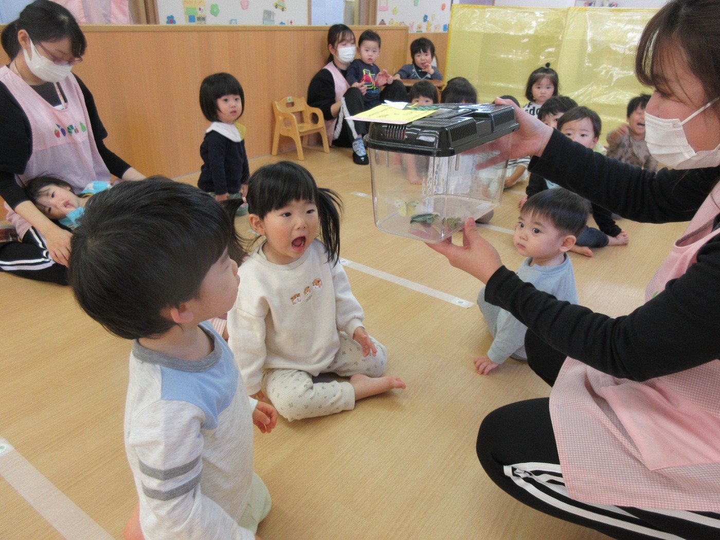 ひよこ組さんも、うさぎ組さんも興味津々です。