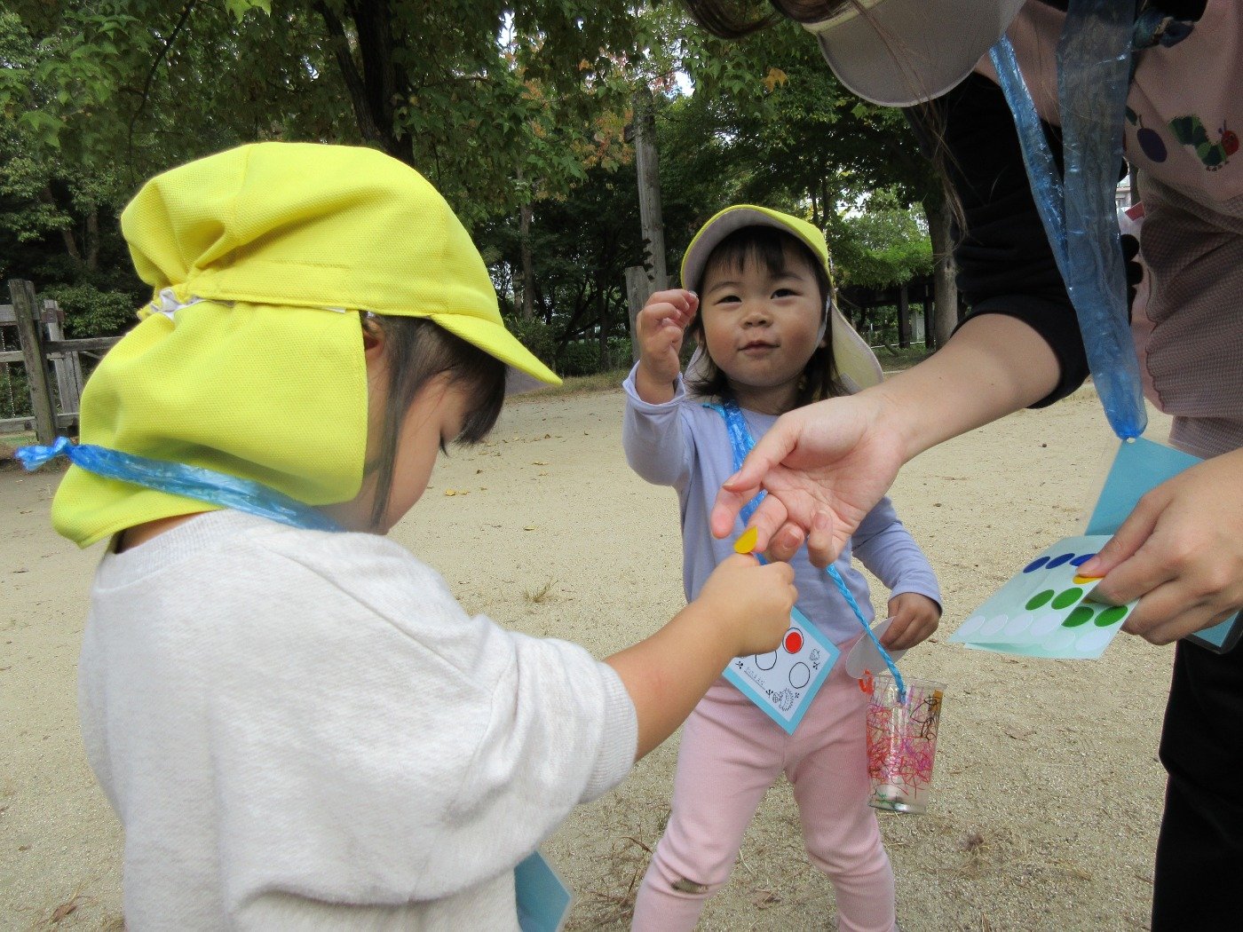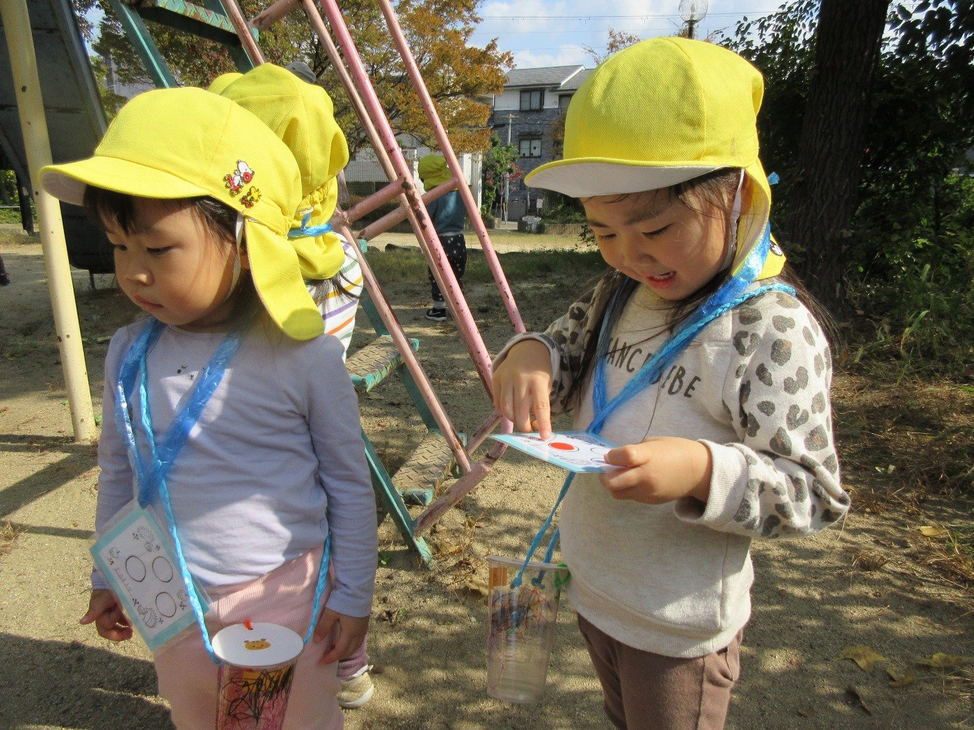 木の実や葉っぱ、虫さんなど秋を見つけるスタンプラリーにも挑戦。