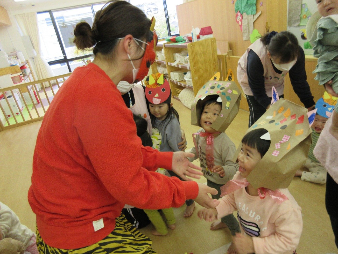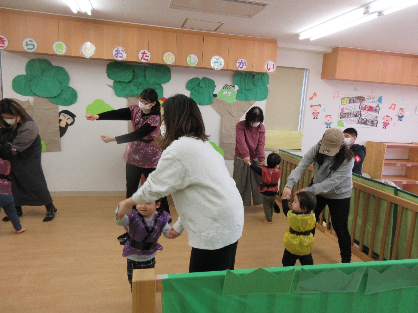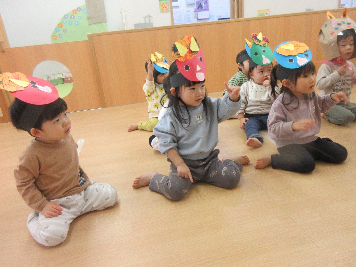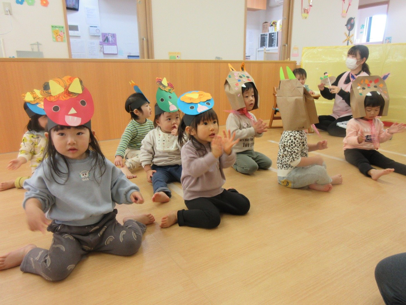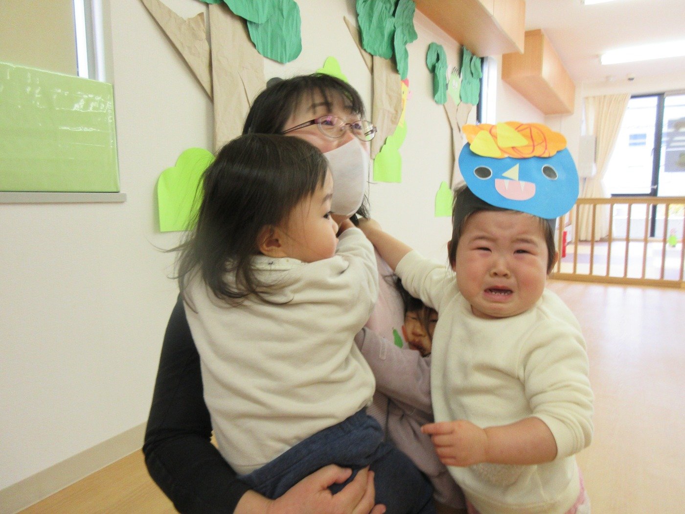 手遊び歌を歌って遊んでいると、赤鬼さんがやって来て・・・
