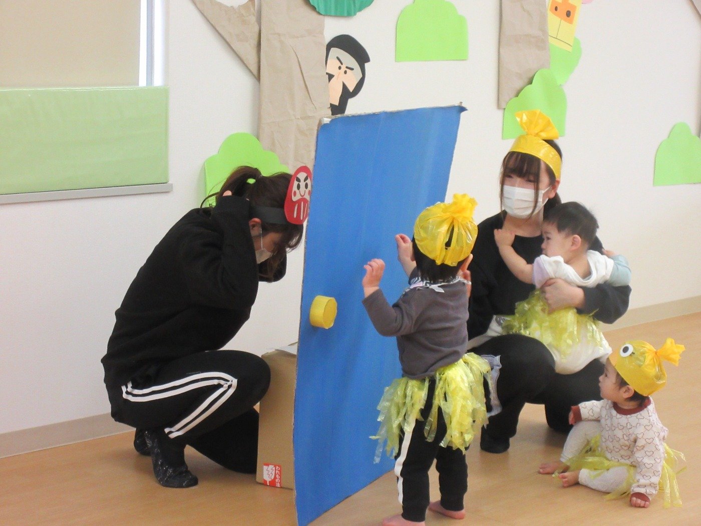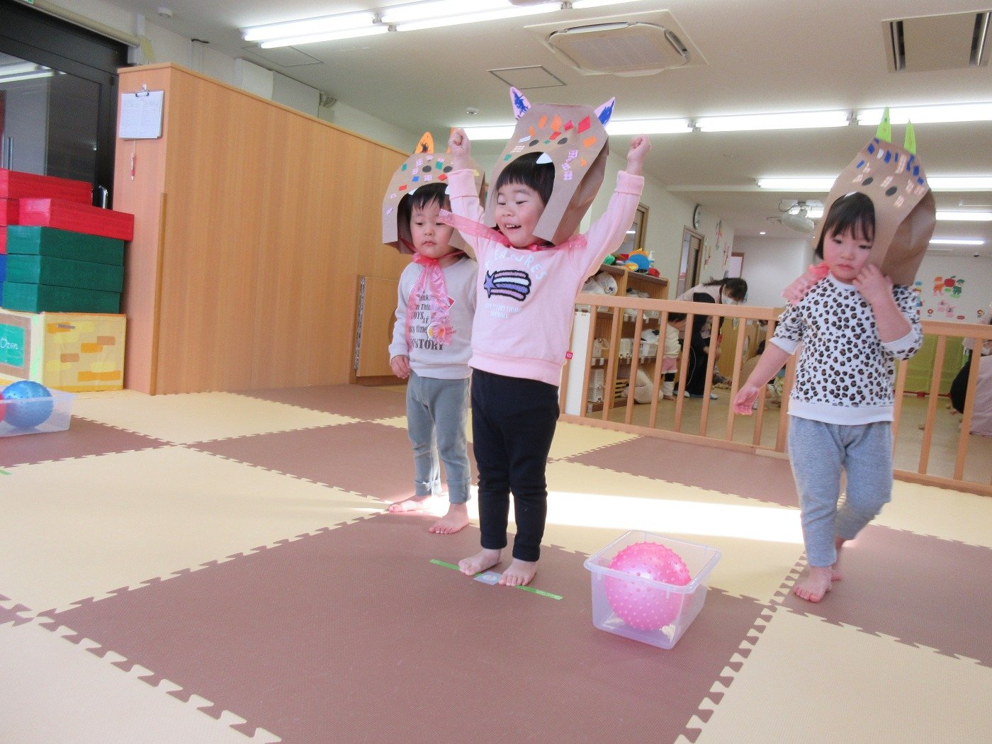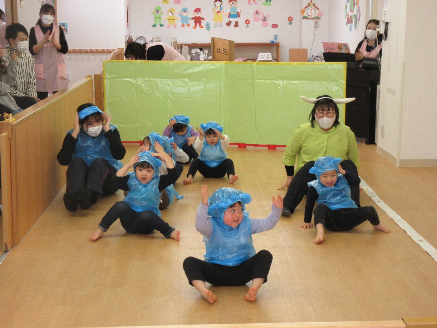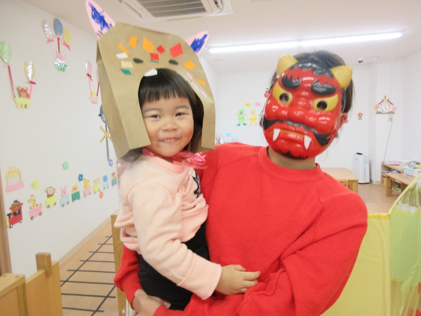 手遊び歌を歌って遊んでいると、赤鬼さんがやって来て・・・