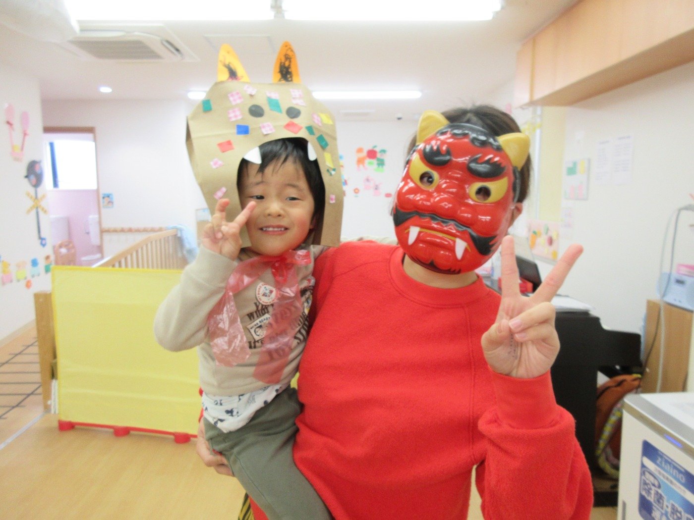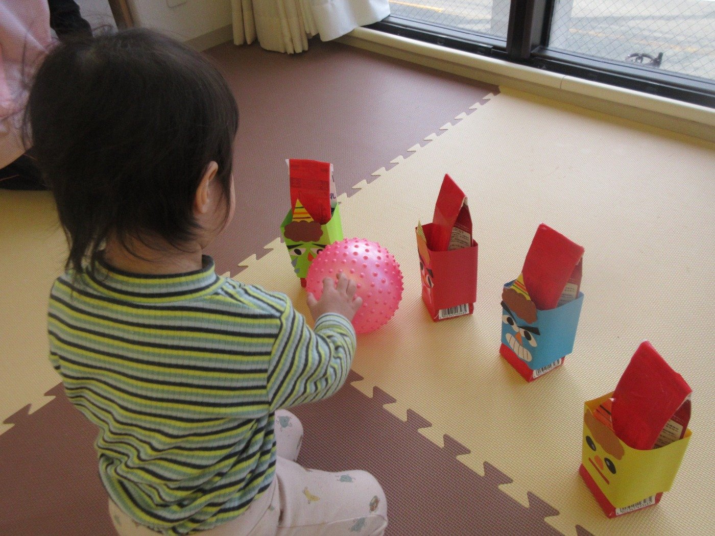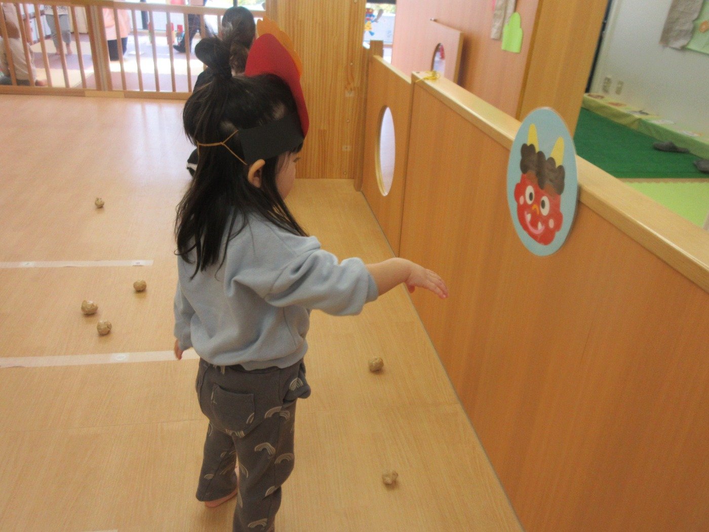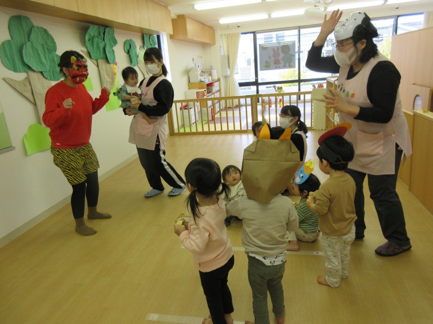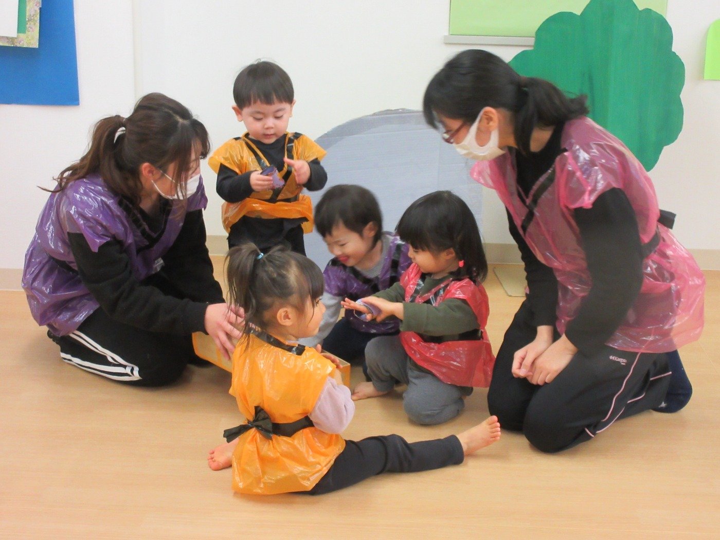 手遊び歌を歌って遊んでいると、赤鬼さんがやって来て・・・