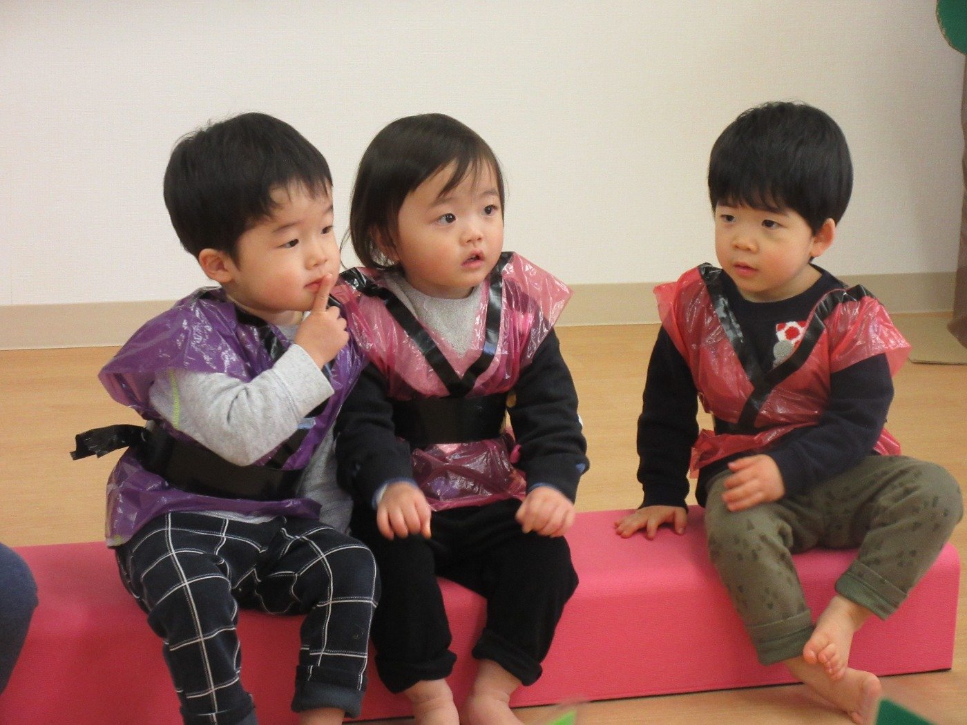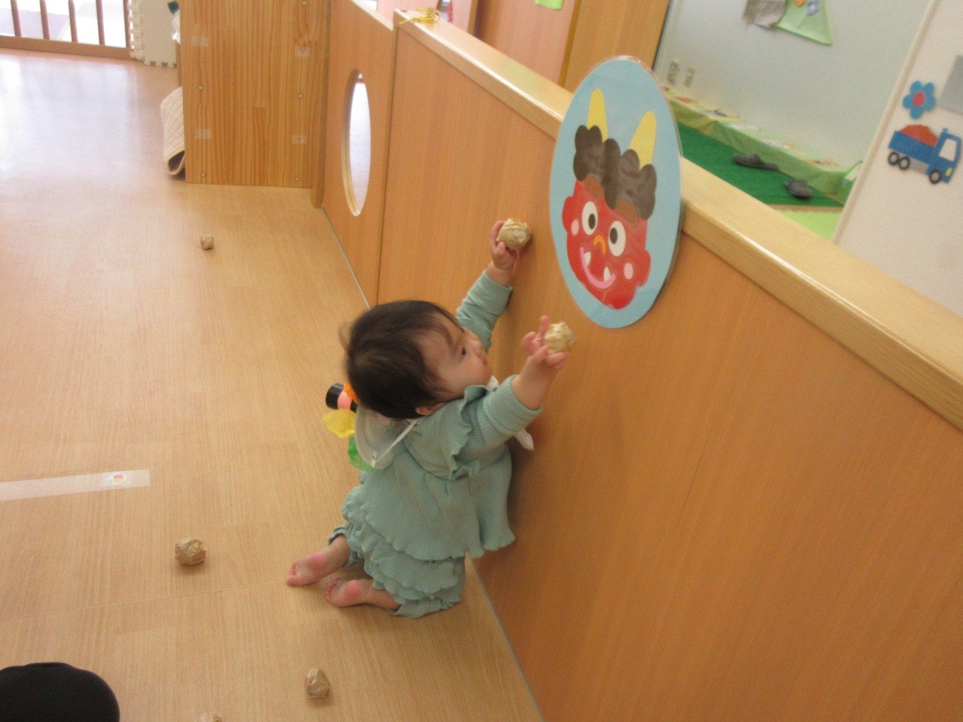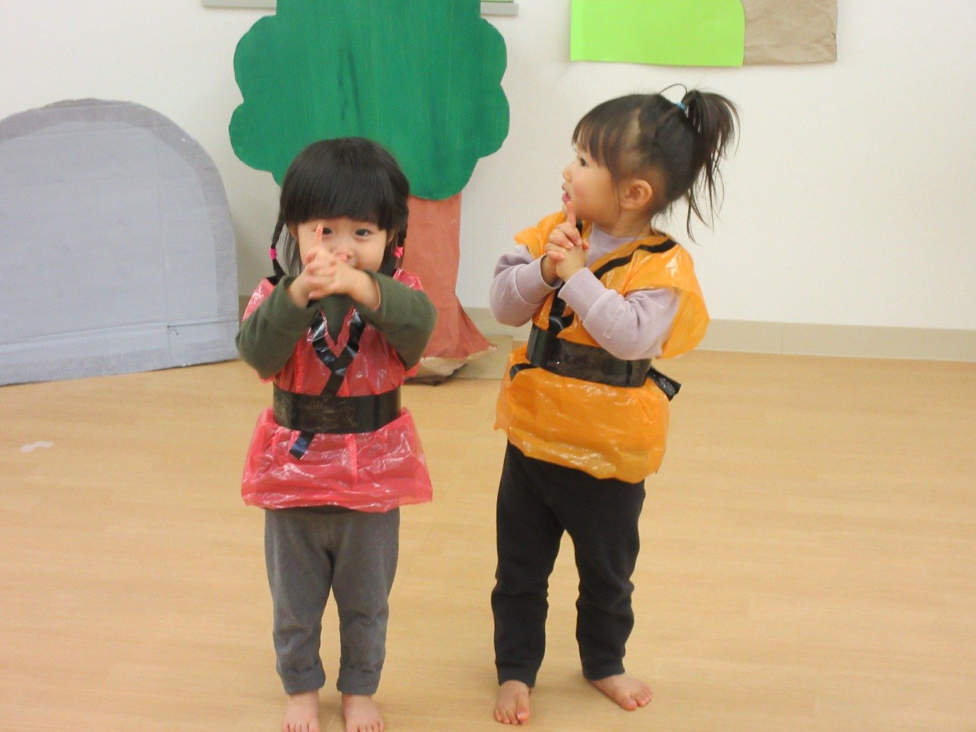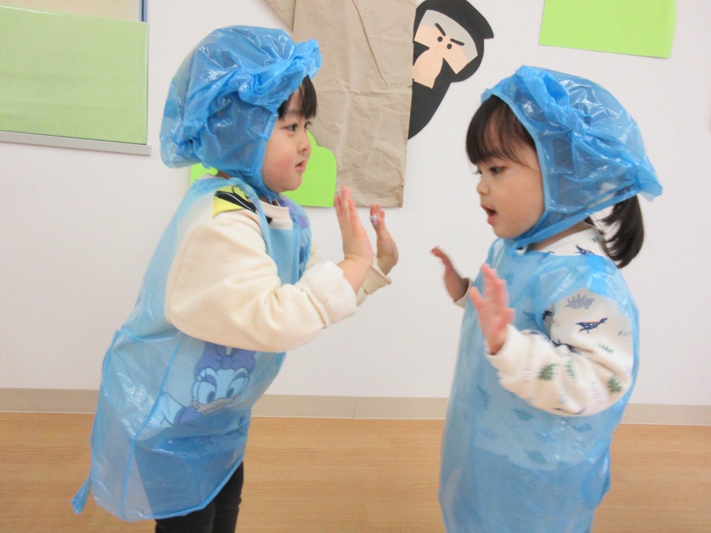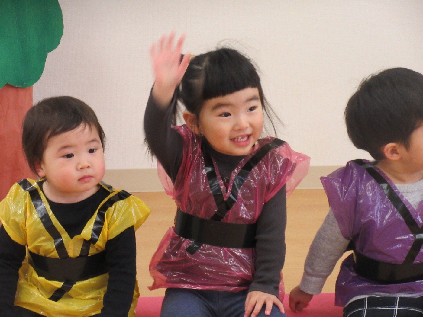 手遊び歌を歌って遊んでいると、赤鬼さんがやって来て・・・