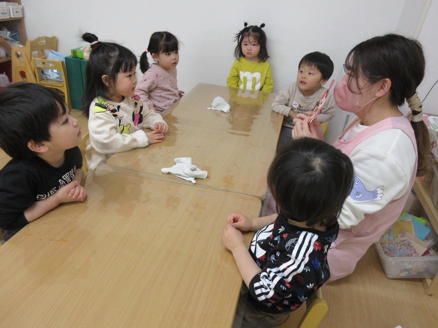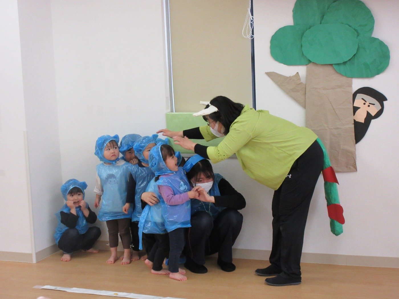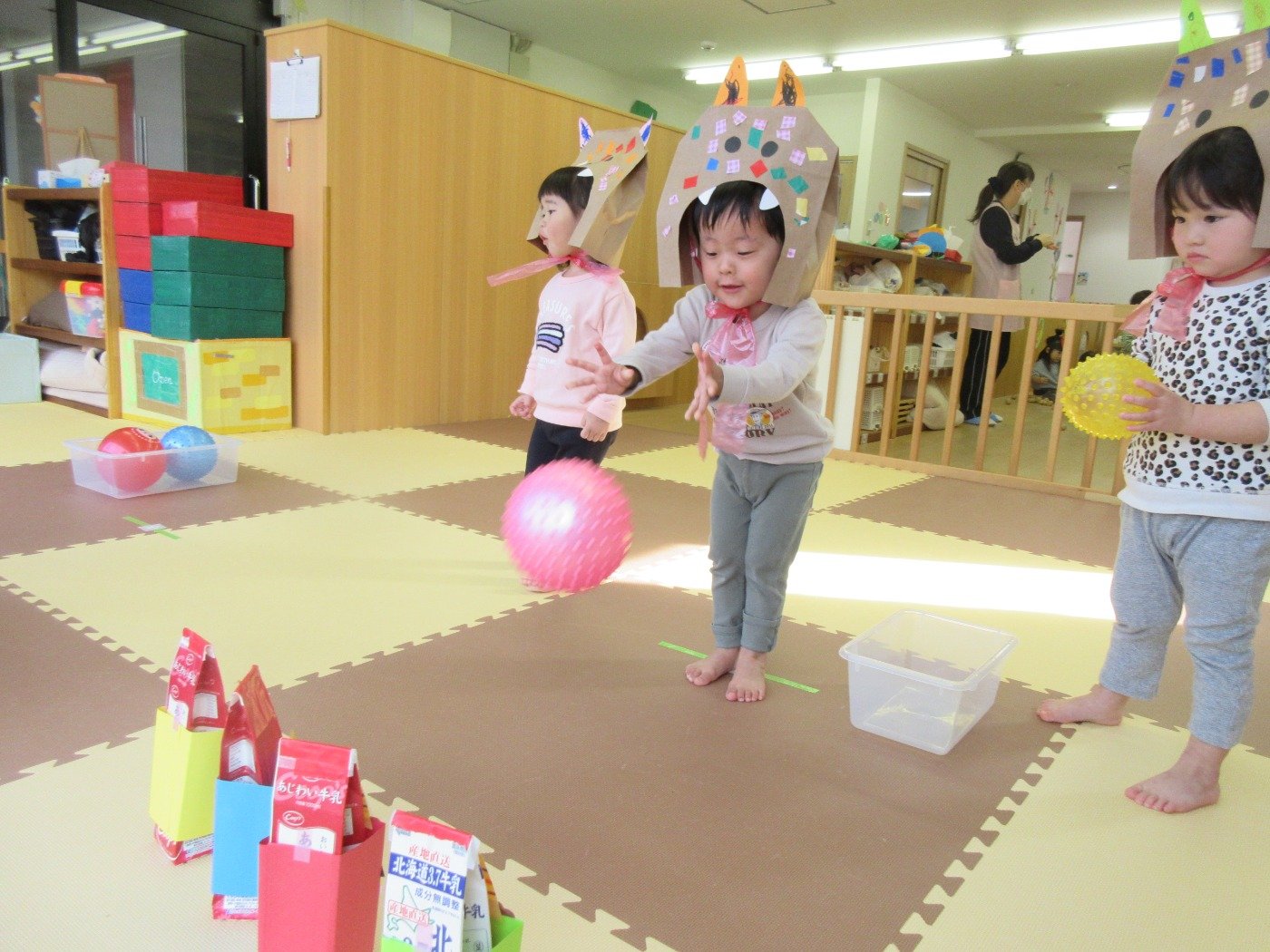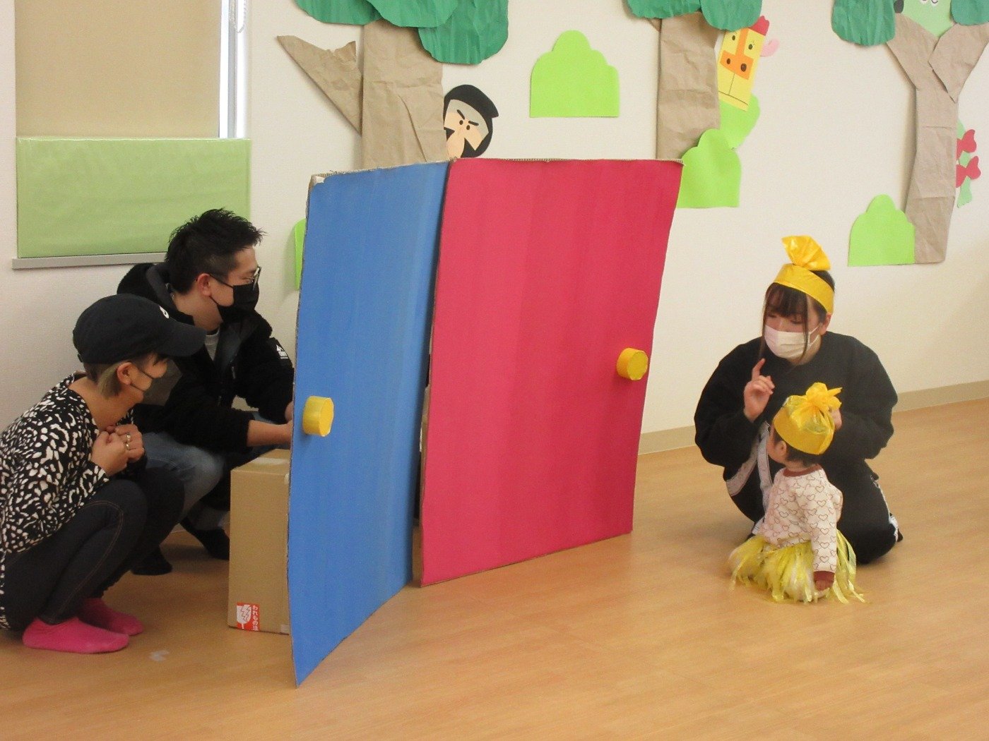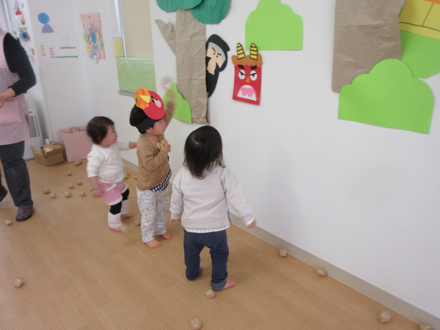 手遊び歌を歌って遊んでいると、赤鬼さんがやって来て・・・