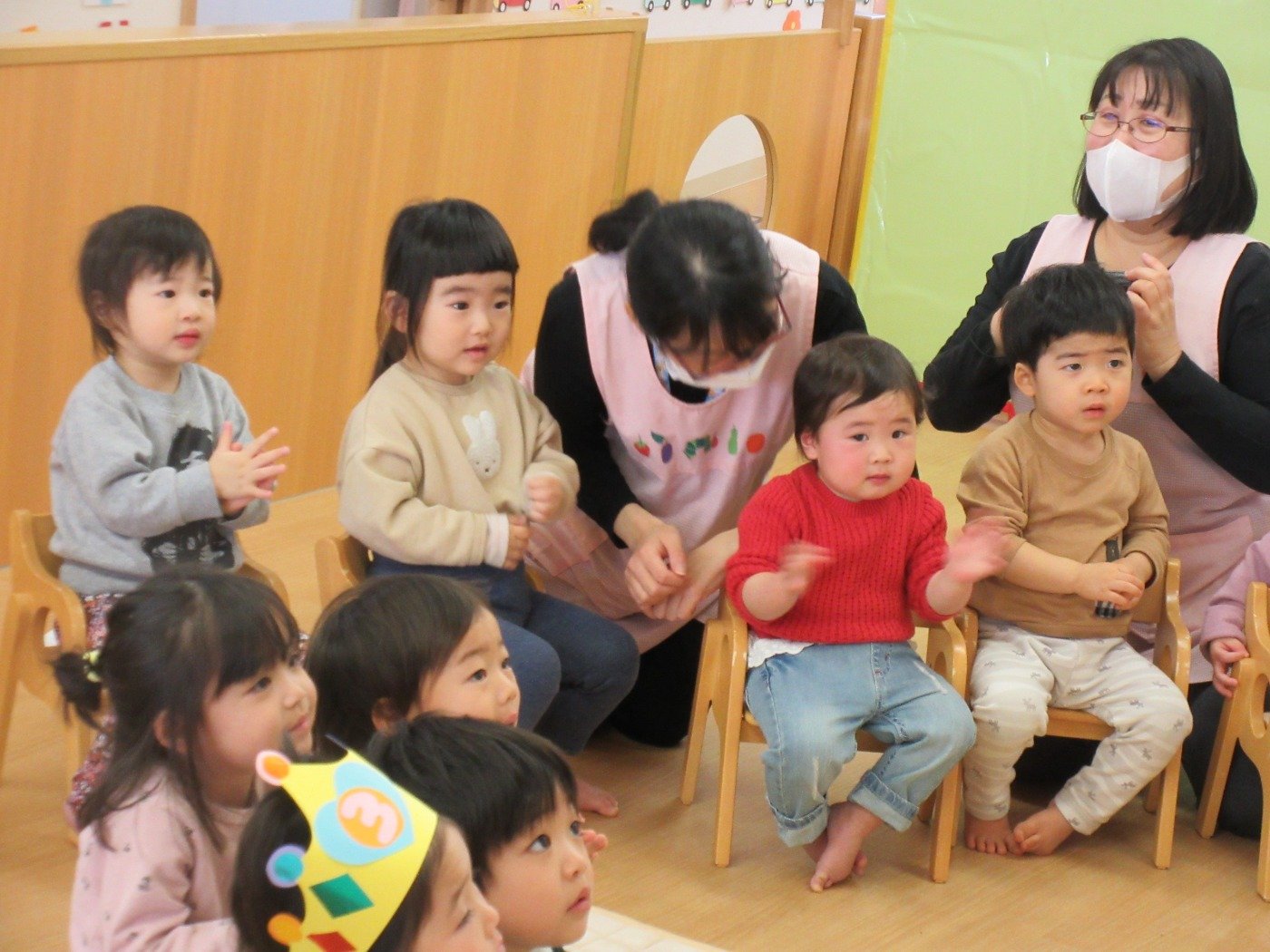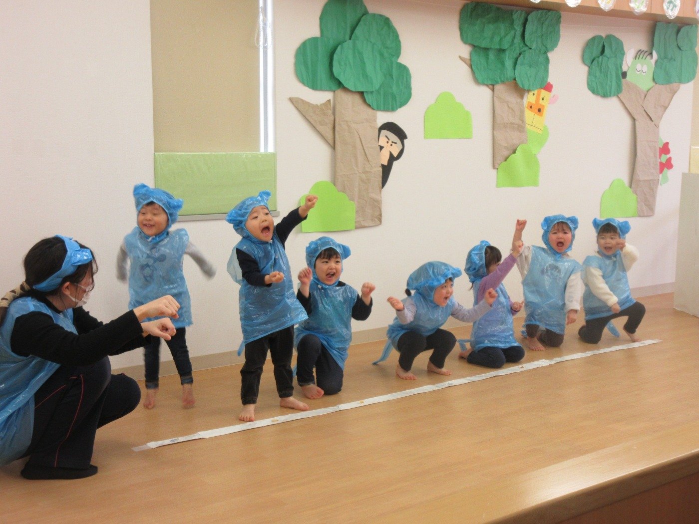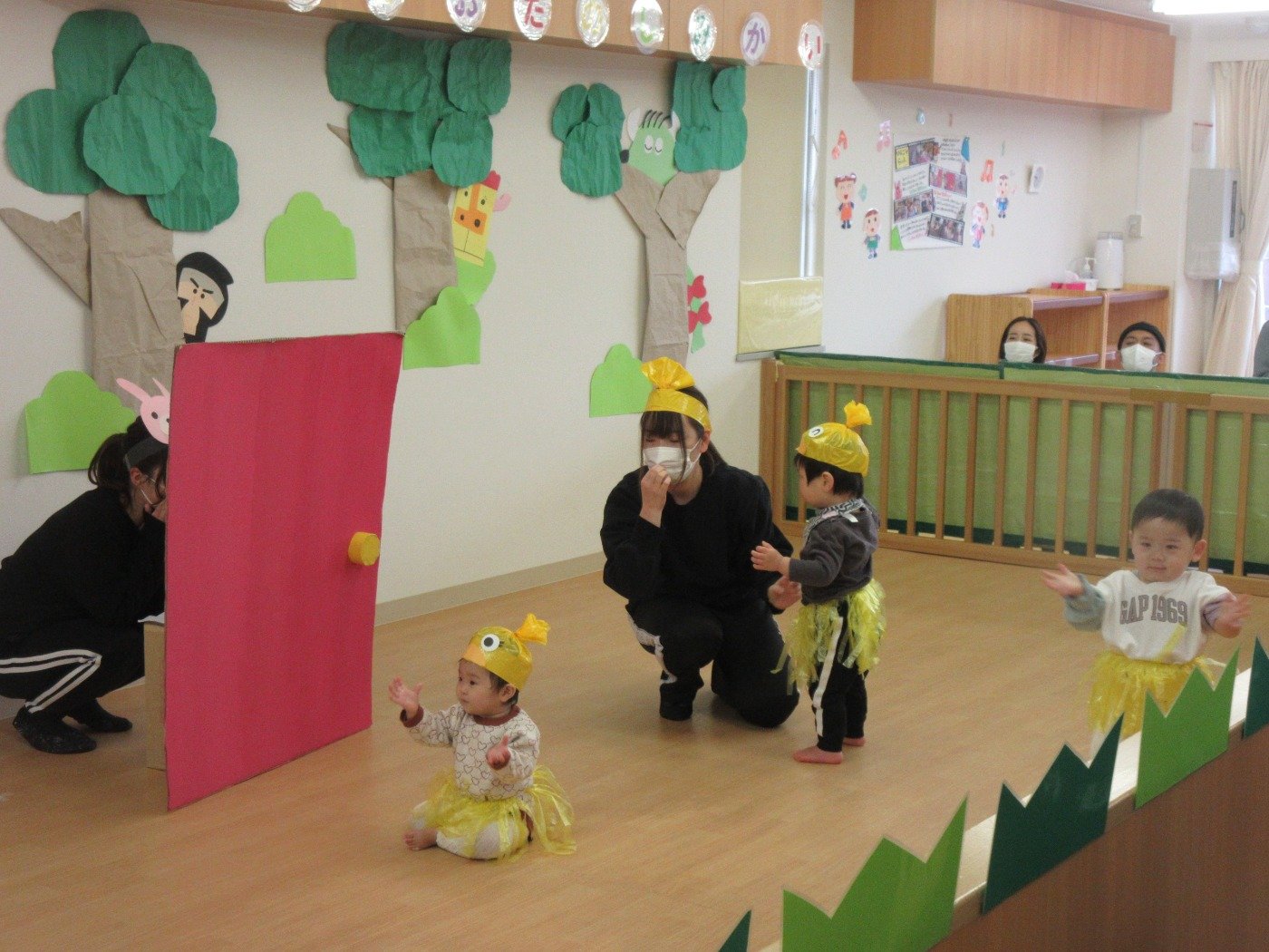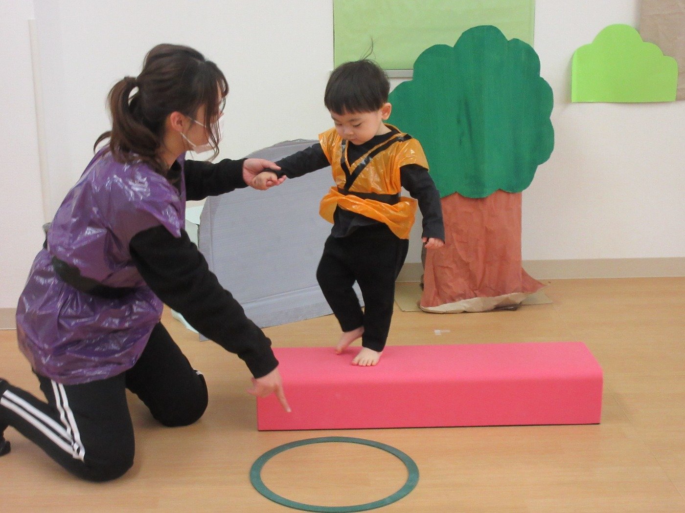 手遊び歌を歌って遊んでいると、赤鬼さんがやって来て・・・