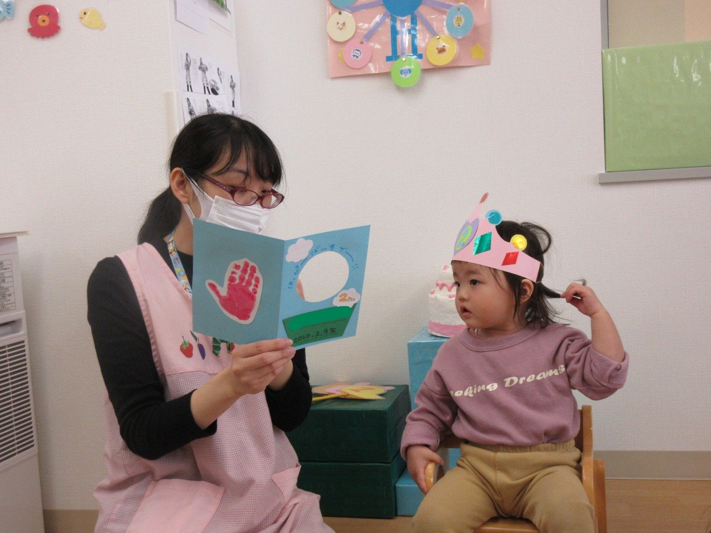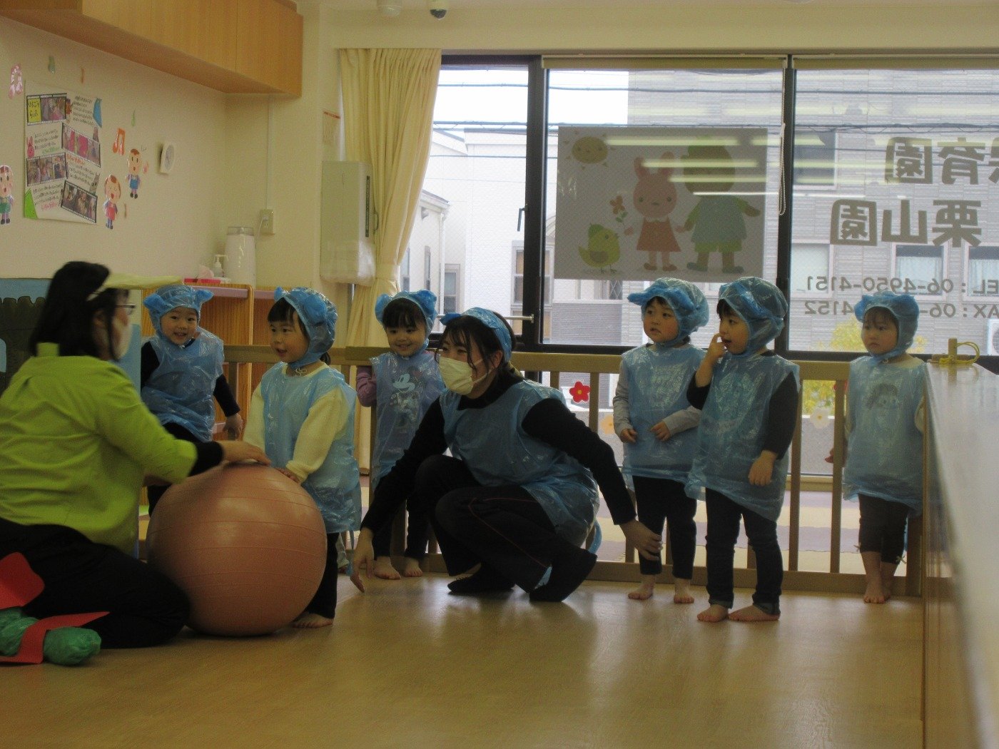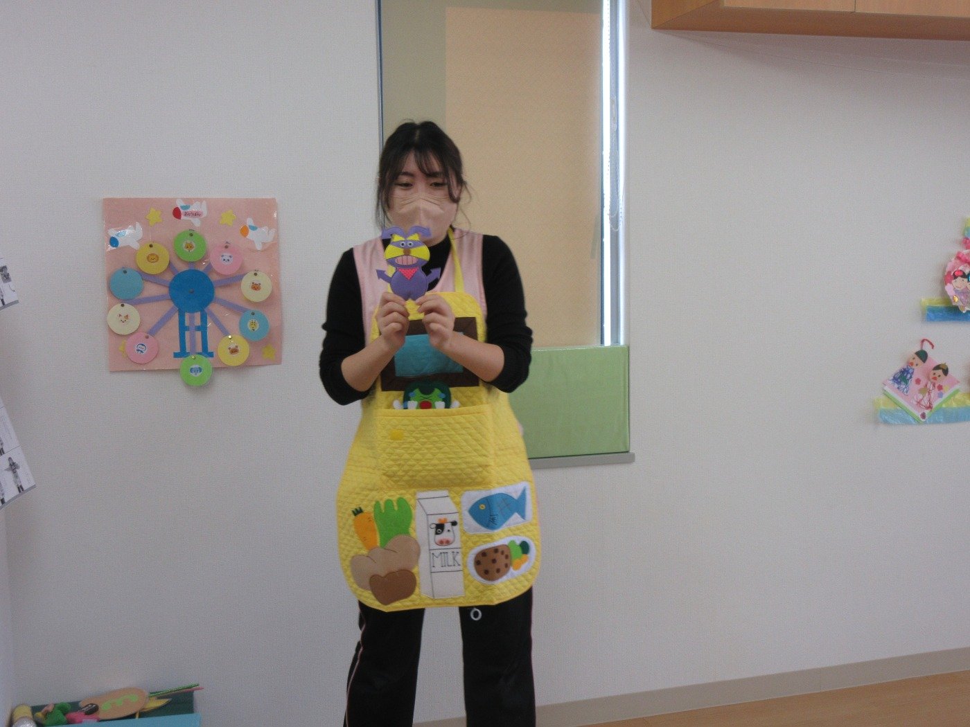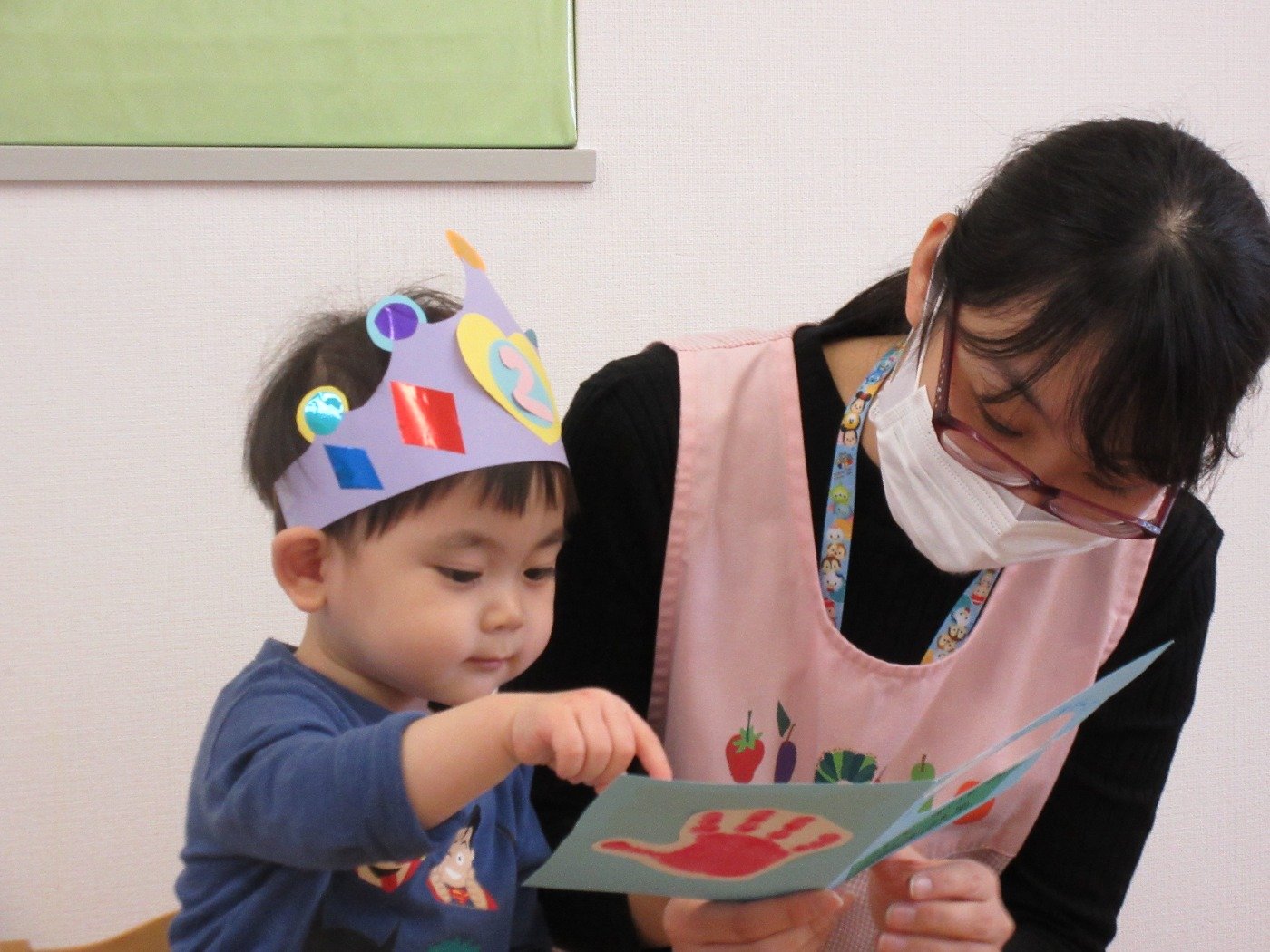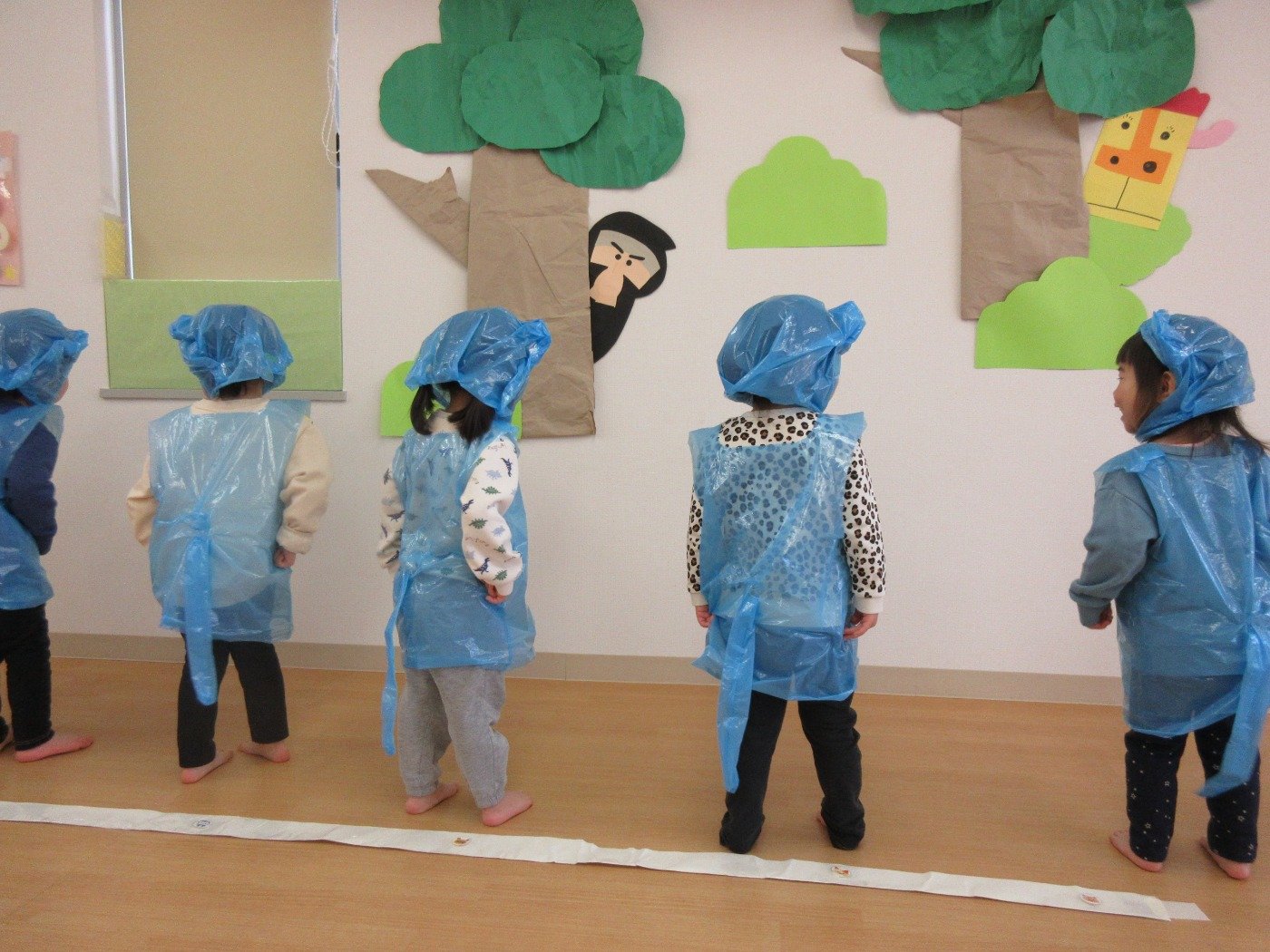 手遊び歌を歌って遊んでいると、赤鬼さんがやって来て・・・
