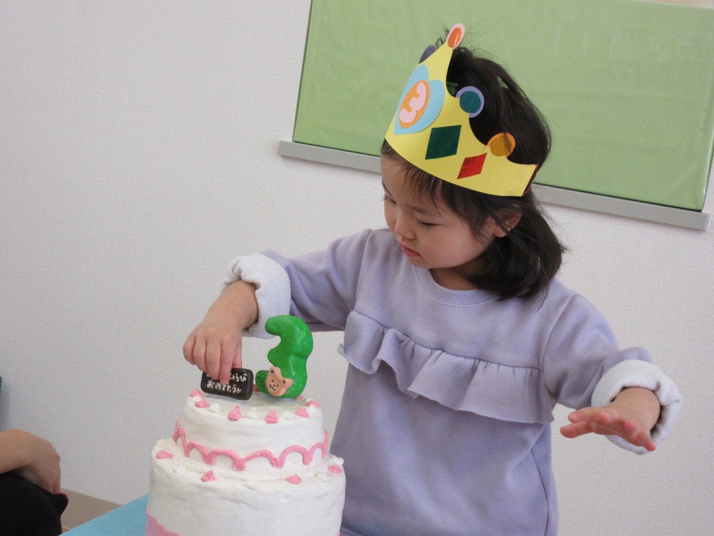 でも、ケーキにデコレーションする時には、可愛い笑顔を見せてくれました。