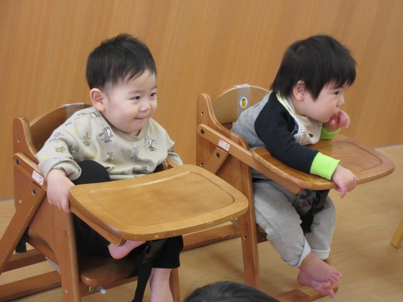 ひよこ組さんは、つかまり立ちが上手になったね。