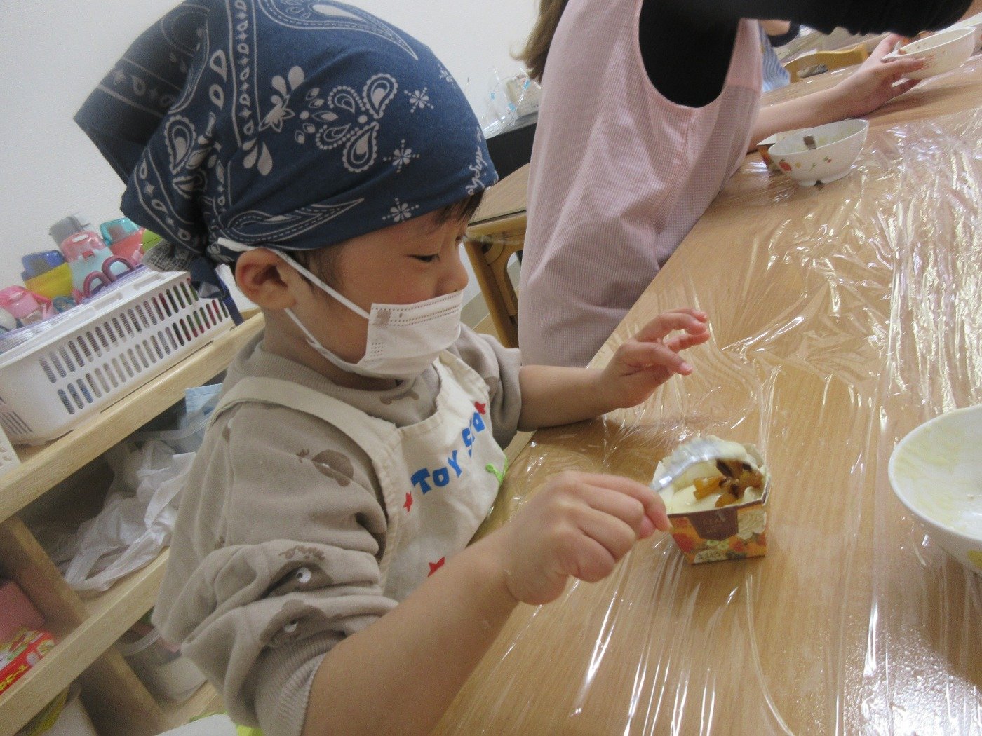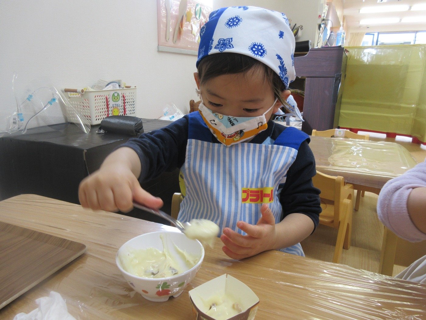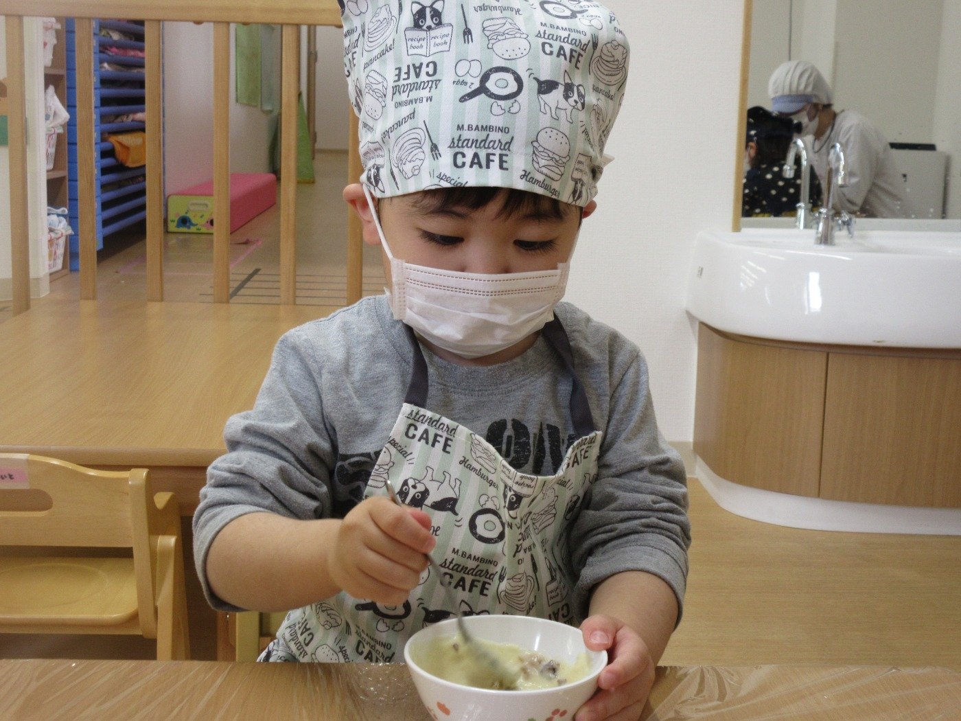 生地を混ぜて…中に好きな果物を選んで入れます。