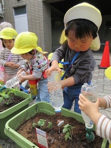 毎日くま組さんが「大きくなぁれ!おいしくなぁれ!」とお水をあげてくれます。