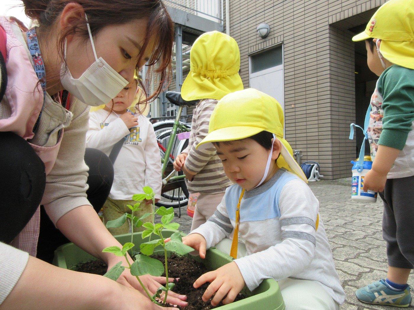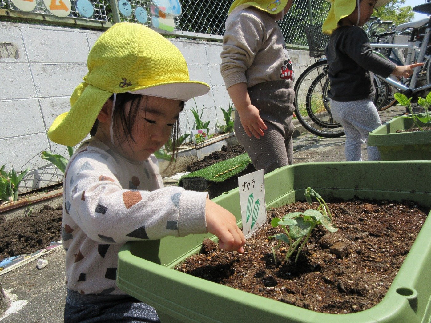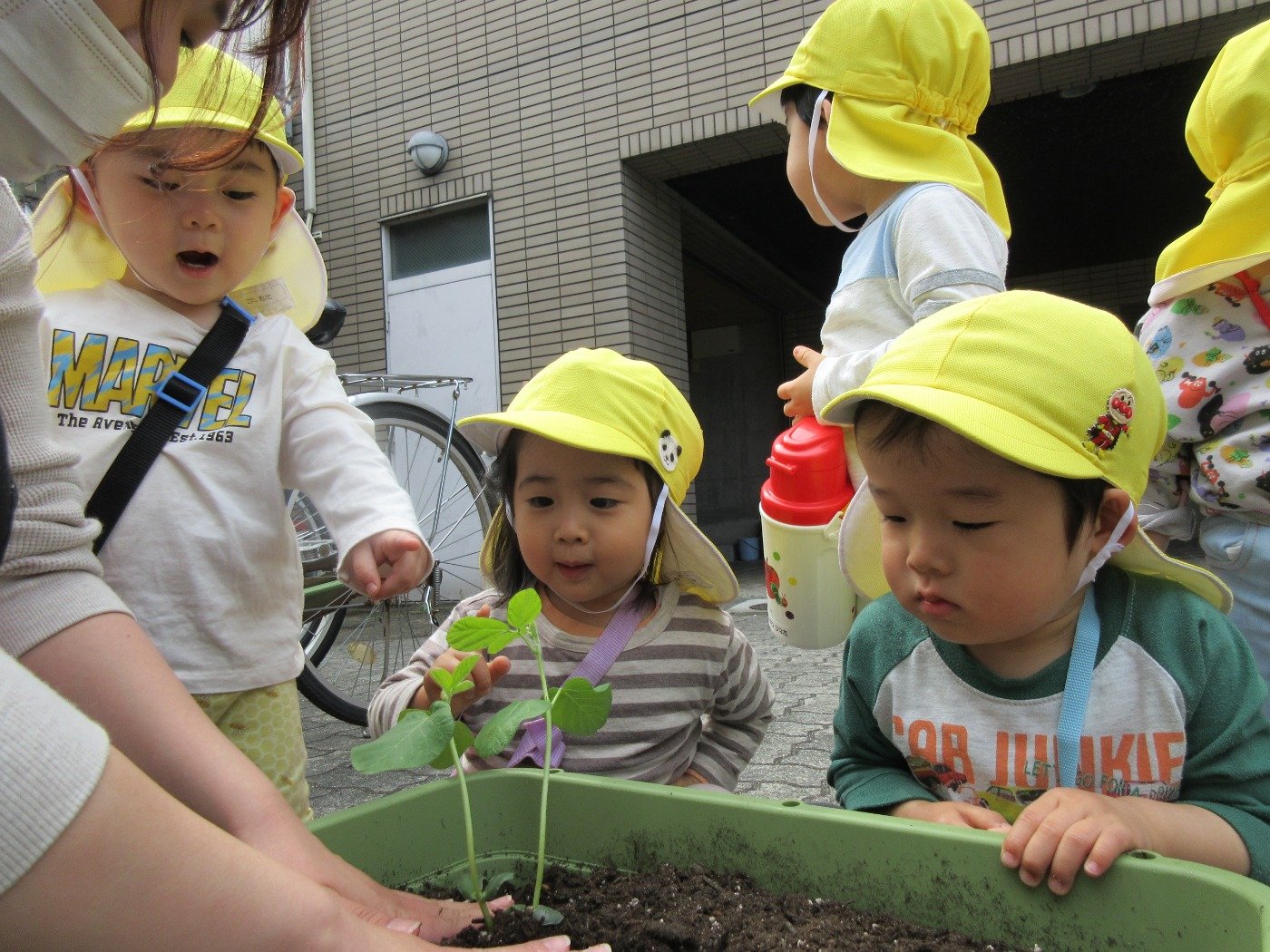 植物の育ちを好奇心いっぱいに見ている子どもたちの表情を見るのは