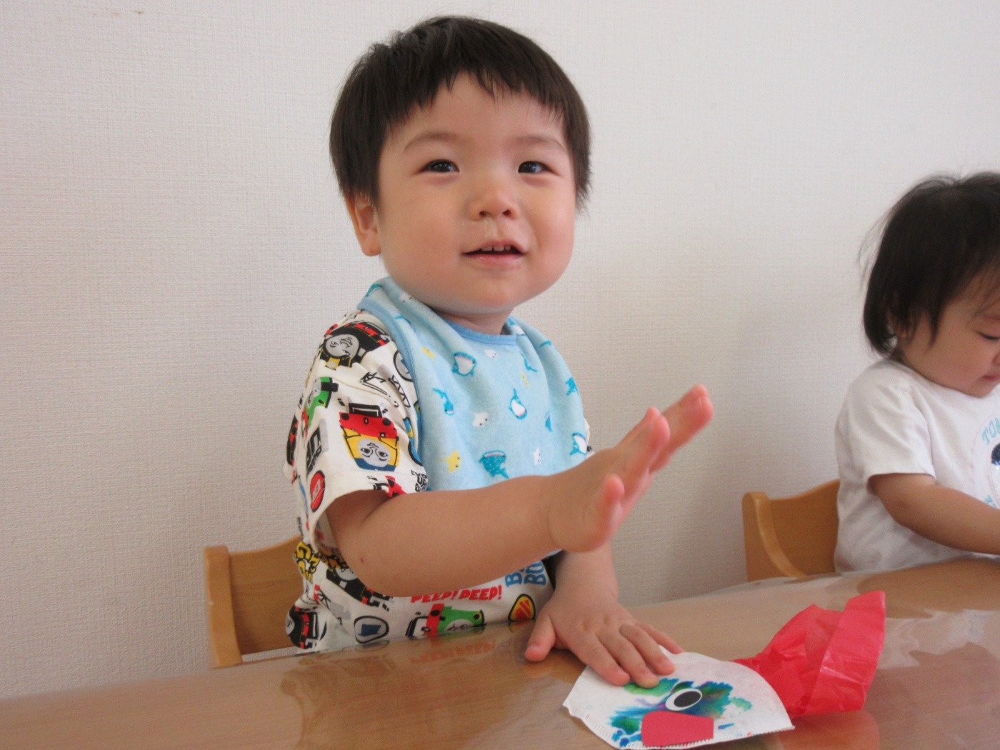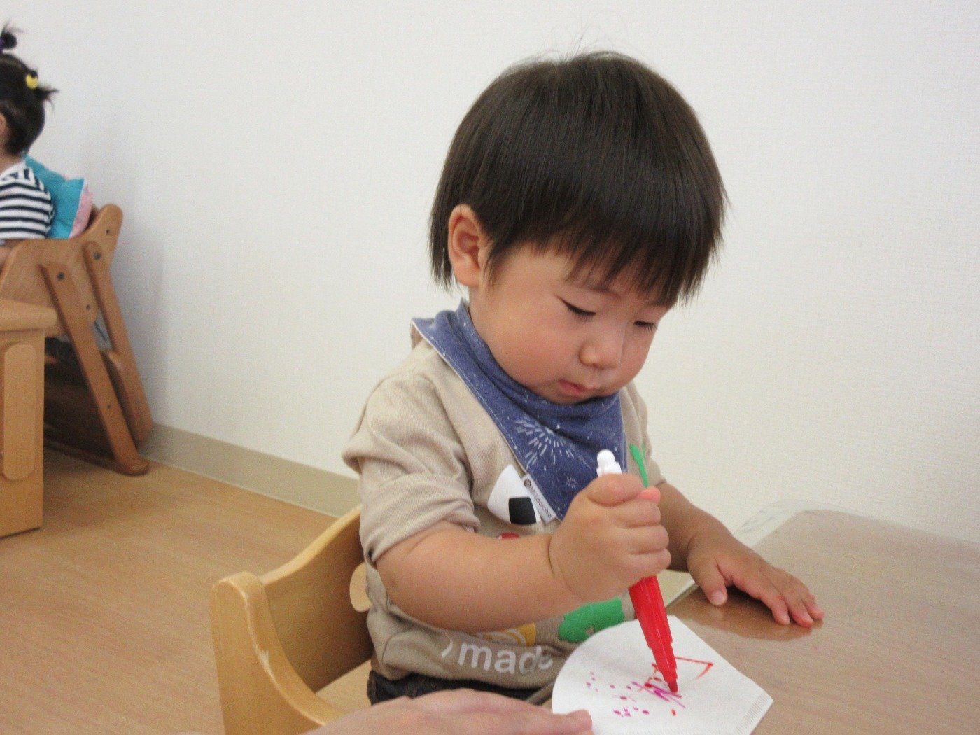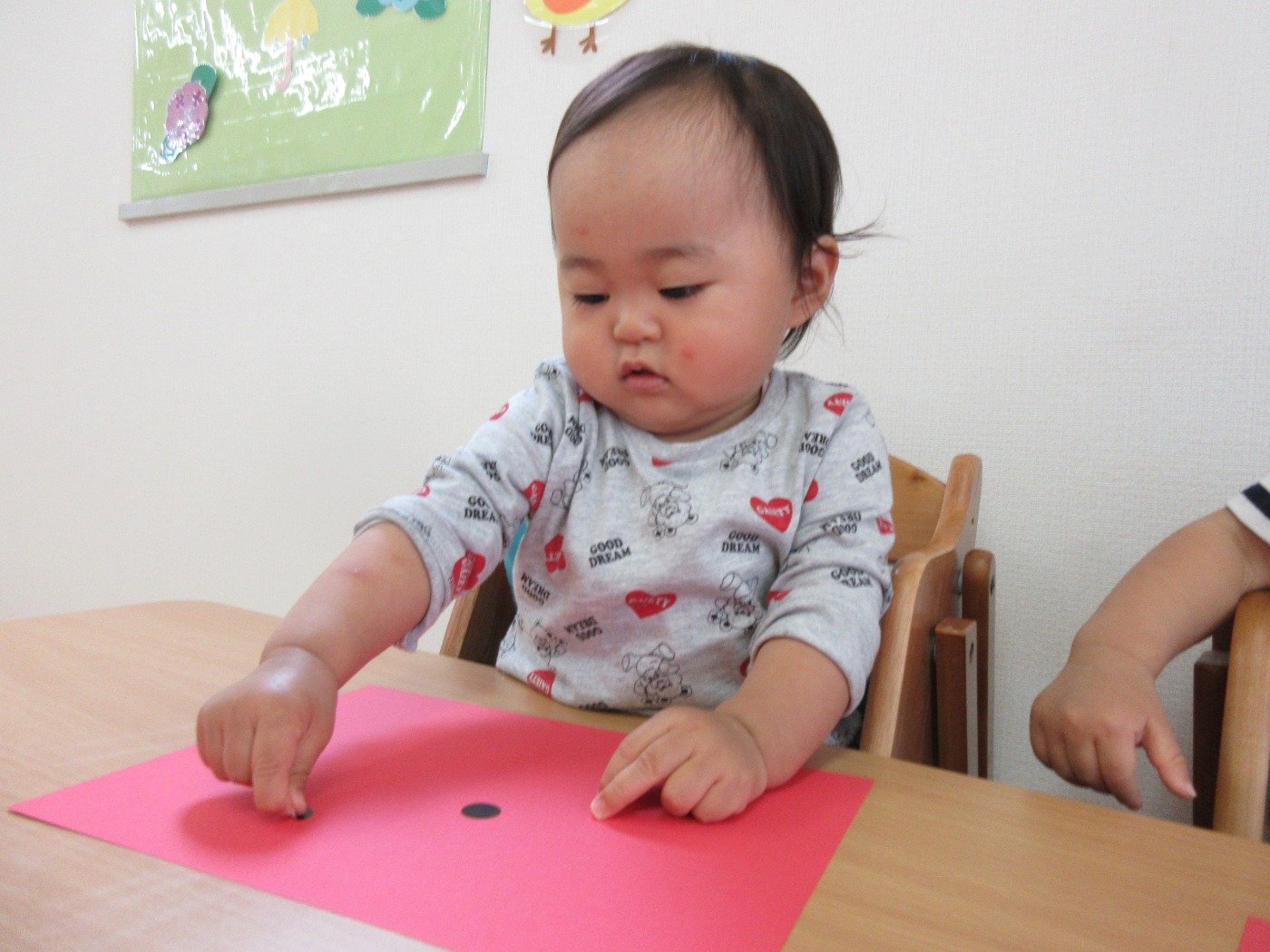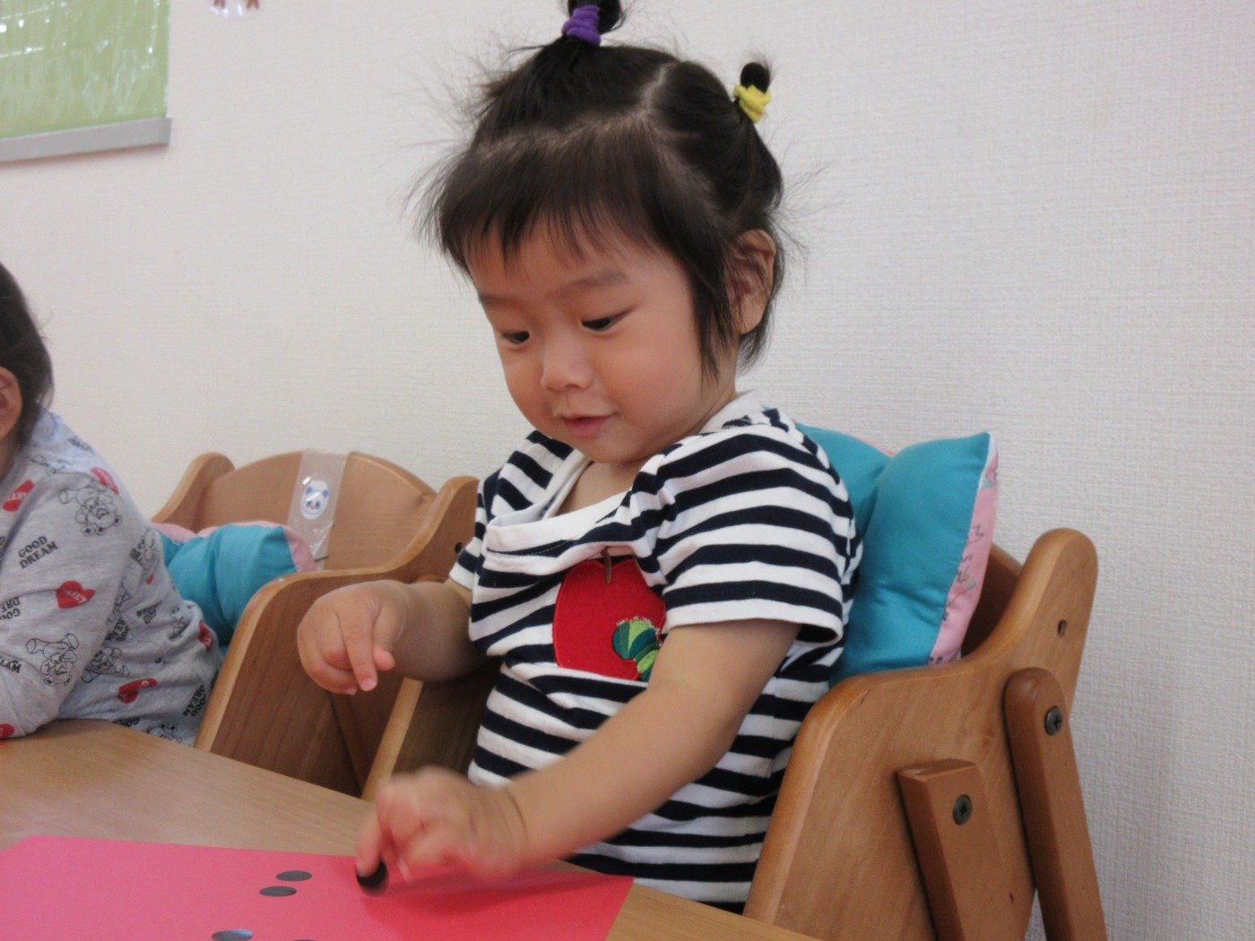小さな指でシールを貼ったり、お絵描きしたり…