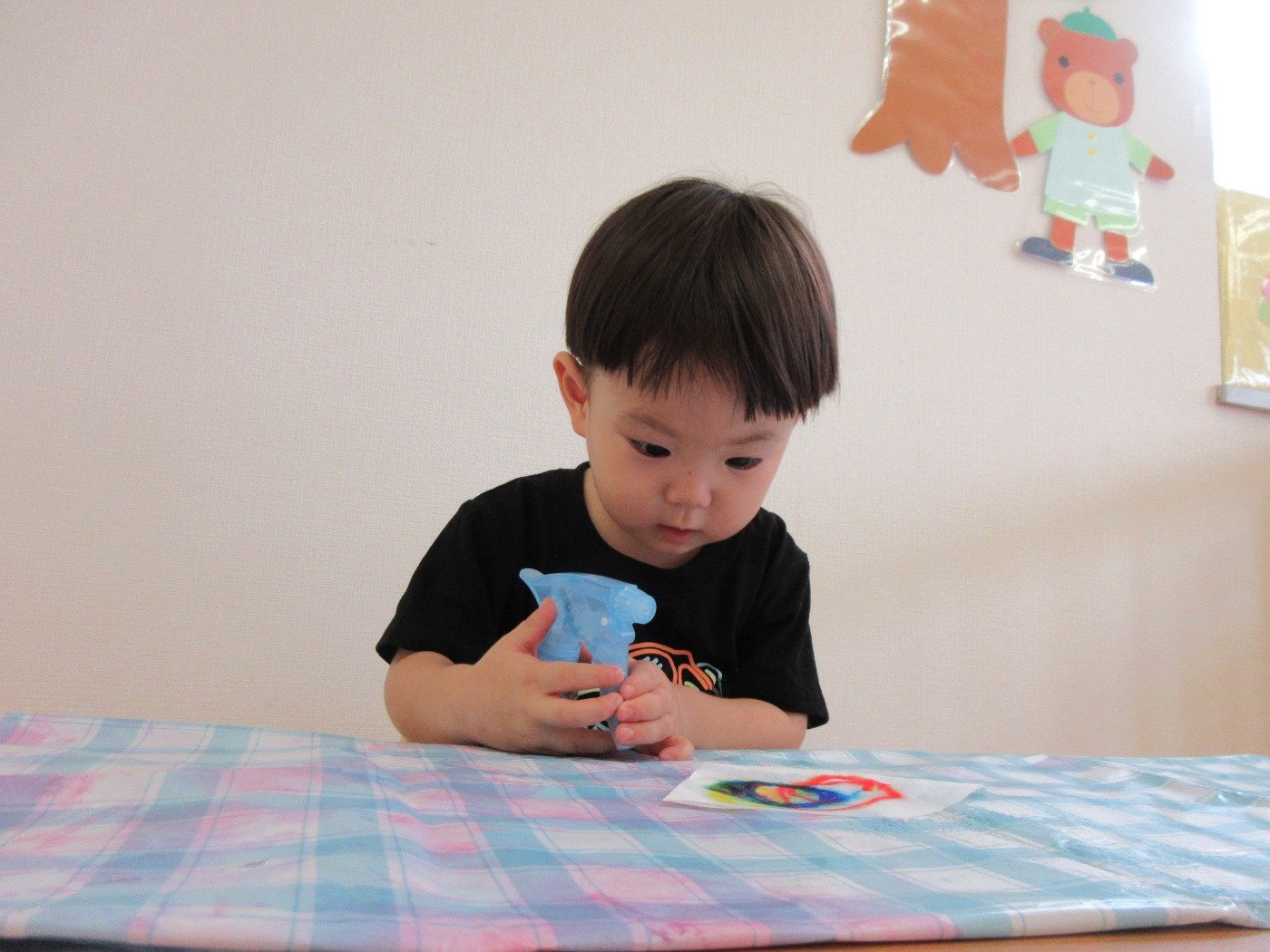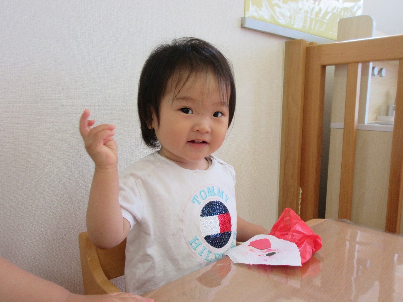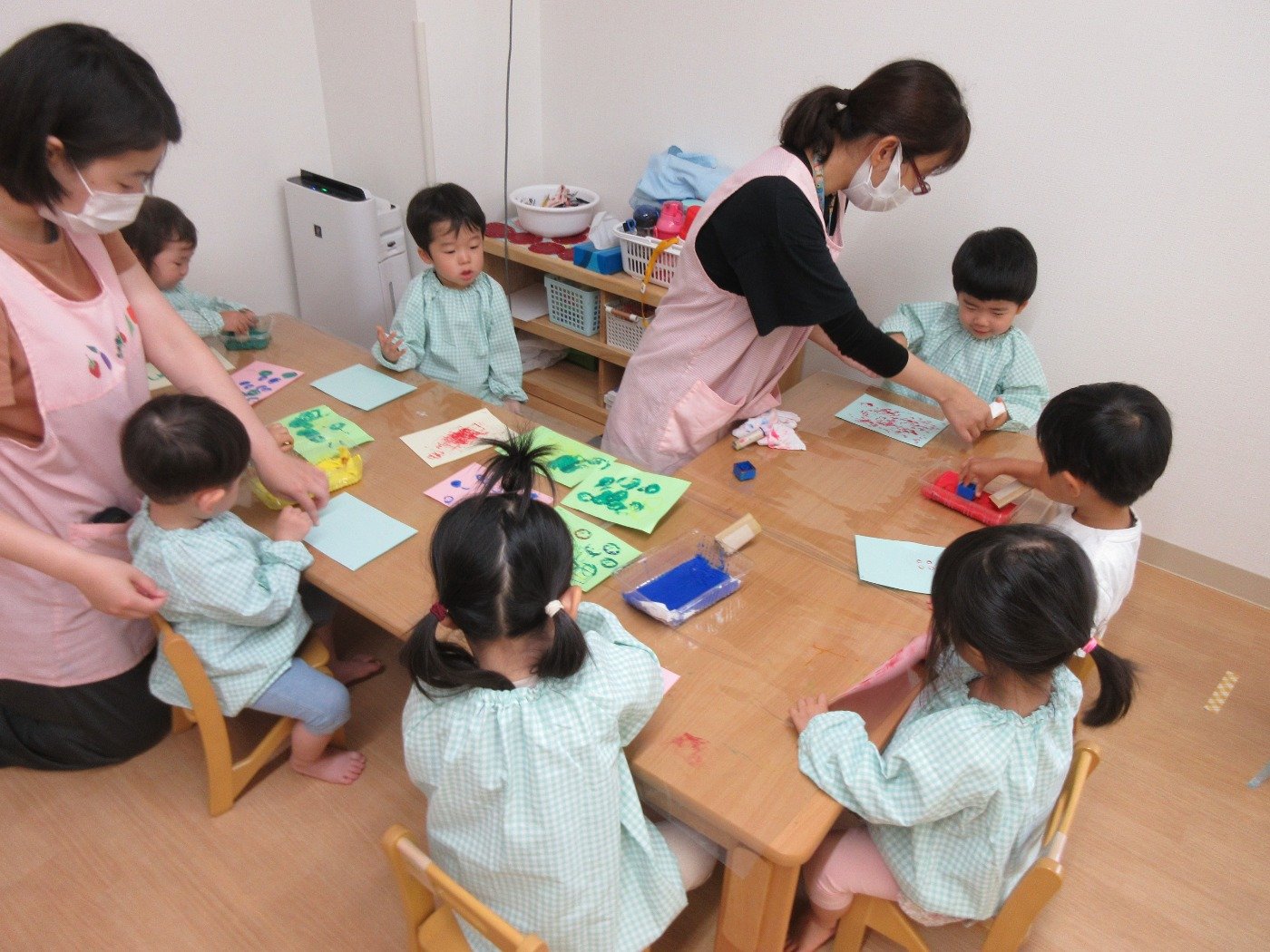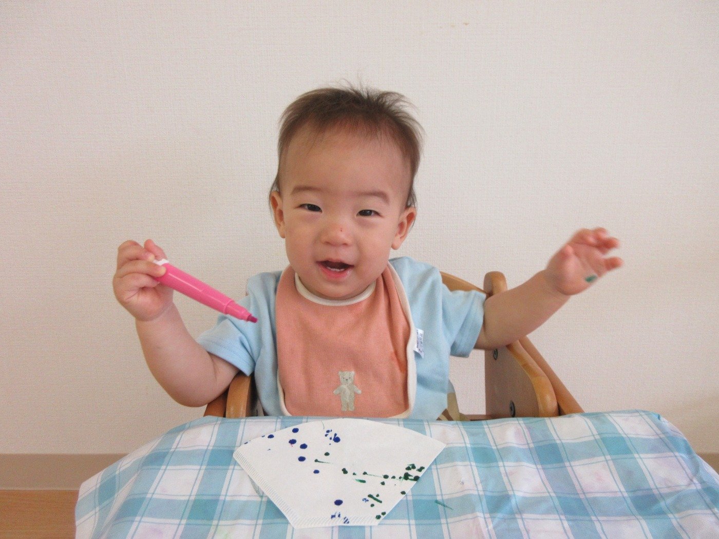 小さな指でシールを貼ったり、お絵描きしたり…