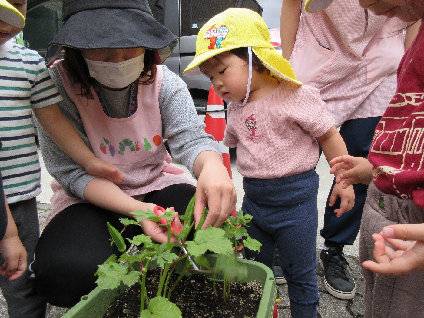 毎日くま組さんが、お世話をしてくれているオクラと枝豆♪