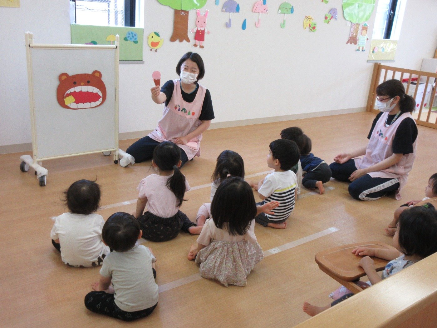歯磨きのお話や時計のお話、小さな子どもたちには