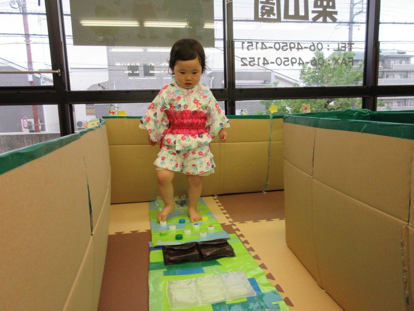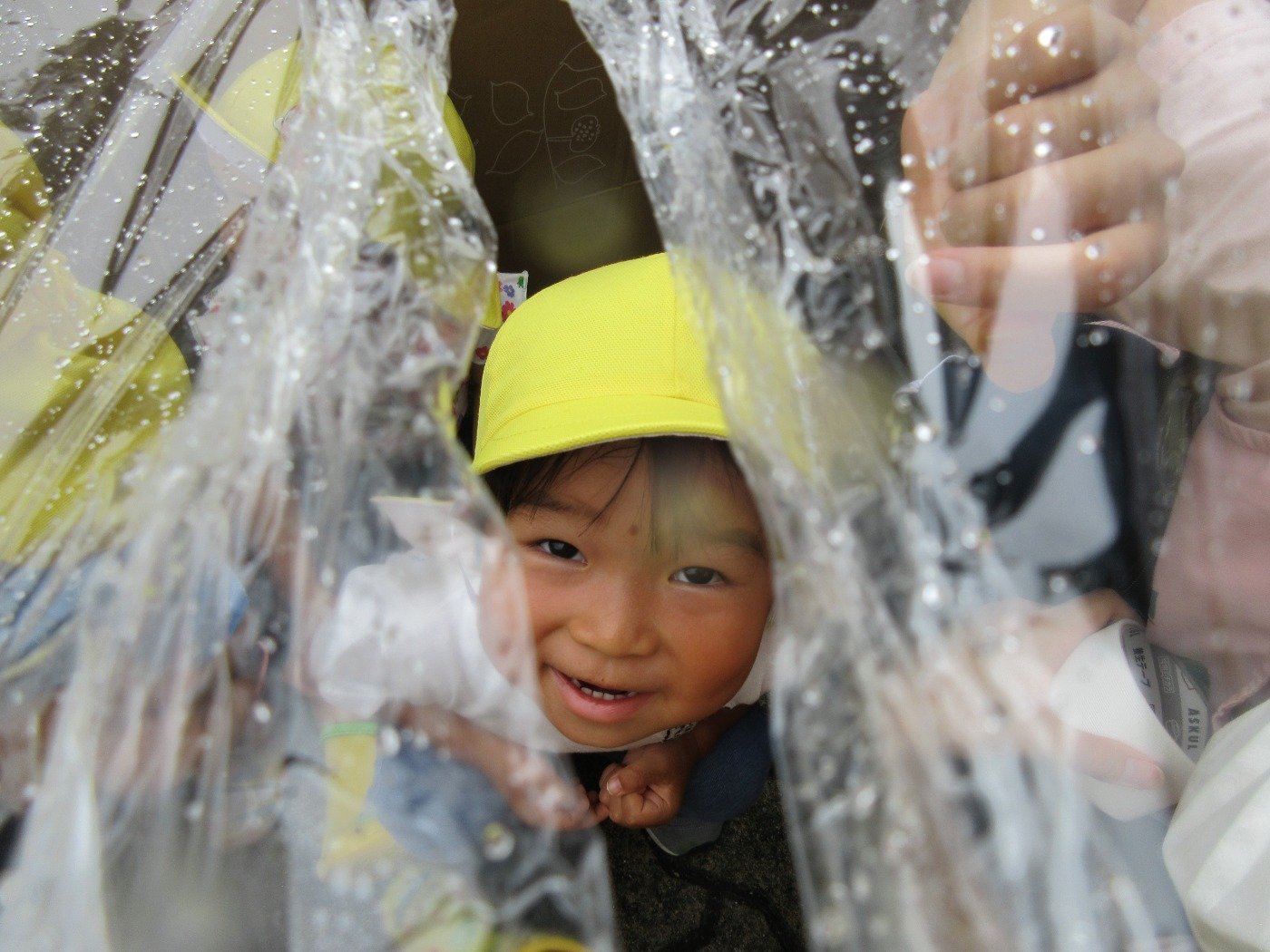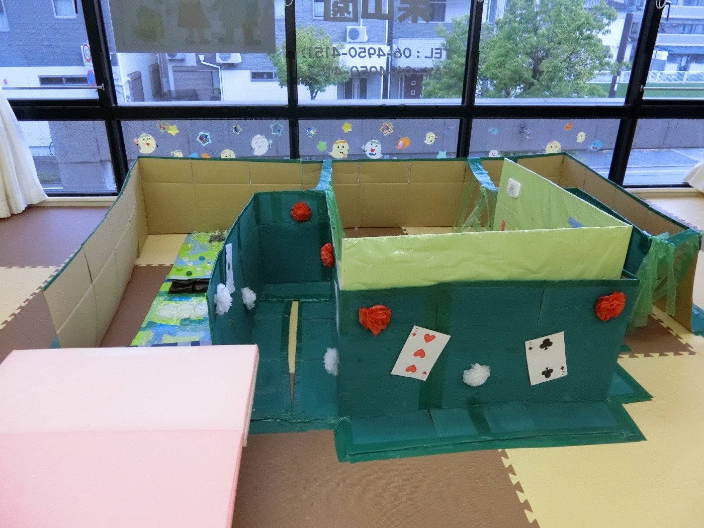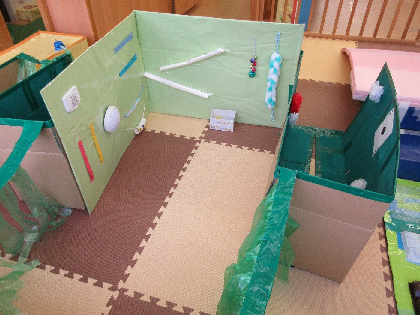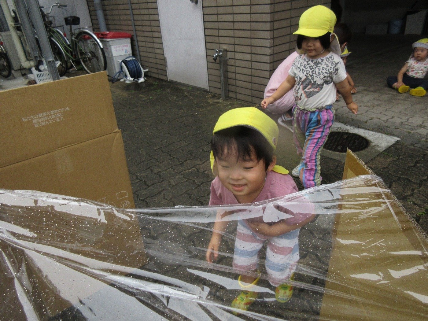 小雨模様のある日、園前にダンボールハウスが出現!