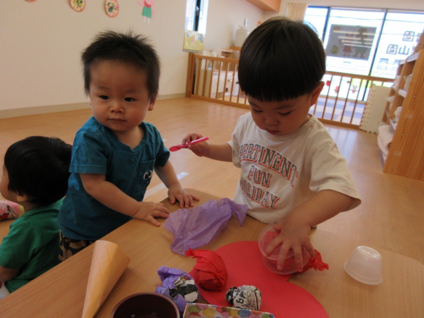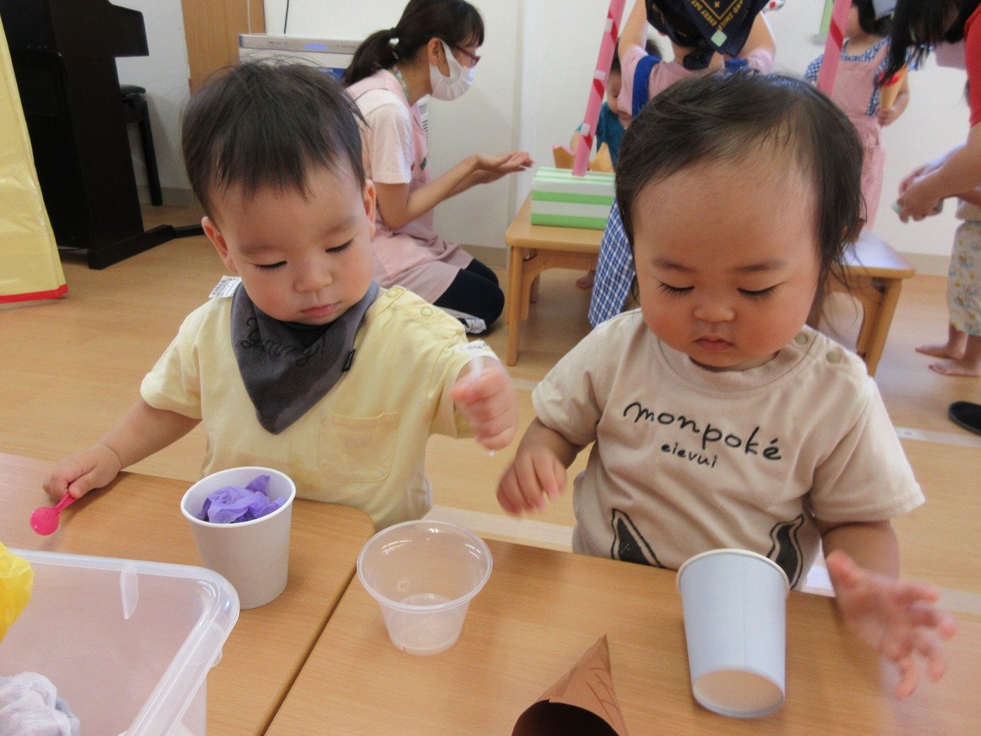 8月のお誕生日は、くま組さんとうさぎ組さんのお友だち。