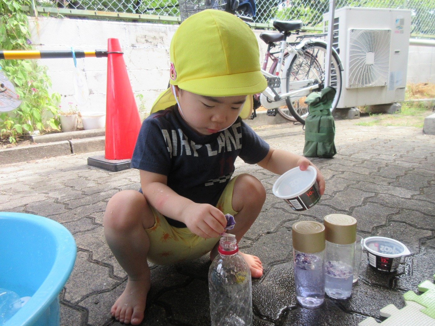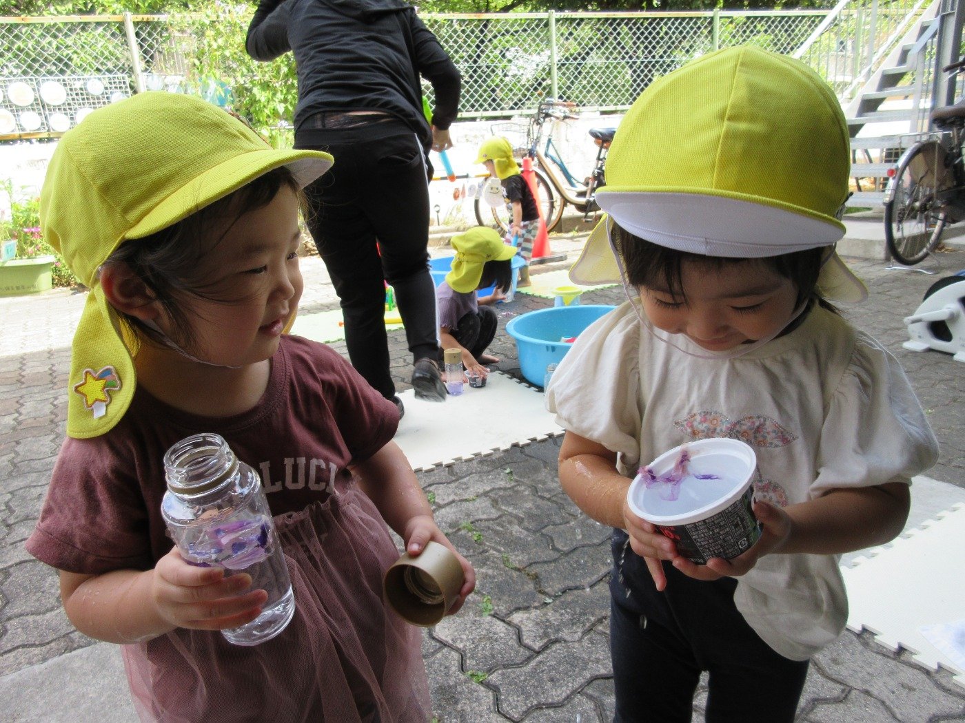 容器に入れてシェイクシェイク…色が変わっていく様子を