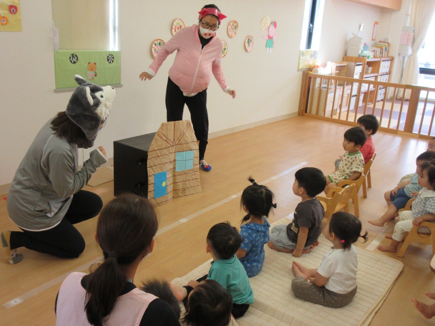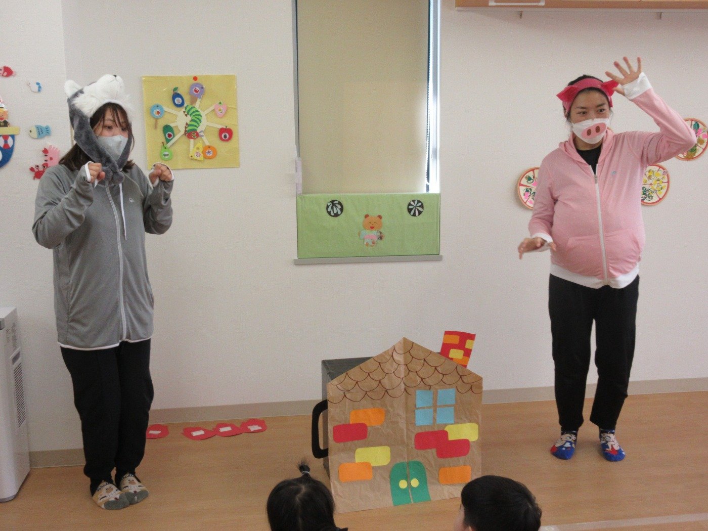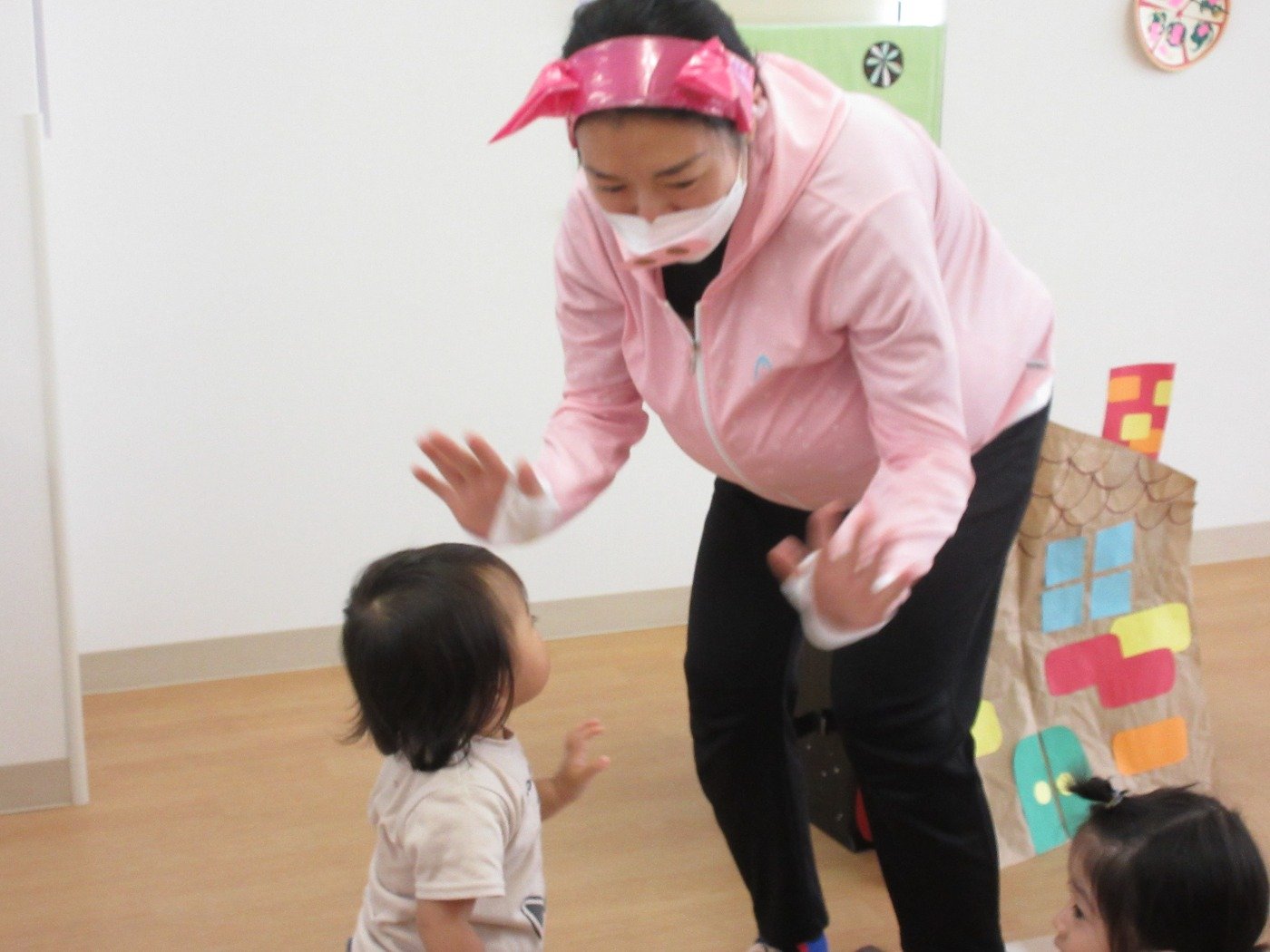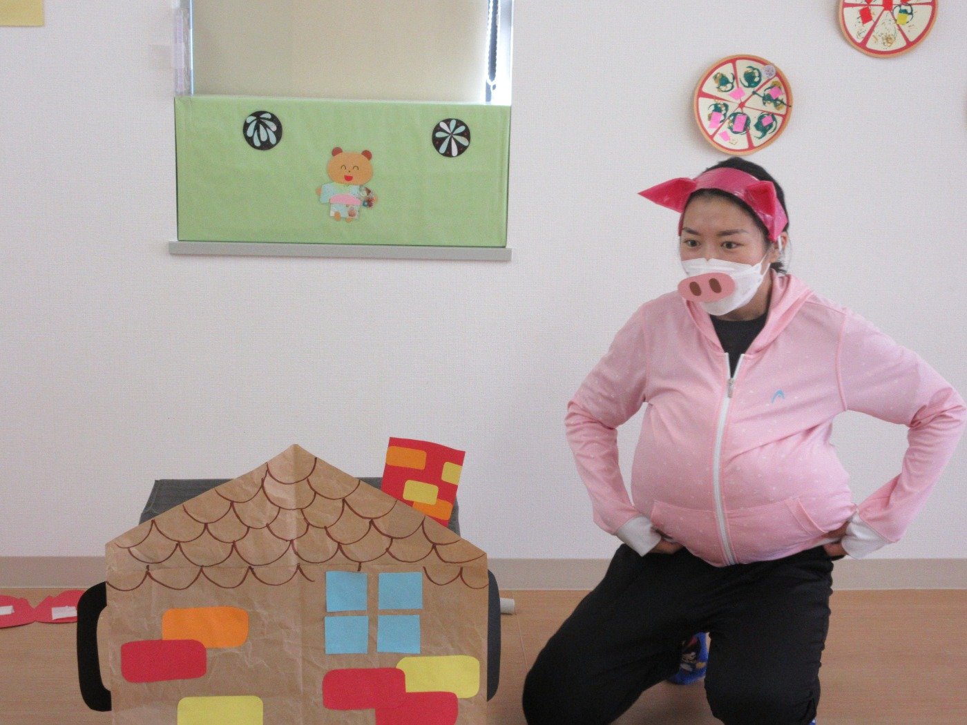 みんなも「3びきのこぶた」の手遊び歌を歌いながら