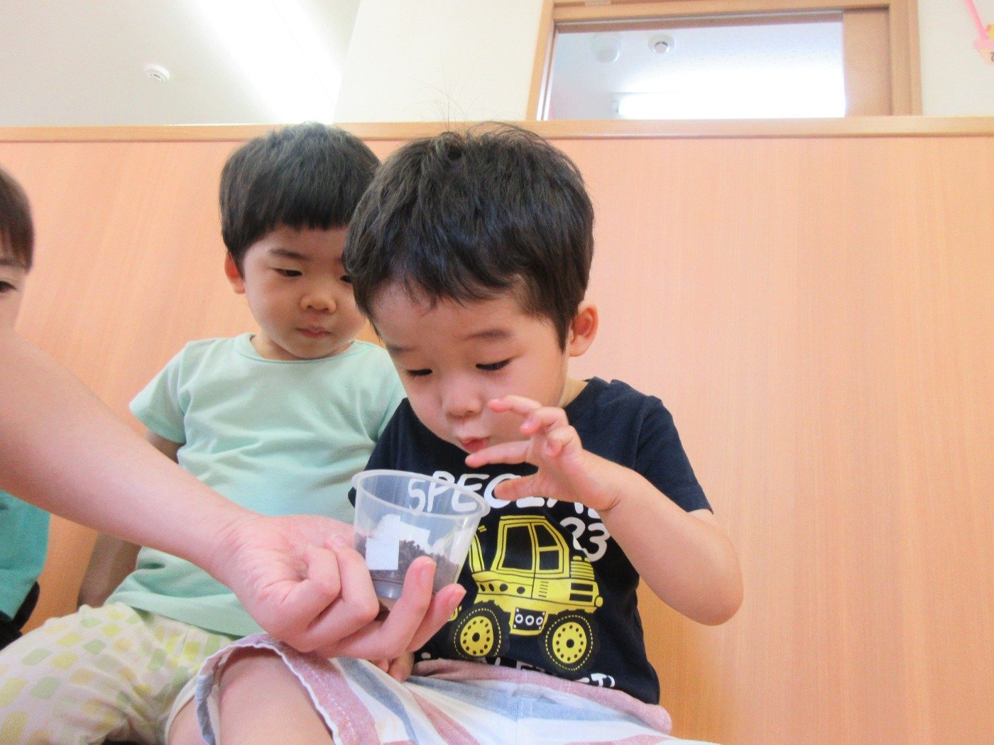 きらきら保育園南武庫之荘園から移住してきたカブトムシの赤ちゃん!