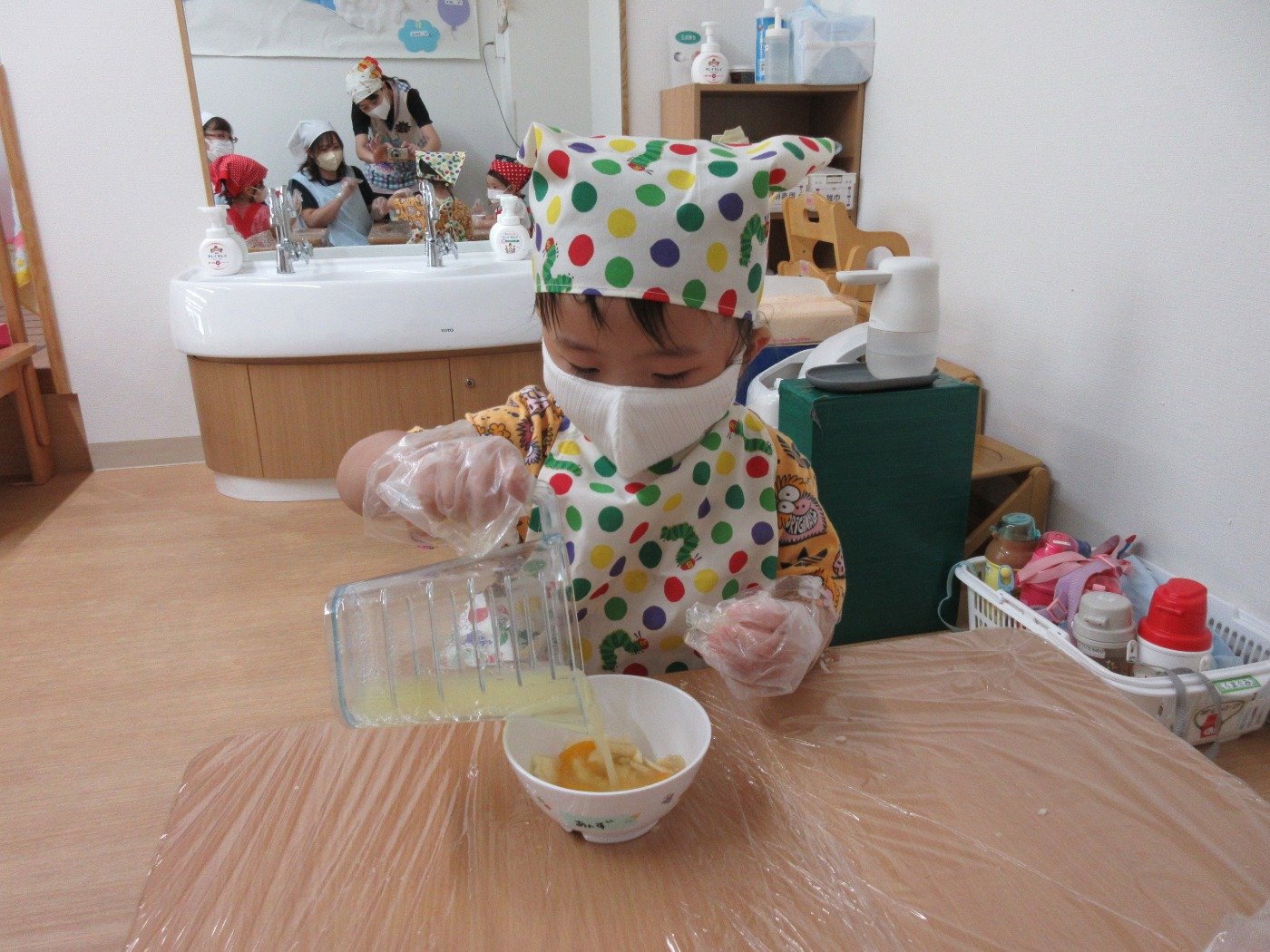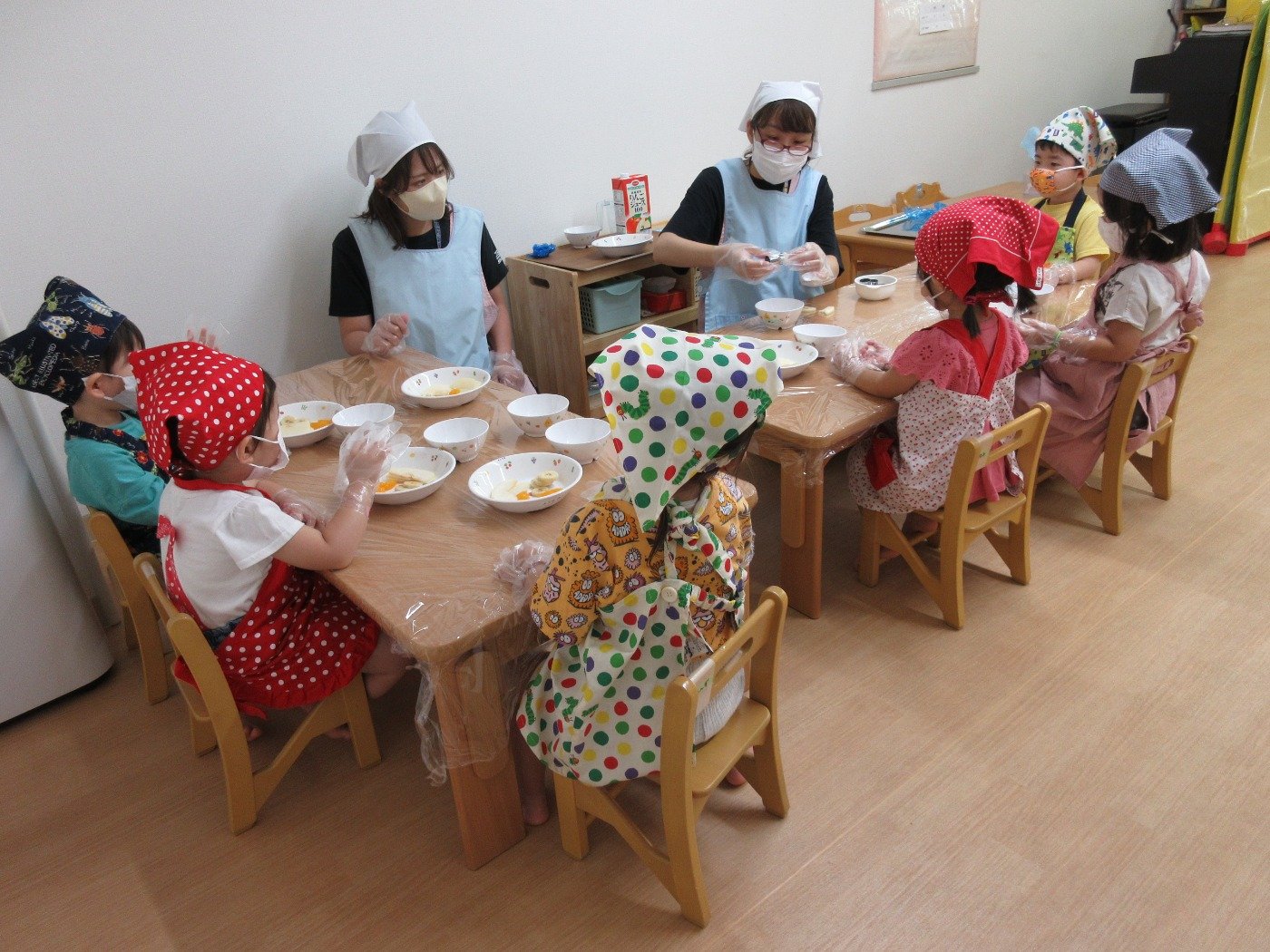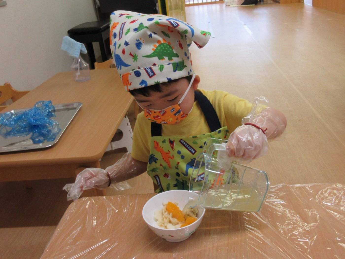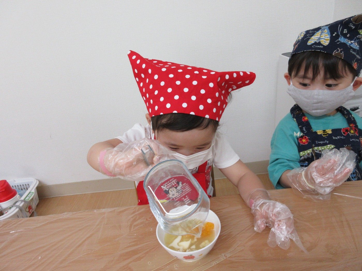 くま組さん初めてのクッキングは「フルーツポンチ」