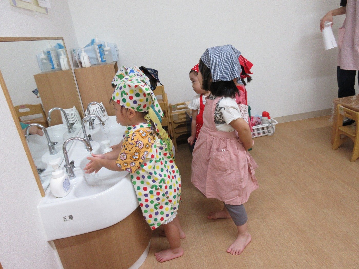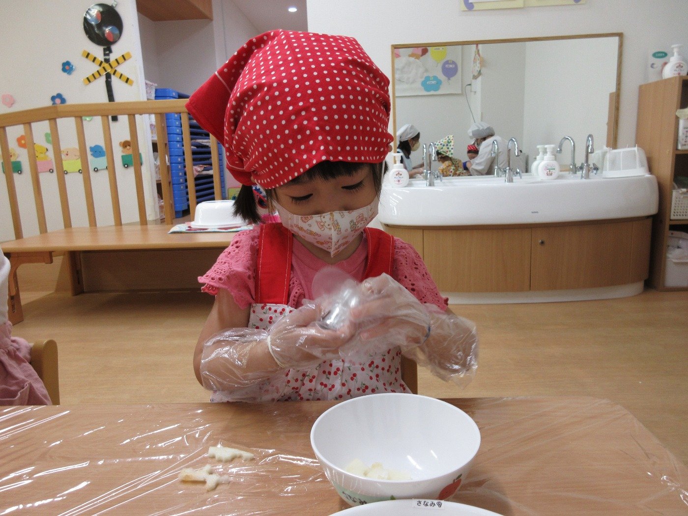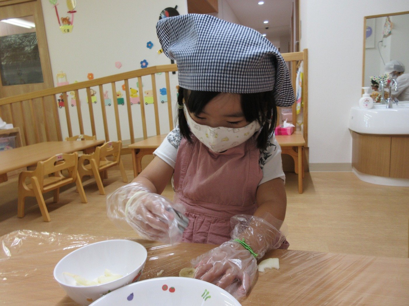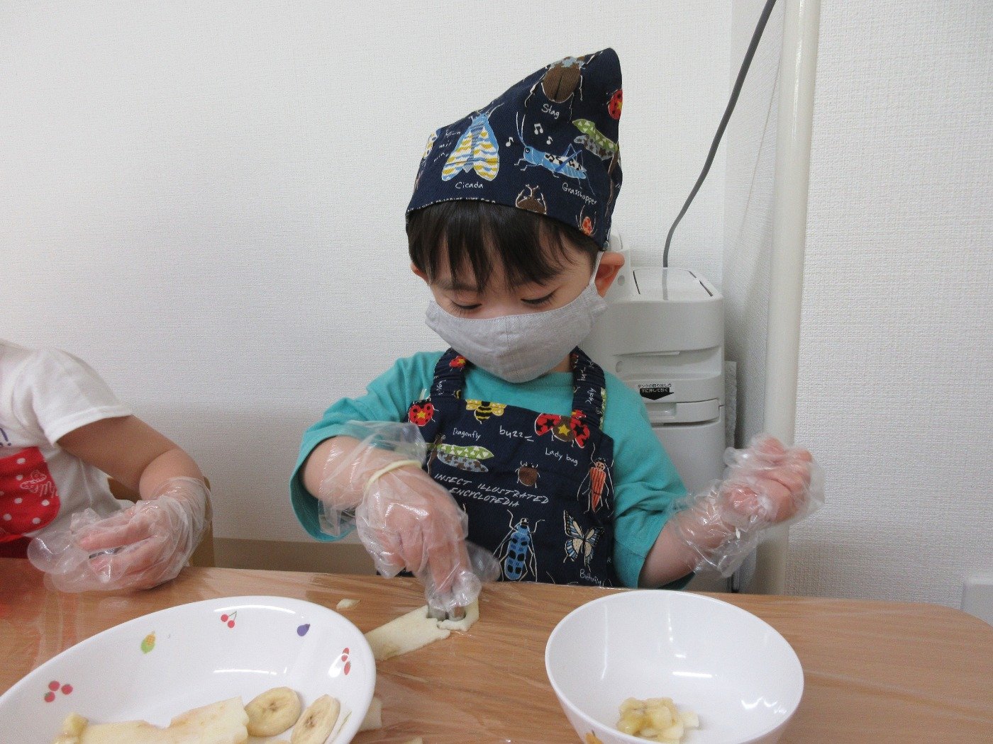 くま組さん初めてのクッキングは「フルーツポンチ」